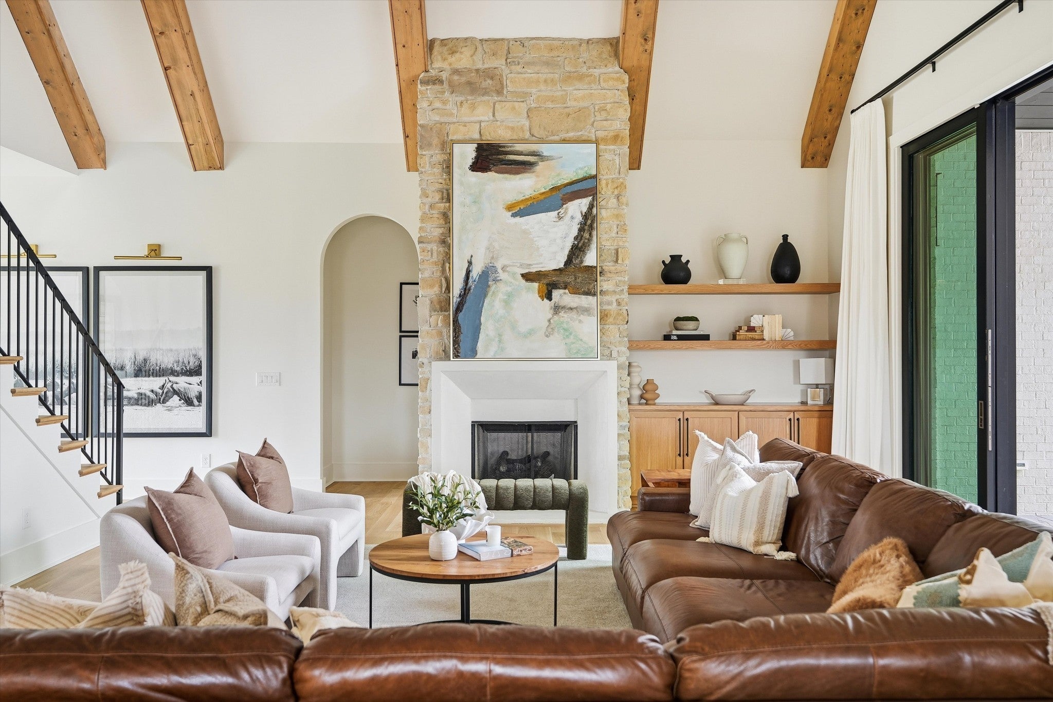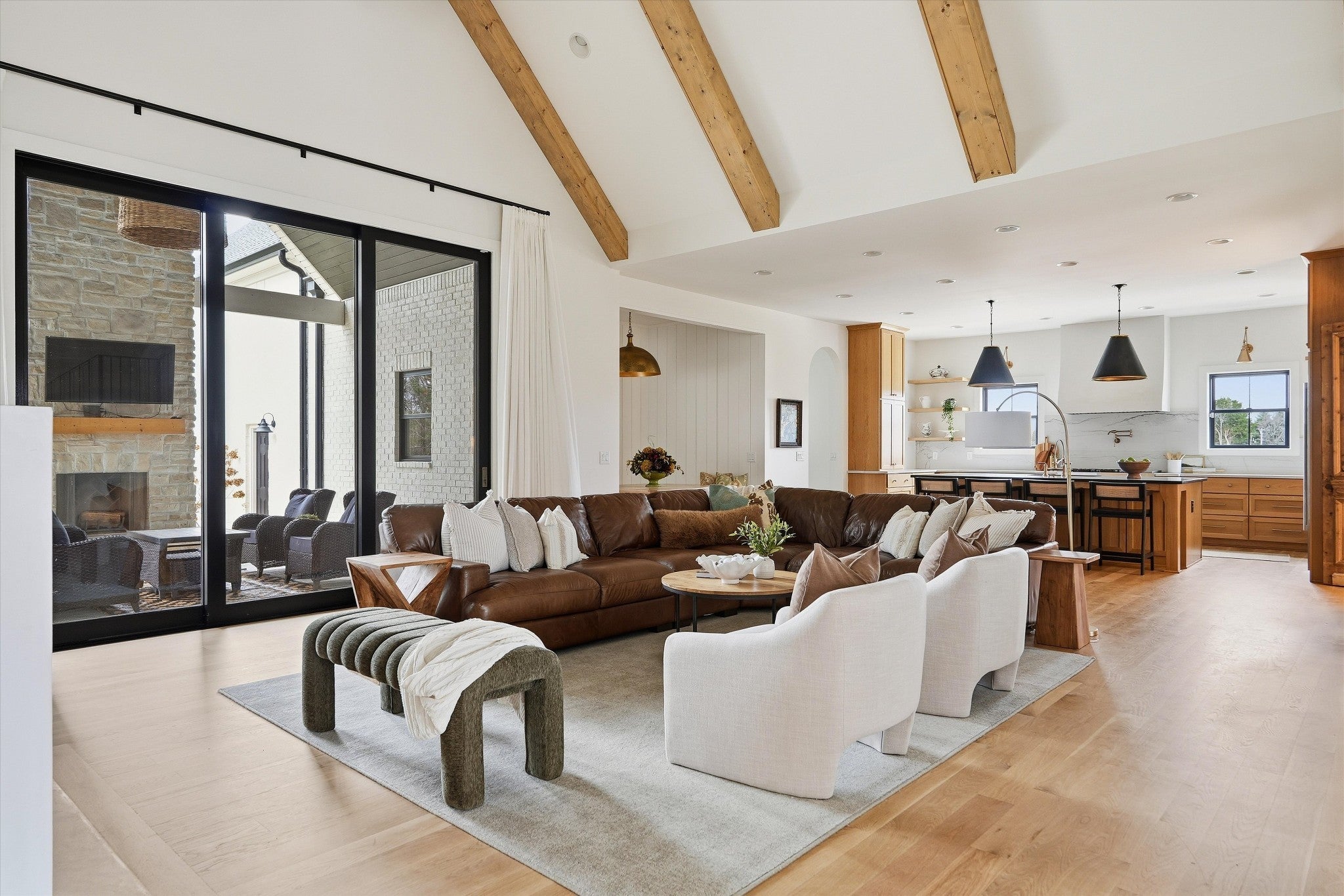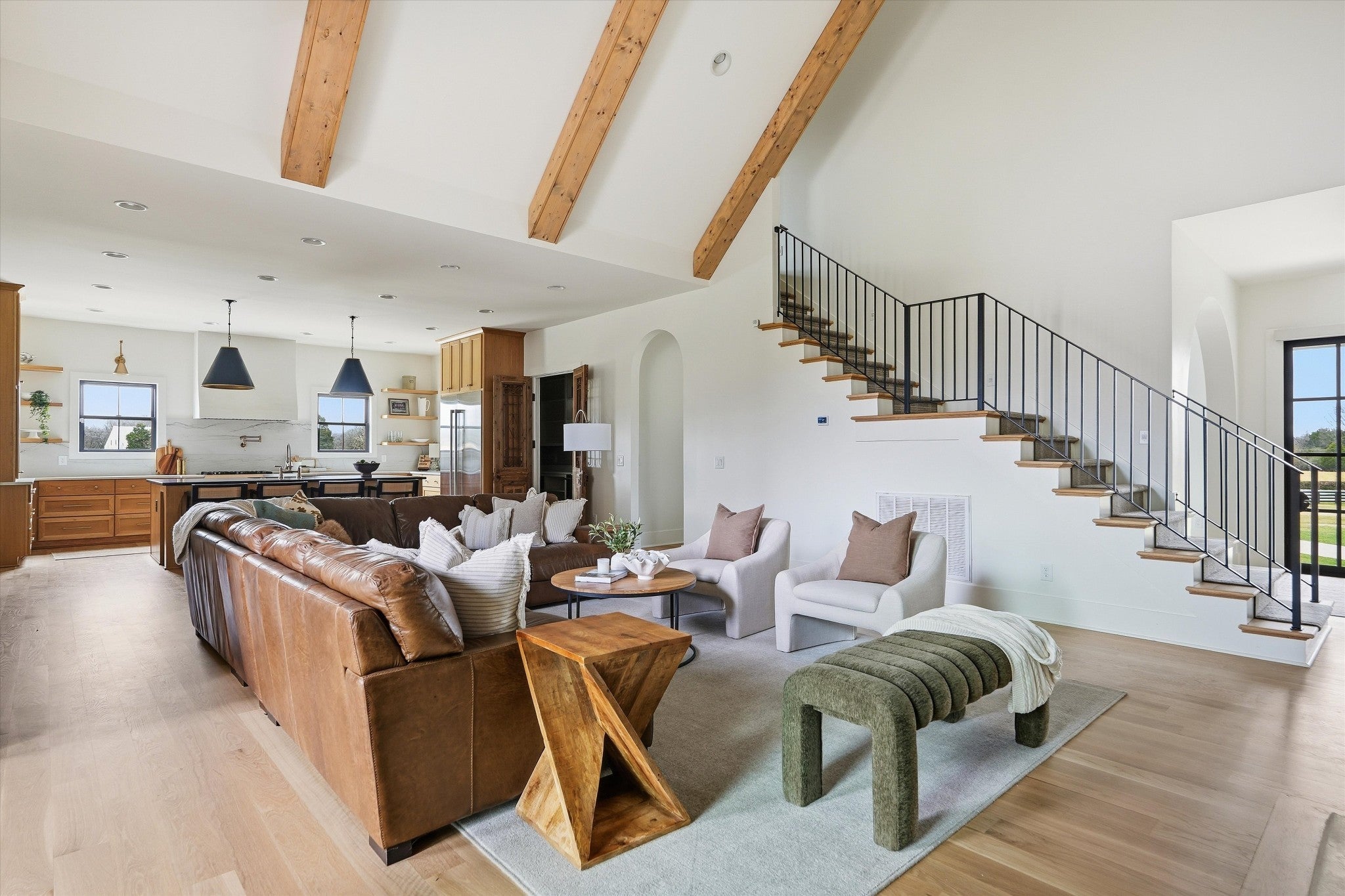 Offering 1% toward closing costs / rate buydown with our preferred lender. // Welcome to the quintessential Tennessee DREAM — a serene, private 7.4 acre homestead offering wide-open spaces, stunning craftsmanship, & the perfect blend of country charm & city convenience. Thoughtfully designed & impeccably finished, this expansive estate delivers modern luxury w/ true homestead potential. From the moment you approach the majestic gated drive & step through the iron entry, you’re greeted by ultra-high vaulted ceilings w/ massive wood beams, wide-plank white oak floors, a gorgeous stone fireplace, arched doorways, custom cabinetry, designer lighting, & an abundance of natural light at every turn. The main level feels warm & welcoming w/ a natural flow from kitchen to living area, expansive primary suite, guest suite, boutique office, & safe room. The primary suite features a beautiful vaulted ceiling w/ wood accents, a spa-like bath w/ soaking tub and dual vanities! The chef’s kitchen showcases custom white oak cabinetry, natural stone counters, & generous prep space ideal for hosting large gatherings. A massive walk-in pantry w/ jaw-dropping antique doors keeps everything clutter-free while offering incredible function w/ a built-in ice maker, microwave, refrigerator drawers, & a filtered bottle filler. A beautifully designed laundry room & central vacuum system add everyday convenience. Upstairs, a HUGE bonus room provides flexible space for a playroom, media room, hobbies, or extra sleeping quarters. Outdoors, enjoy crisp evenings by the wood-burning patio fireplace or gather around the built-in fire pit overlooking your fenced backyard. With a private well & electric pump for irrigation, abundant storage, a 5-car garage, & room for chickens or even a horse — this property truly has it all. Just a short commute to Franklin or Nashville and minutes from Murfreesboro’s shops & restaurants. This is your refined country estate with room to truly have your peace.