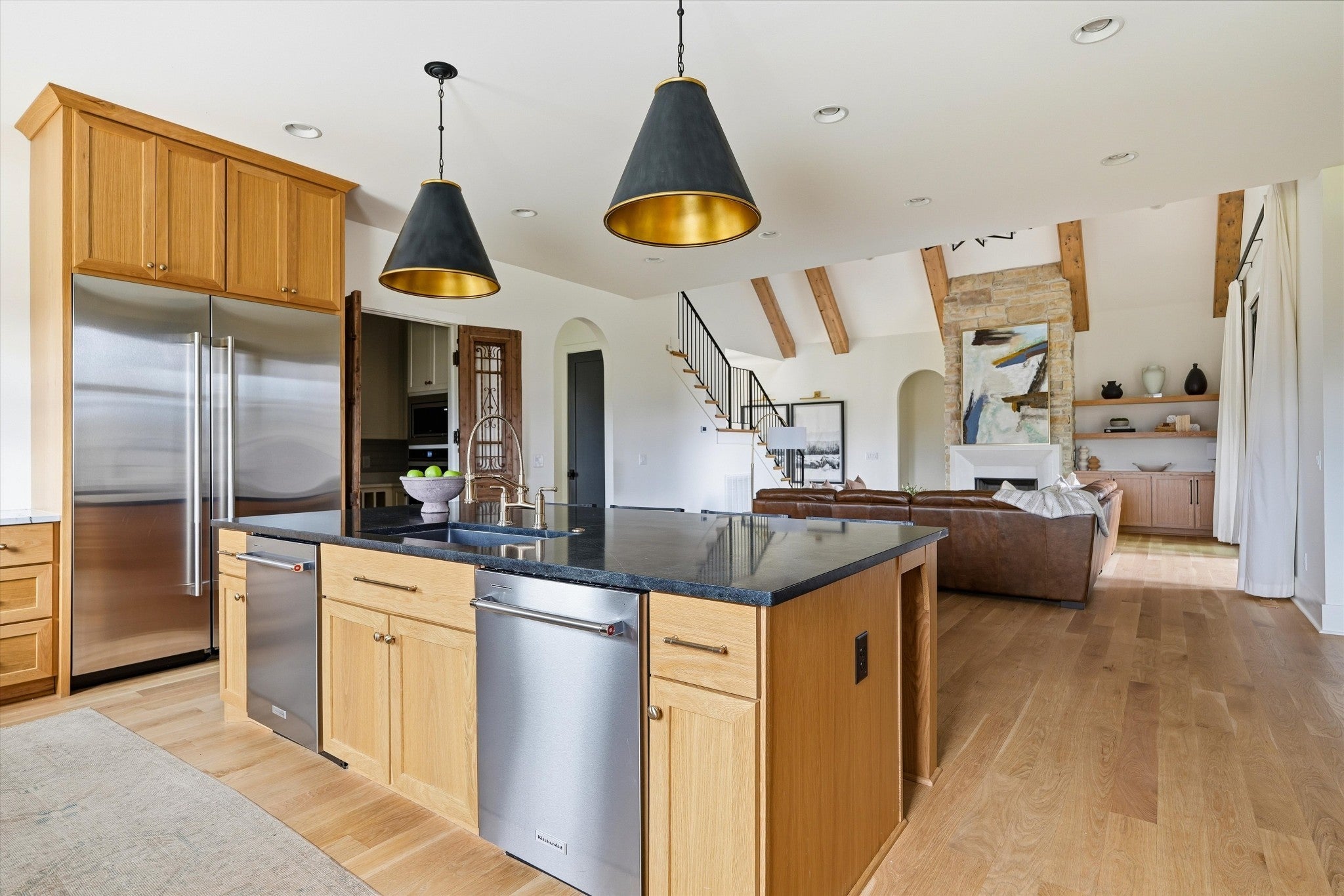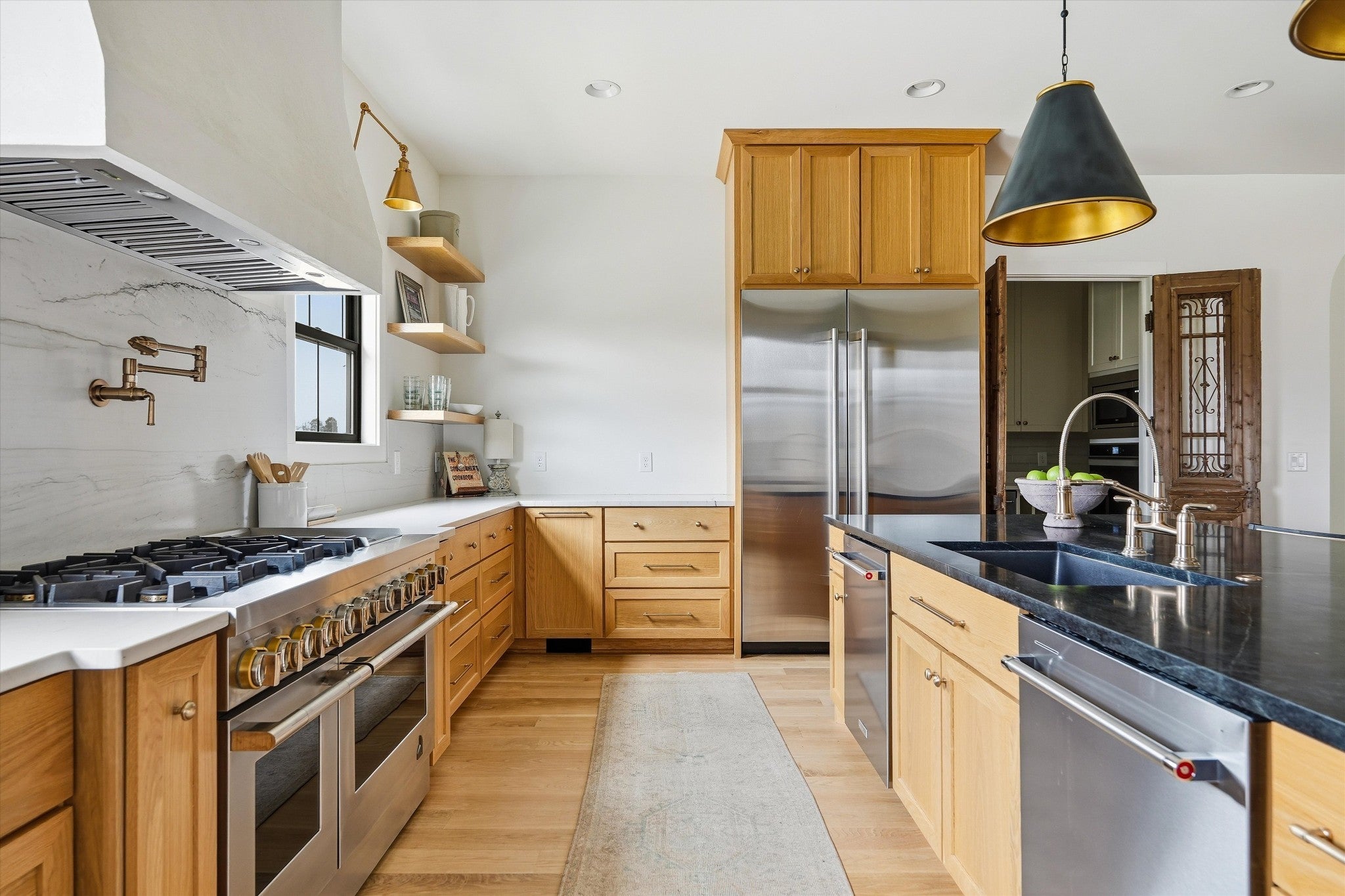 - Double Oven, Gas Oven, Gas Range, Dishwasher, Dryer, Ice Maker, Microwave, Refrigerator, Stainless Steel Appliance(s)