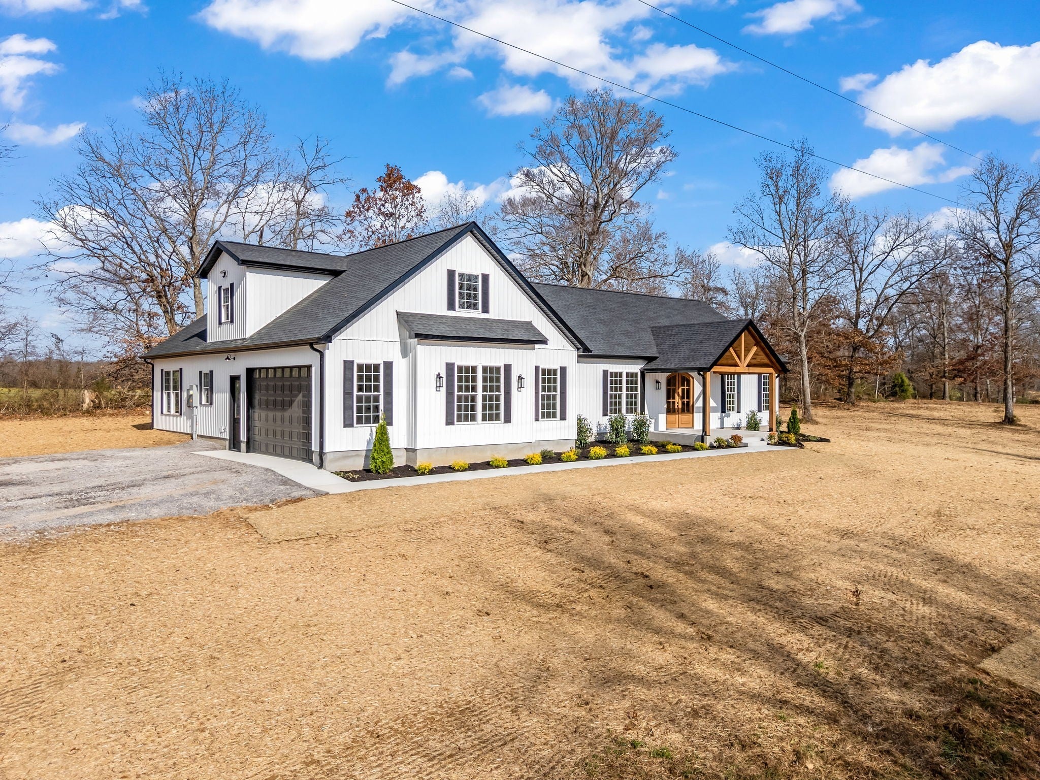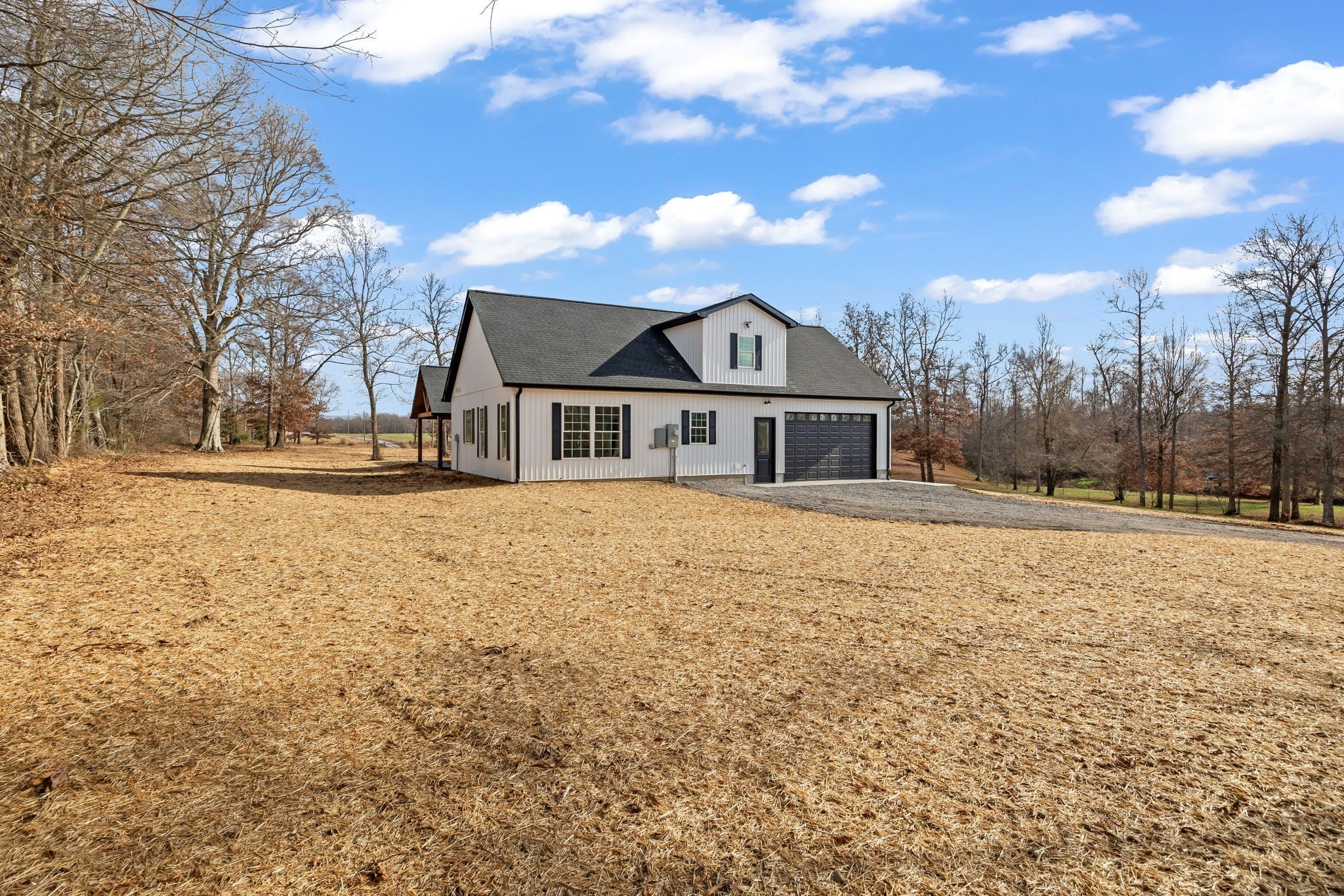 SELLER WILLING TO OFFER CONSESSIONS FOR BUYERS CLOSING COST OR RATE BUY DOWN. Set on 5 peaceful acres, this newly built home invites a slower, more thoughtful way of living. The white board-and-batten exterior with modern black accents feels fresh yet timeless, while warm wood details guide you inside. Sunlight moves across wide-plank floors into an open living area anchored by a quiet, welcoming fireplace. The kitchen sits at the center—spacious, functional, and ideal for gathering—complete with a generous island and a pantry that feels more like a hidden prep room. Bedrooms are calm and tucked away, and the bathrooms offer a retreat with tile floors, a large tiled shower, and a soaking tub. A versatile bonus room upstairs waits for your own purpose. Step onto the covered front or back porch and take in the quiet sweep of land around you. This is a home designed for everyday ease, with thoughtful details that make each moment feel grounded and comfortable. Schedule your showing today!