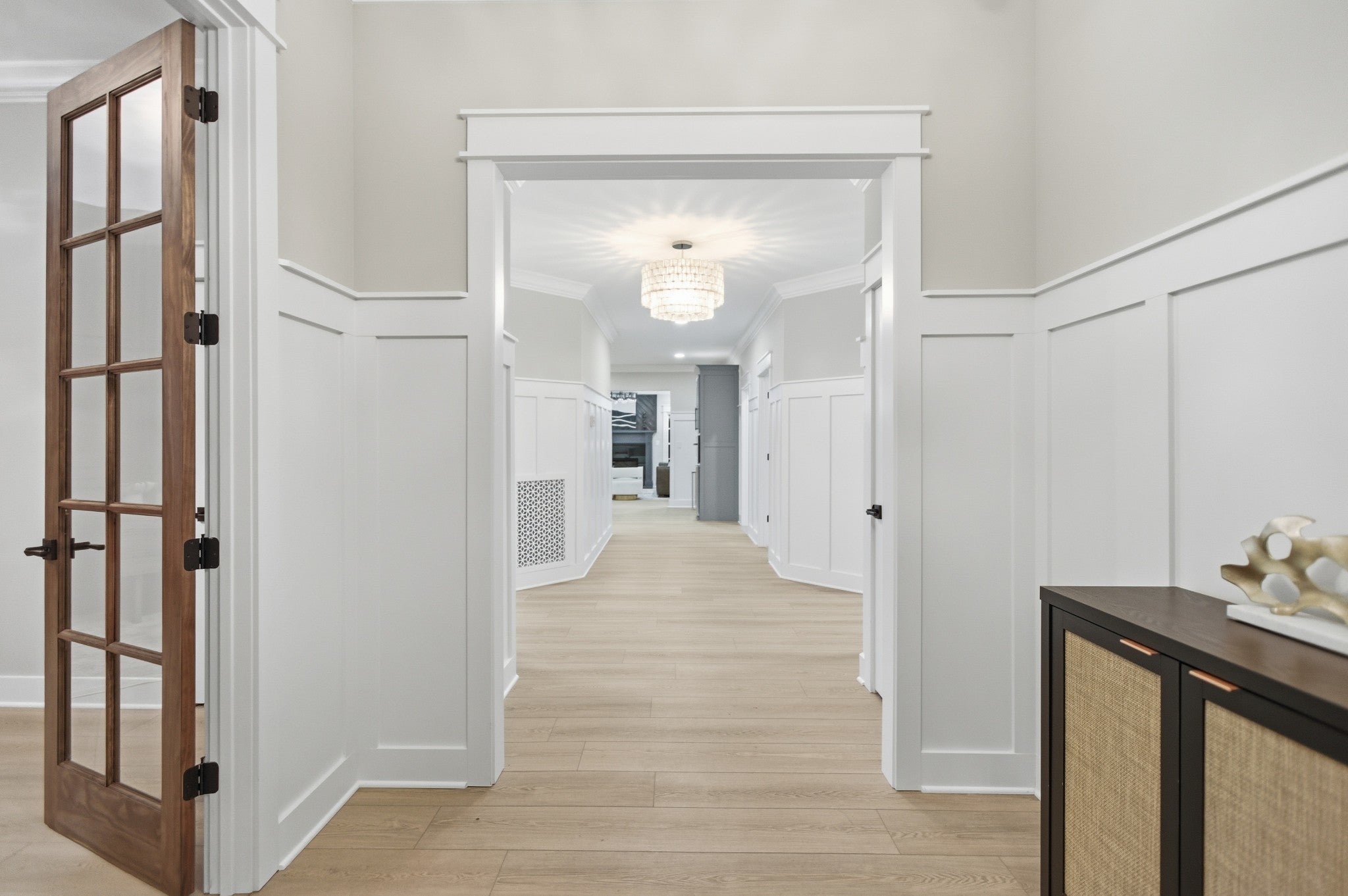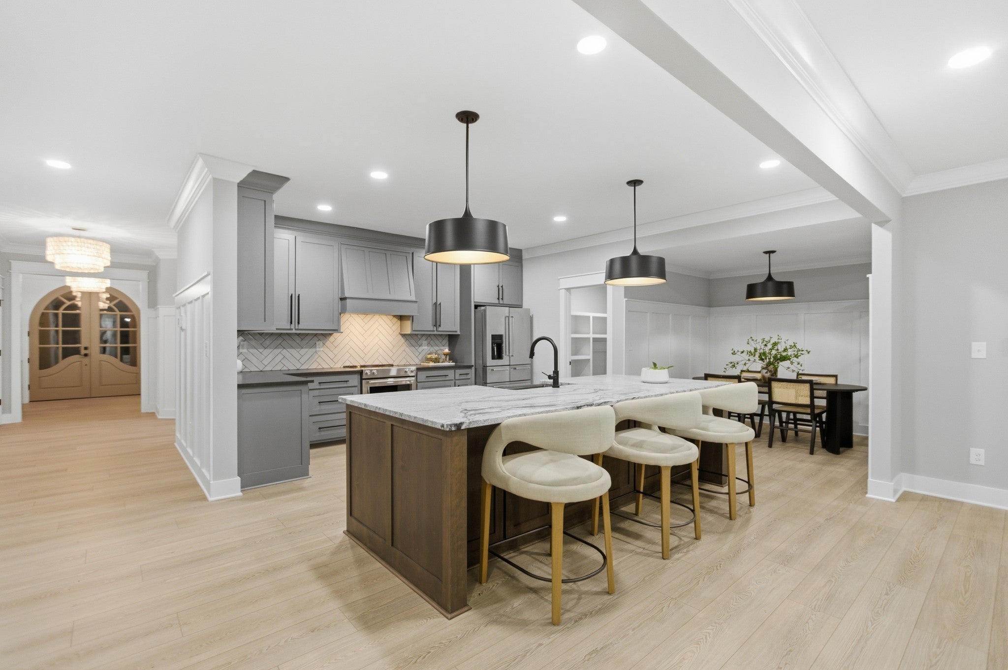 Experience refined Southern living in this custom-built stately residence set on 5.74 breathtaking acres in the heart of Moore County. With 5 bedrooms, 5.5 bathrooms, and over 4,800 square feet of impeccably designed living space, this home blends timeless craftsmanship with modern comfort. Enter through grand double doors into a home rich with extensive trim work, soaring ceilings, and thoughtful architectural details throughout. The chef’s kitchen is a culinary showpiece, featuring leathered granite countertops, top-of-the-line appliances, and a spacious island that opens seamlessly into the great room—an ideal setting for gatherings and entertaining. The luxurious primary suite offers an unparalleled retreat with dual vanities, an oversized soaking tub, a custom tile shower with two shower heads, and two expansive walk-in closets. French doors extend the suite into the private backyard, providing a peaceful escape. This home also features a dedicated movie room complete with built-ins and a wine cooler, along with a three-car garage that includes a convenient grocery-pass-through door directly into the pantry. A storm shelter adds comfort and security, while the screened-in back porch invites you to relax and enjoy the tranquility of your surroundings. From its elegant interiors to its sprawling outdoor spaces, this exceptional estate offers the perfect blend of luxury, privacy, and everyday functionality—a true Moore County masterpiece.