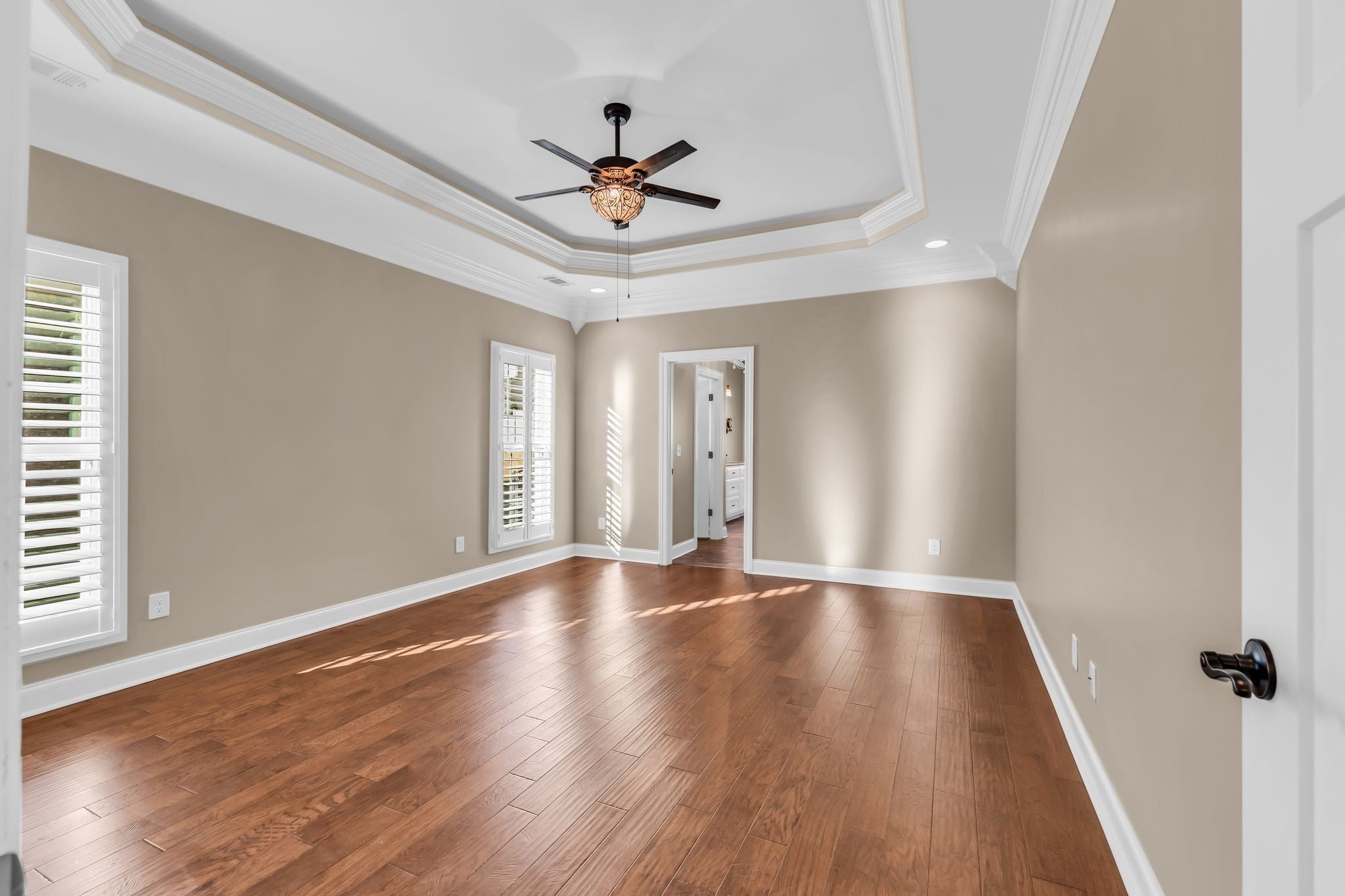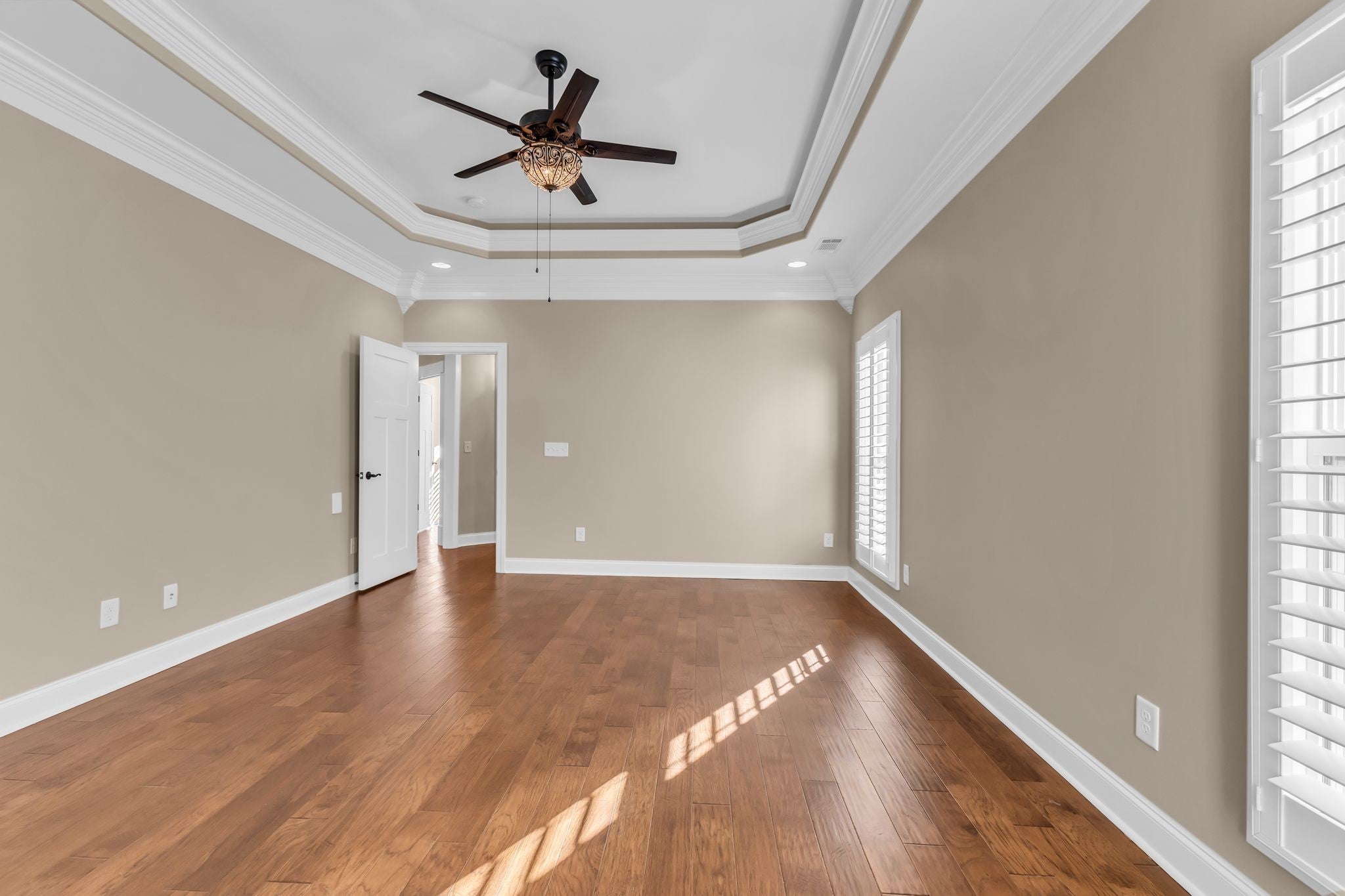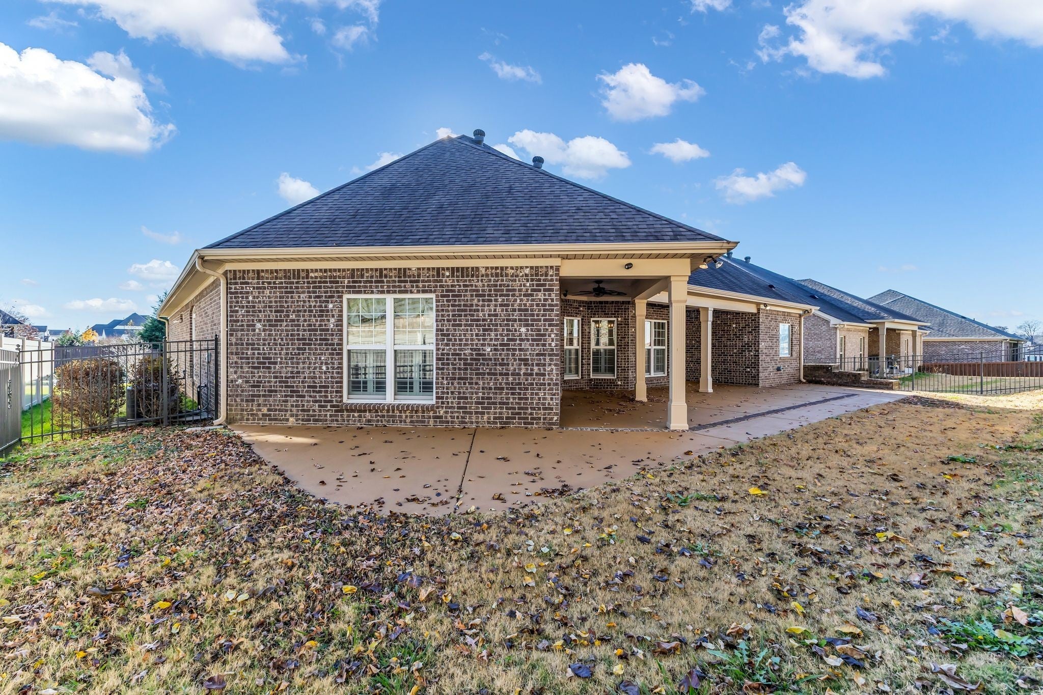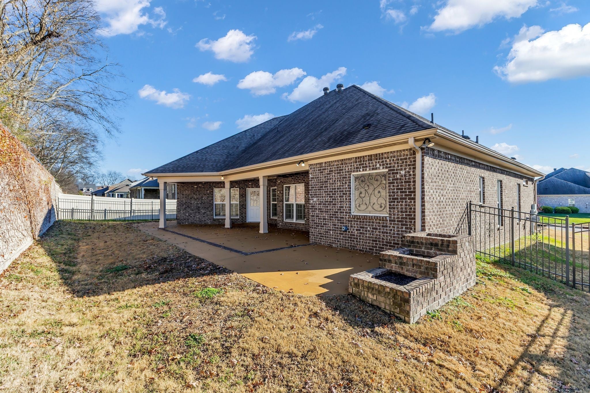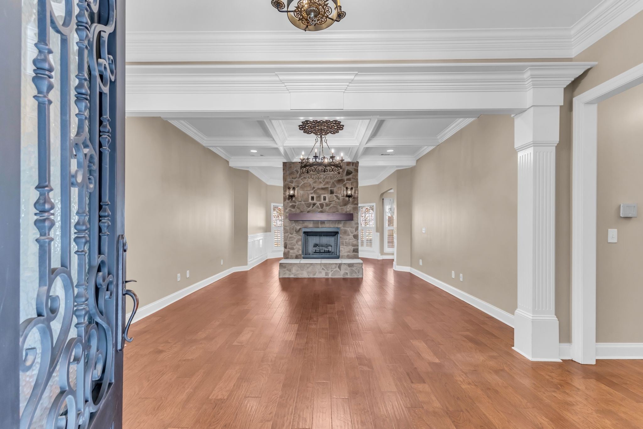 Experience exceptional one-level living in this beautifully crafted custom home featuring rich architectural detail and high-end finishes throughout. Elegant coffered ceilings, custom trim and moulding, and upgraded lighting fixtures elevate every room, while hardwood and tile floors flow seamlessly across the entire home. The gourmet kitchen is designed for both function and style, showcasing upper and lower-level Franke sinks, premium finishes, and ample workspace. Plantation and café shutters add timeless character and light control across the home, and the striking iron front door makes a memorable first impression. Enjoy a private backyard oasis with an extra-large rear patio with brick inlay, perfect for outdoor dining, entertaining, or quiet evenings at home. Both the front and back brick-lined flowerbeds include built-in irrigation, offering low-maintenance beauty year-round. Immaculate, thoughtfully designed, and full of custom upgrades, this single-level Spring Hill gem is move-in ready and truly one-of-a-kind.