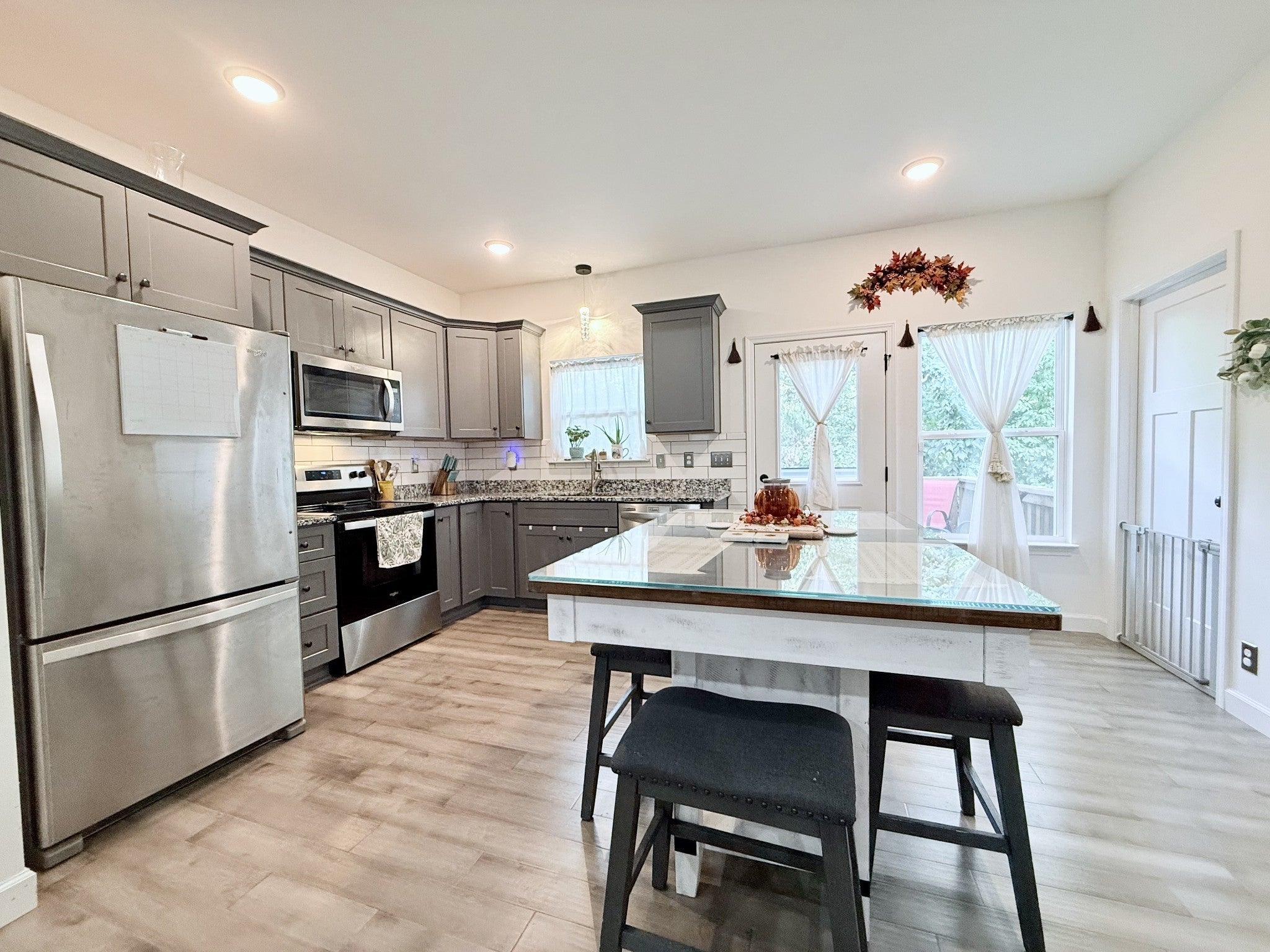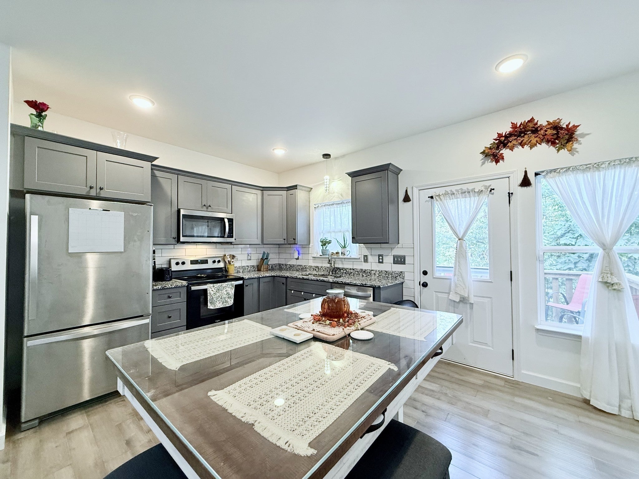 - Electric Oven, Electric Range, Dishwasher, Dryer, Ice Maker, Microwave, Refrigerator, Stainless Steel Appliance(s), Washer