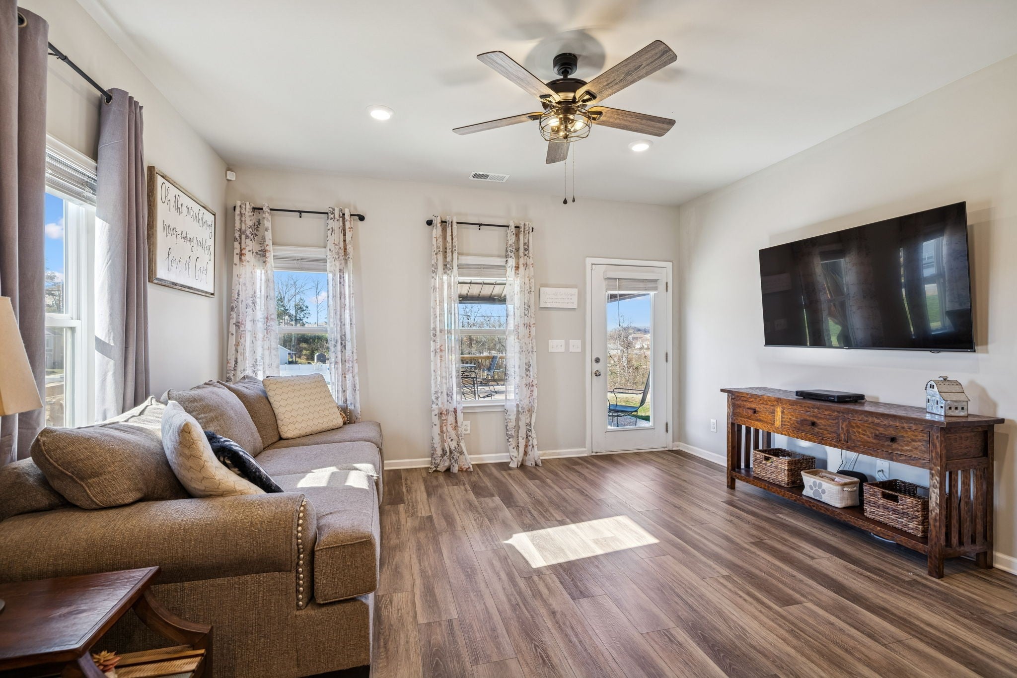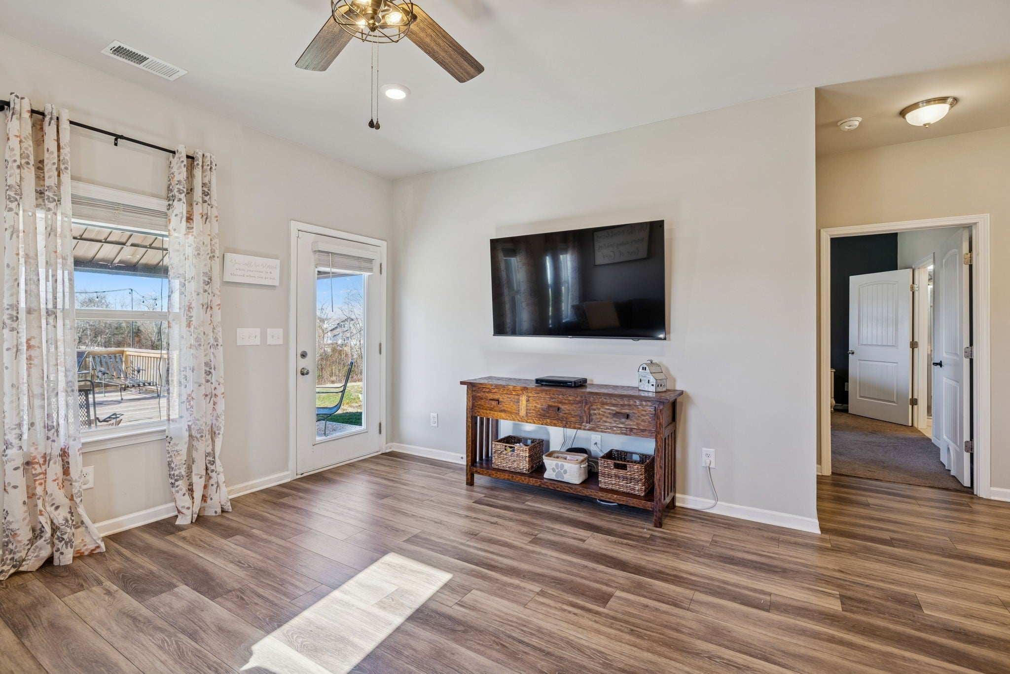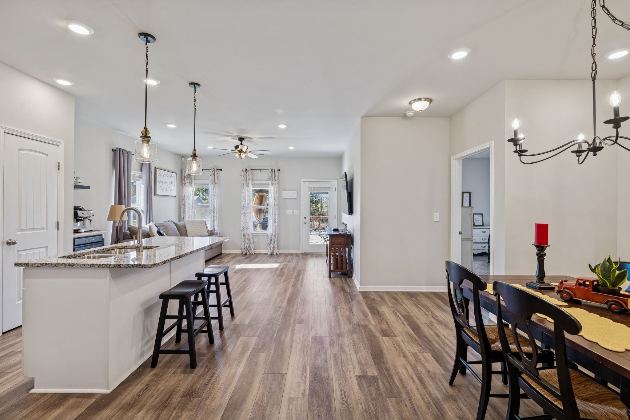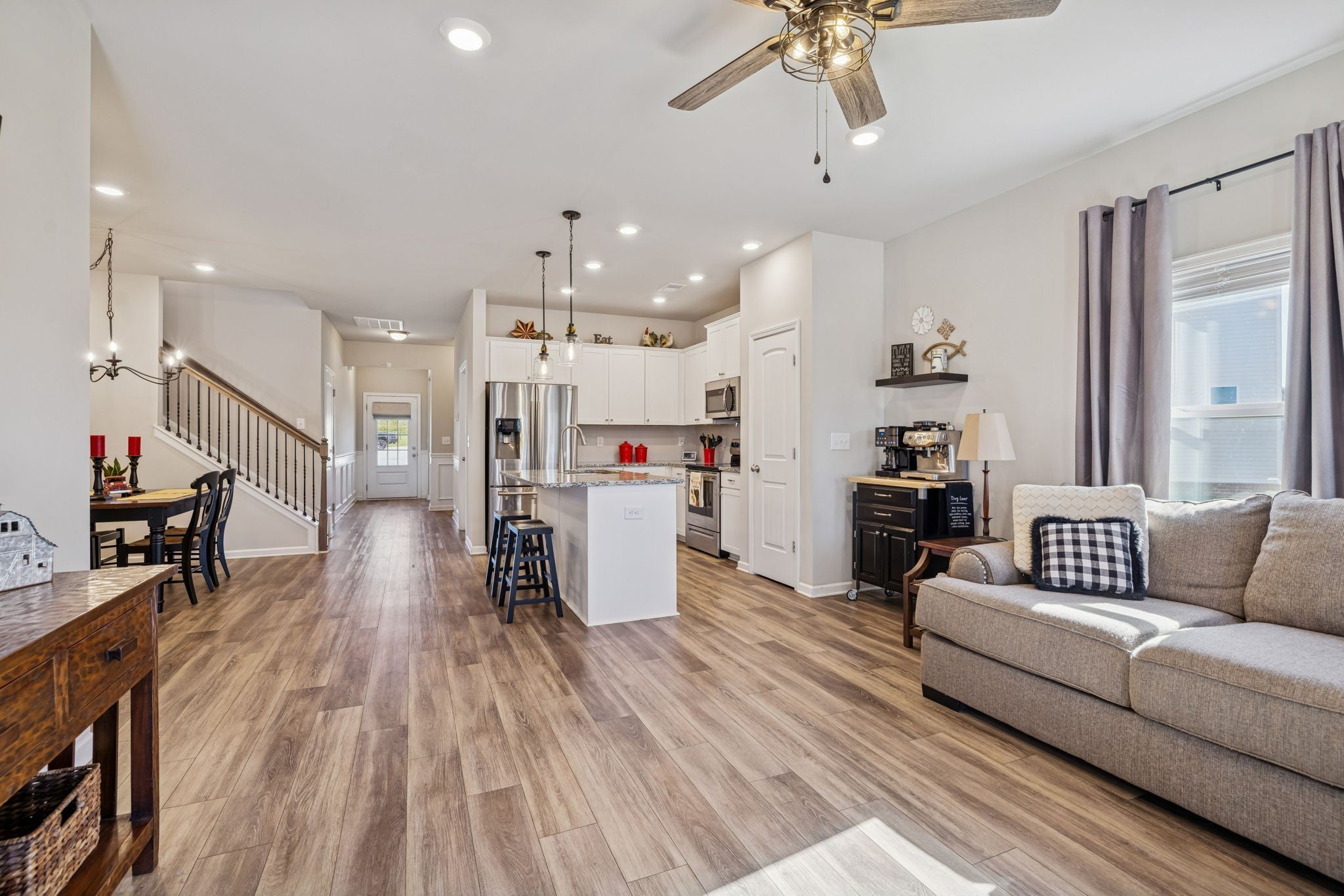Welcome home to this beautifully designed, cozy residence perfectly situated in an excellent Columbia, Tennessee location. Offering 4 spacious bedrooms, including two primary suites, this home provides exceptional flexibility for multigenerational living, guest accommodations, or simply added comfort. The main-level primary suite delivers easy convenience, while the second upstairs primary suite offers privacy and versatility. Step inside to a bright open floorplan, where the living, dining, and kitchen areas flow seamlessly together. The stunning kitchen features a large island with sink, granite countertops, a pot-filler above the range, and plenty of cabinetry which is ideal for cooking, entertaining, or gathering with loved ones. Upstairs, you’ll find an inviting open loft perfect for a media space, play area, or additional lounge. A dedicated office on the main level provides the perfect spot for working from home or pursuing hobbies. Indulge in the upgraded bathroom shower systems, including dual shower heads in the master and a luxurious rain-shower setup for a spa-like experience every day. Outdoor living is just as impressive, with a covered back patio and an additional large deck, ready for weekend barbecues, morning coffee, or quiet evenings under the Tennessee sky. Make plans to see this wonderful home while you have the chance!