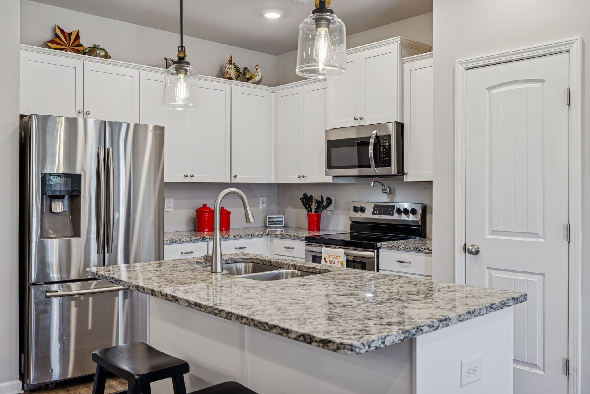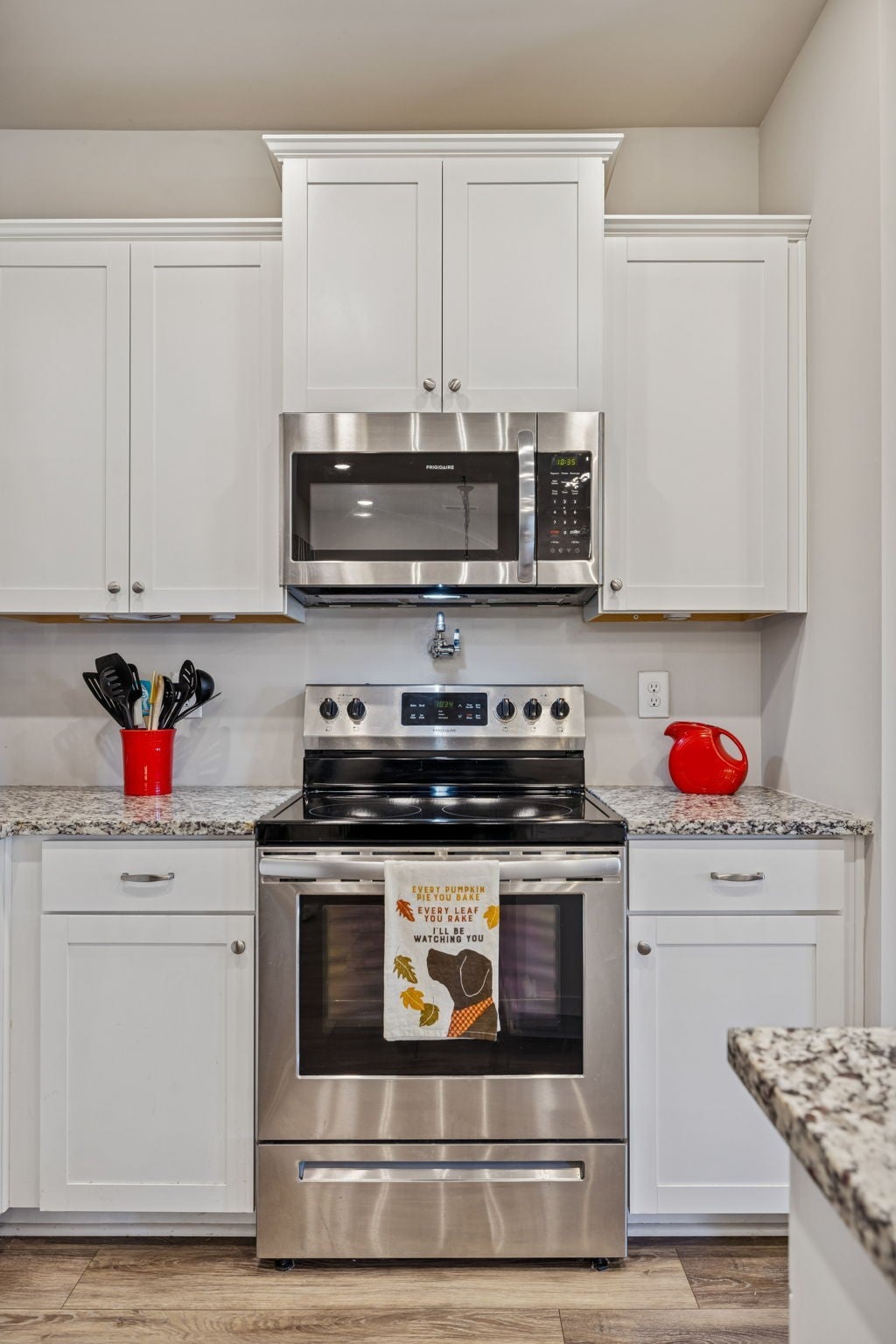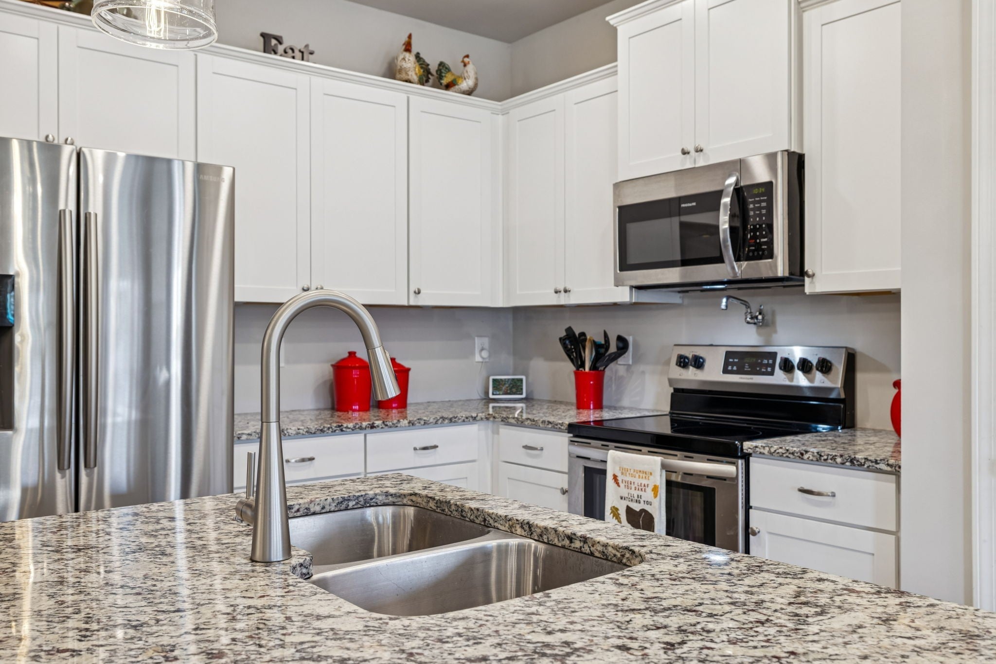 - Electric Range, Dishwasher, Disposal, Microwave, Refrigerator, Stainless Steel Appliance(s)