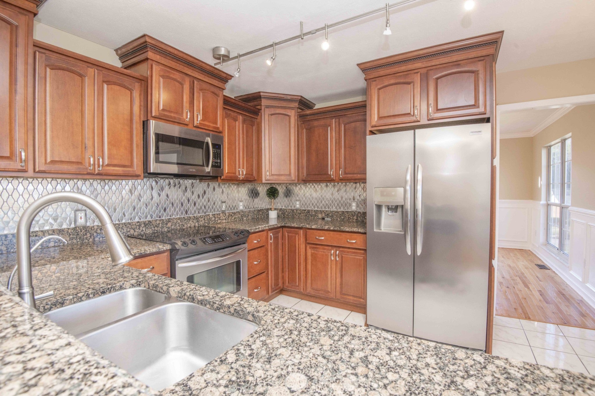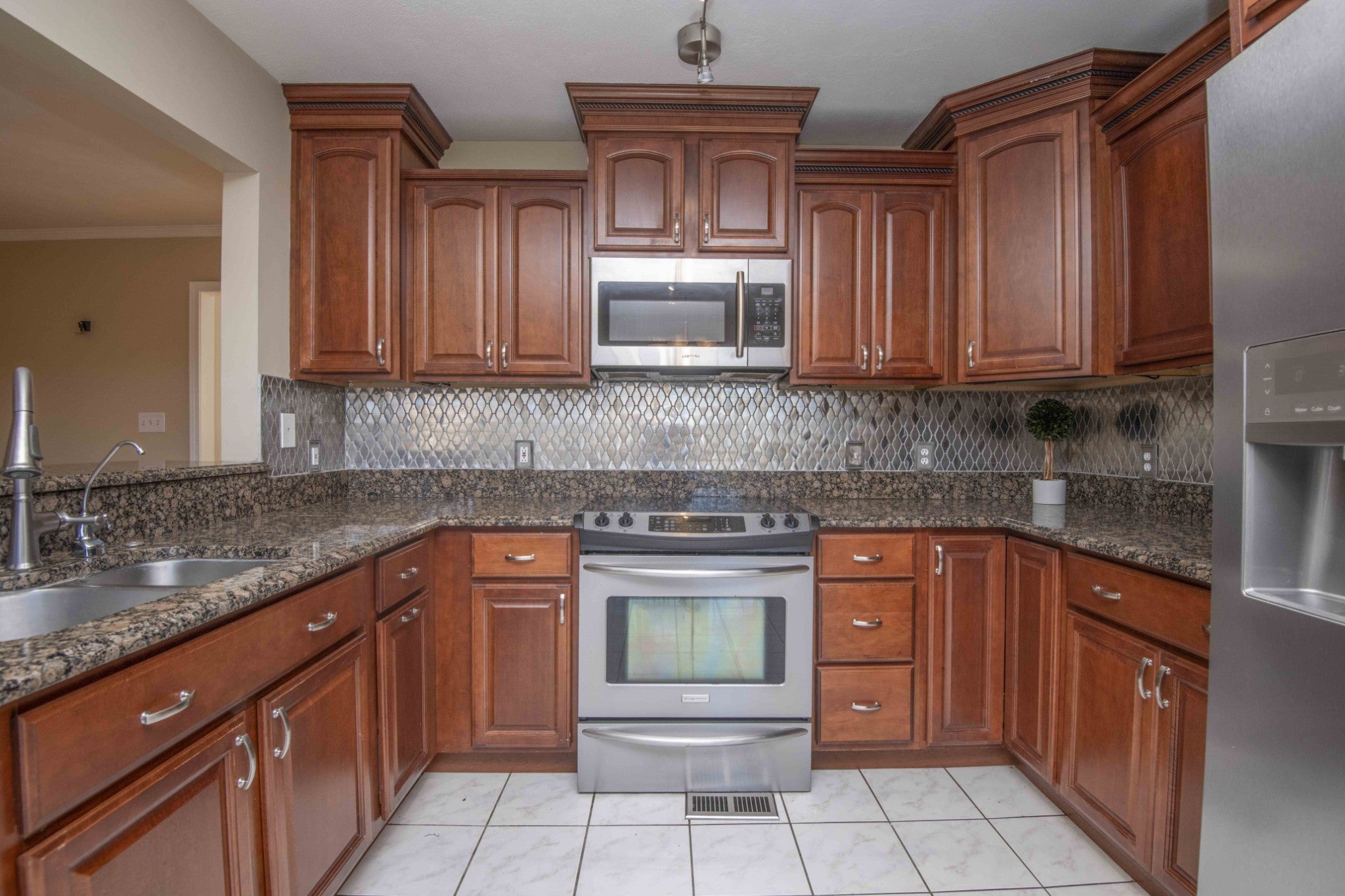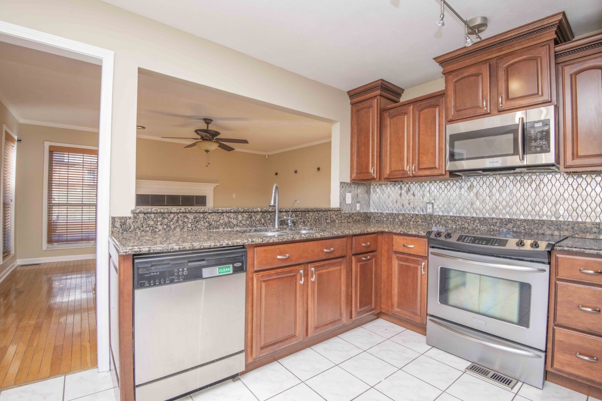 - Built-In Electric Range, Dishwasher, Microwave, Refrigerator, Stainless Steel Appliance(s)