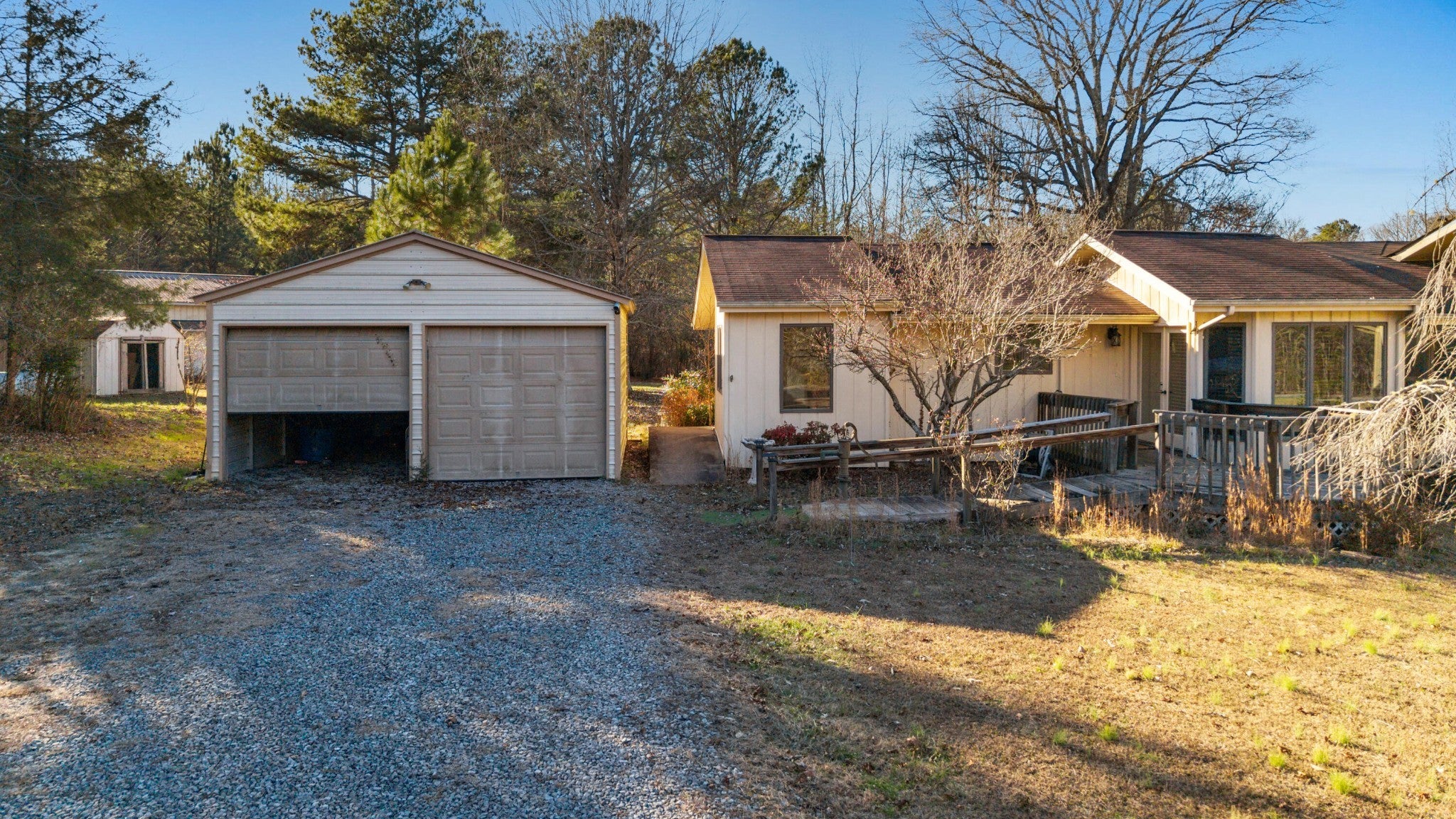 - Attached, Circular Driveway, Gravel