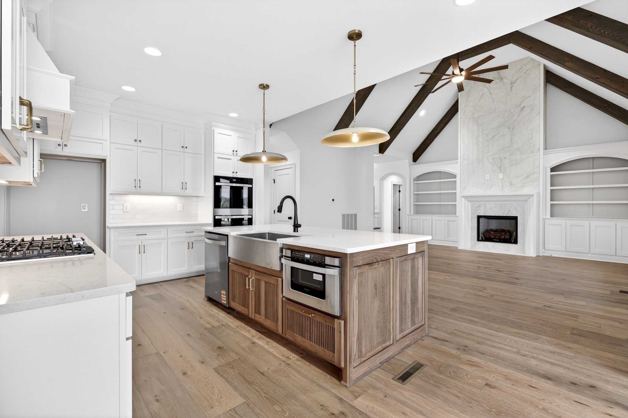 - Double Oven, Electric Oven, Built-In Gas Range, Cooktop, Dishwasher, Microwave, Stainless Steel Appliance(s)