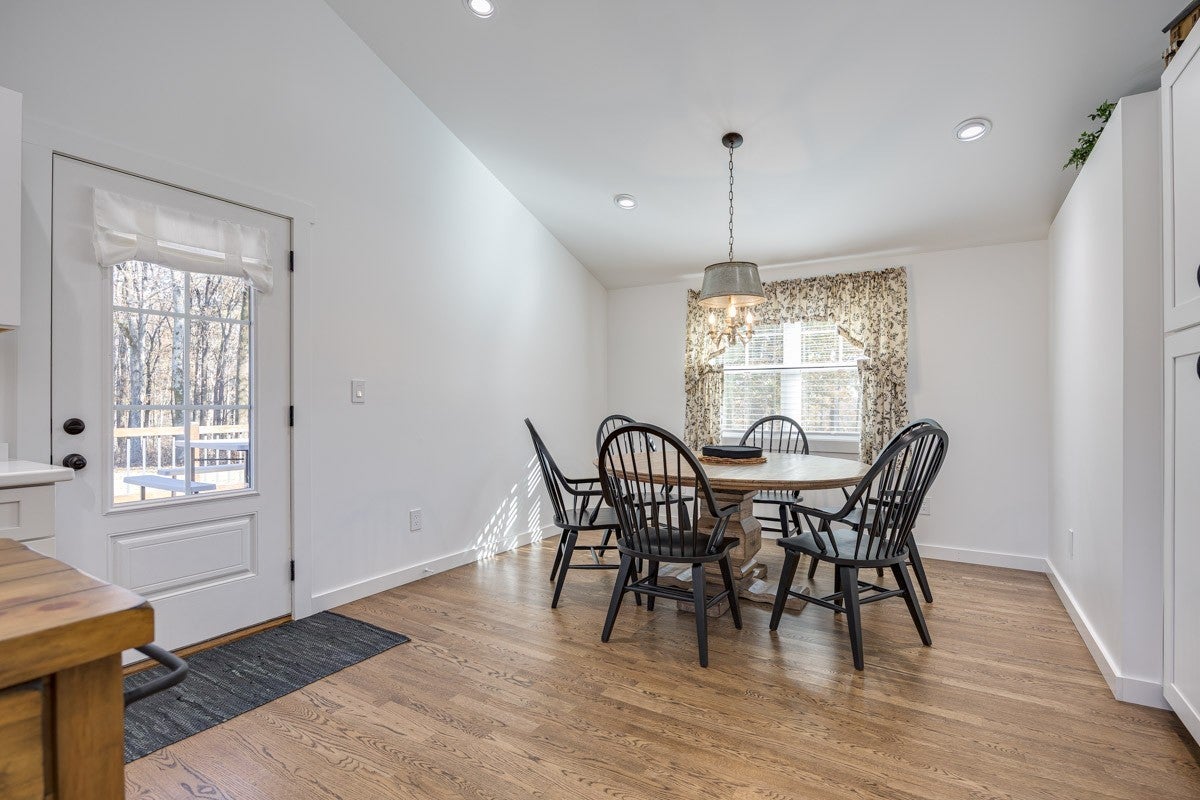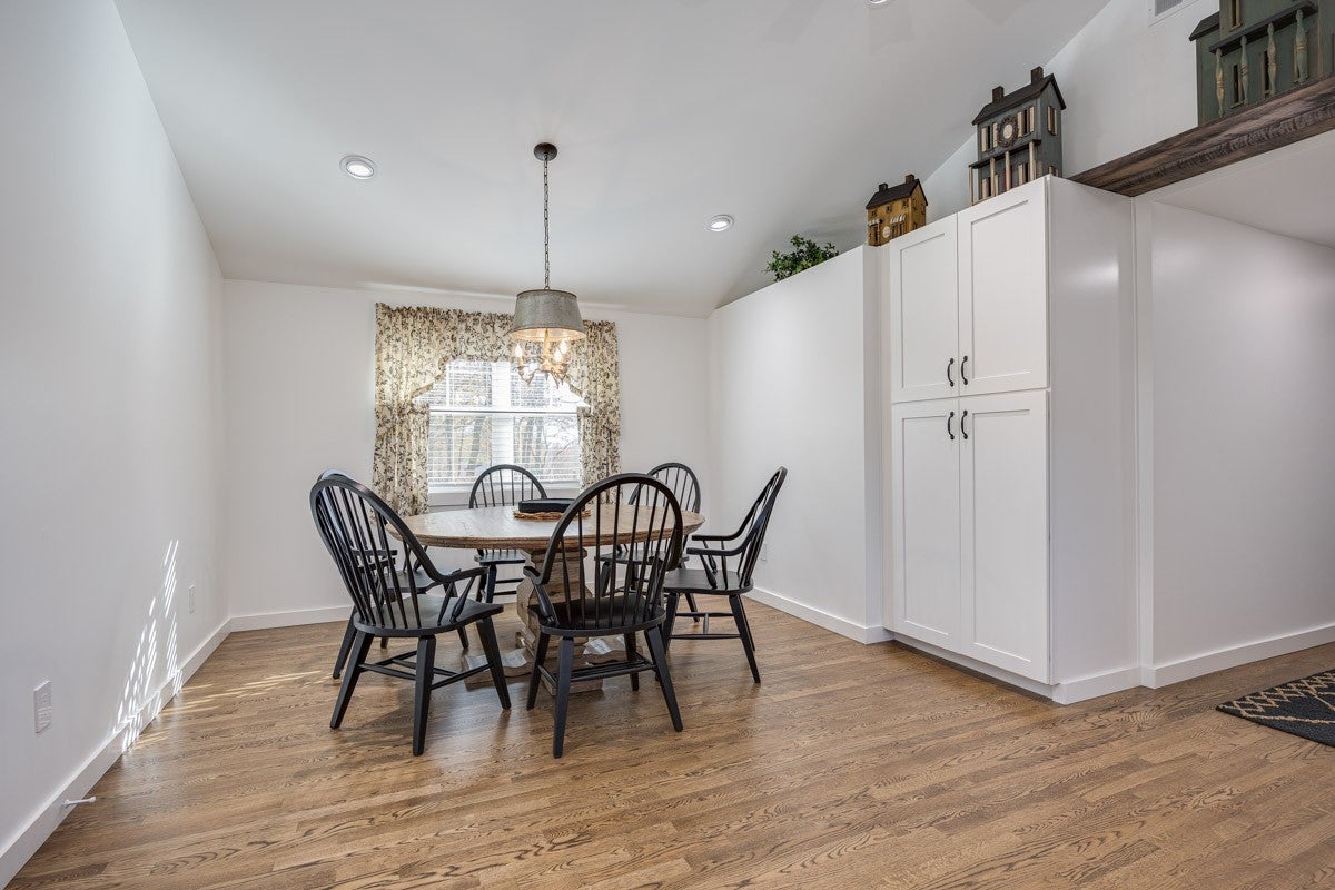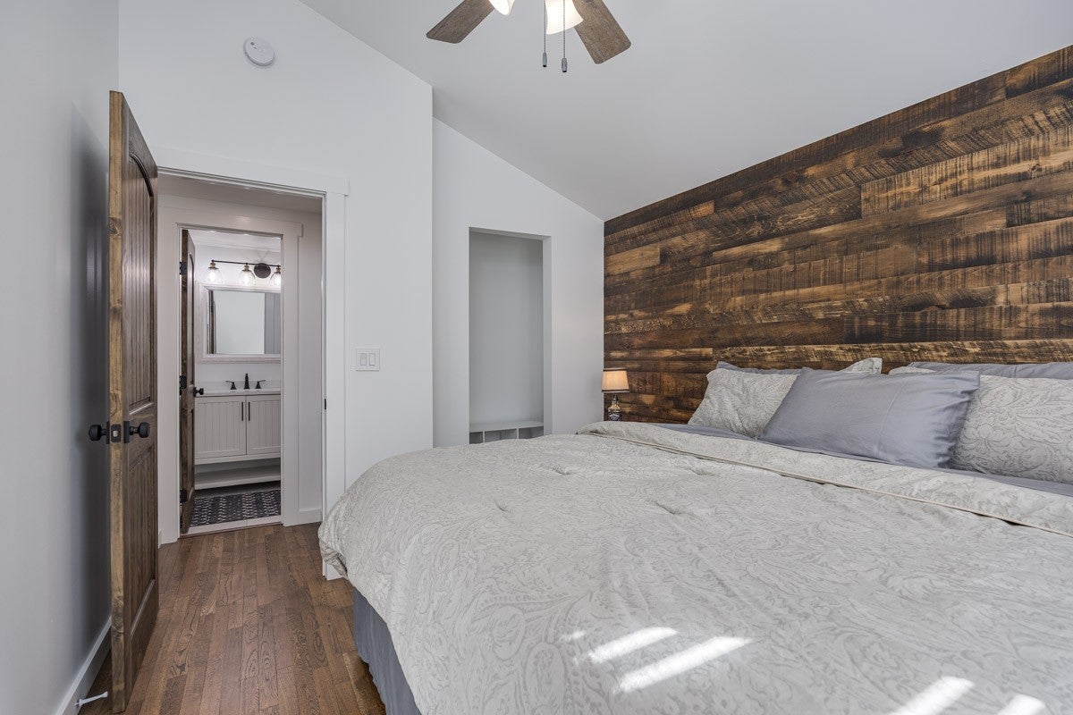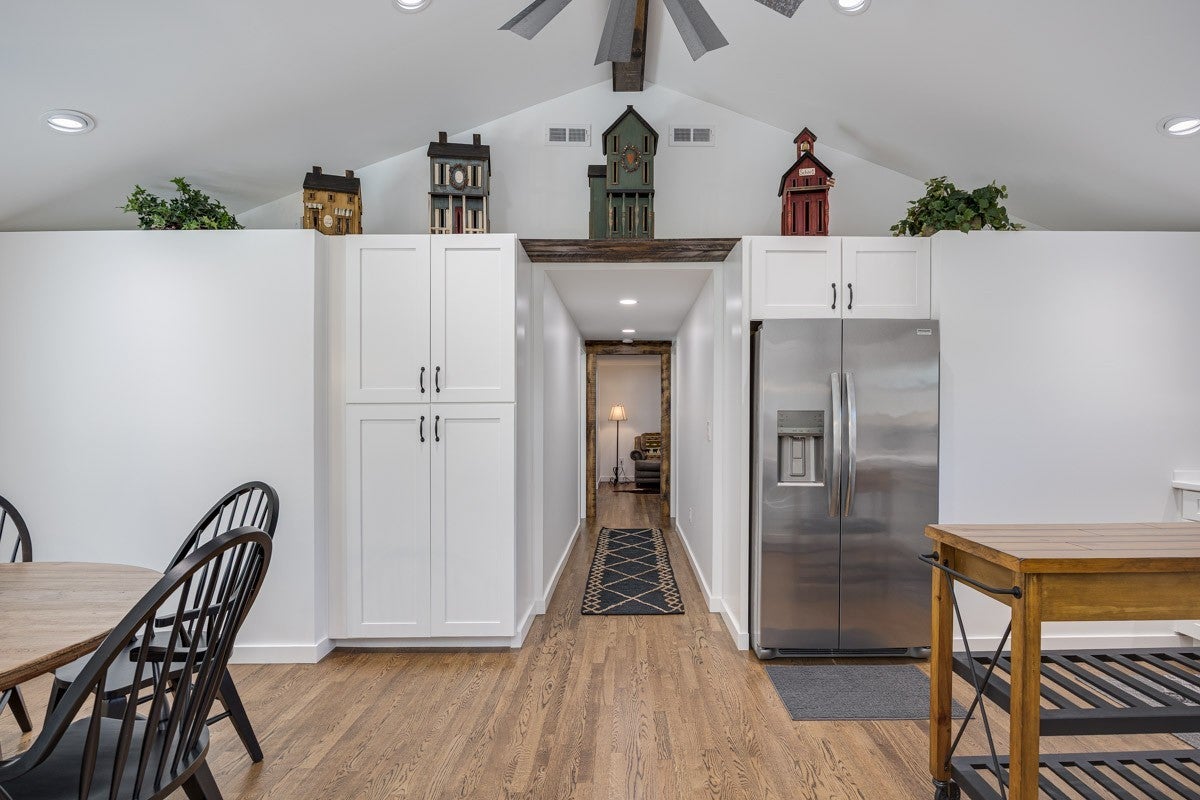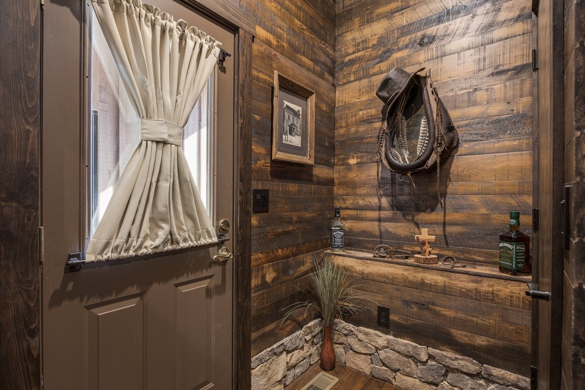 This property delivers a pair of well-built, updated living spaces in Lynchburg TN. The main residence offers approximately 2900 square feet under air, with an additional walkout basement of roughly 1140 square feet. Exterior construction blends white cypress siding on the first level with hardy board on the second level. Custom hog wire and wrought iron railings frame the wraparound upper deck, and the roof was replaced in 2018. Inside, the home features spray foam insulation within 6-inch walls and a full finish of Northern Lights Barnwood pine sourced from Duluth MN. Floors are White Oak from the Boulder Mountain Series by Shaw. Custom black iron curtain rods, insulated drapery, LED retrofit lighting, dimmers, and solar shades contribute to comfort and efficiency. A real stone wood-burning fireplace anchors the living area. The kitchen features custom distressed Showplace Cabinetry installed by Maurice’s Fine Furnishings. The oversized 11 by 4 foot island provides bar-height seating, and the chiseled-edge granite counters complement the reclaimed White Oak range hood. Appliances include a 48 inch Thor stainless dual fuel range. A Kohler apron sink, bridge faucet, and pot filler complete the workspace. Half-brick veneer extends to the vaulted ceiling behind the range. Bathrooms include porcelain tile floors and shower walls, custom vanities from foxdendecor.com, copper sinks, Delta shower fixtures, Moen faucets, glass enclosures, and a porcelain clawfoot tub in the primary suite. The guest cottage adds approximately 1380 square feet of newly updated space. A new roof, structural addition, and remodel were completed in 2023 and 2024. New front and rear decks extend outdoor living space, while original white oak floors were refinished to match additions. Interior updates include a half-brick accent wall, barnwood accents, porcelain tile flooring in the bathroom, ceramic shower walls with glass enclosure.