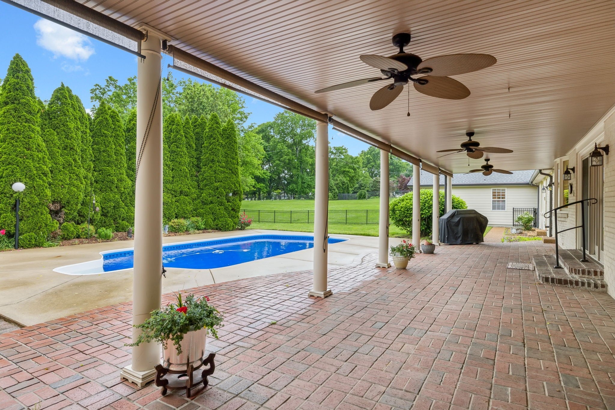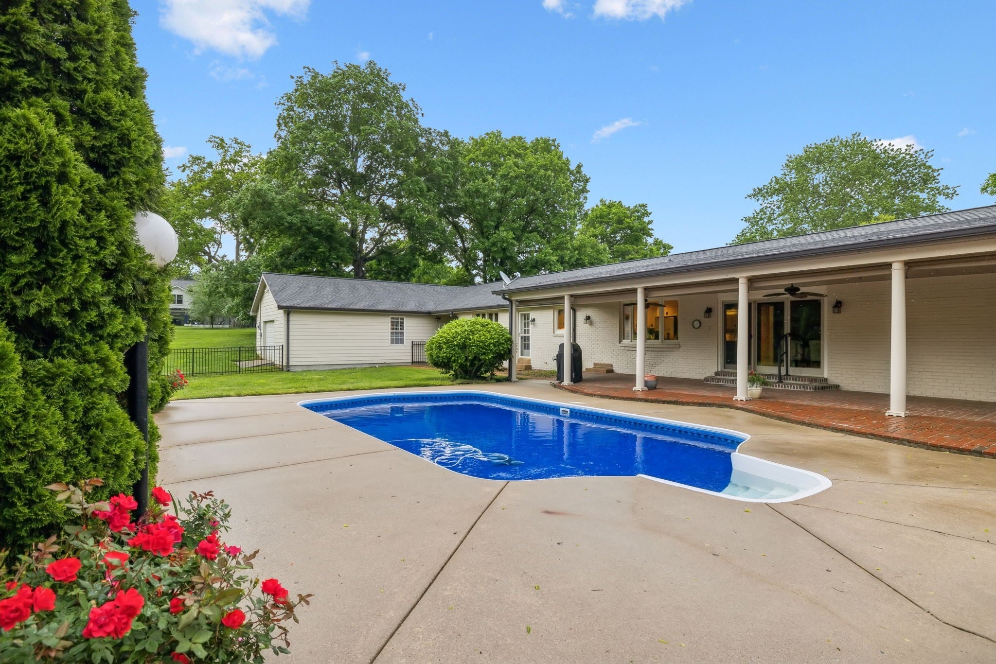 This home is so cool! Just under 5000SF ALL on one level on 2+ acres w/a pool and a 7 car garage. And what a location! Walkable to Brentwood Academy, Brentwood Middle and High and Granny White Park. Perfect location for the busy executive as it is minutes to Maryland Farms and I-65. The spacious primary retreat features a large bedroom and custom walk in closet along with tile bath that steps out to it's own private courtyard overlooking the pool. Renovated kitchen is open to the DR/LR and steps away from the vaulted family room. Additionally, there is a huge bonus room with kitchenette on the opposite end of the home