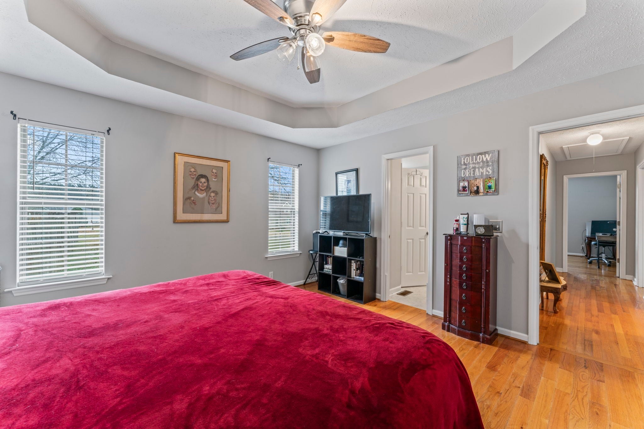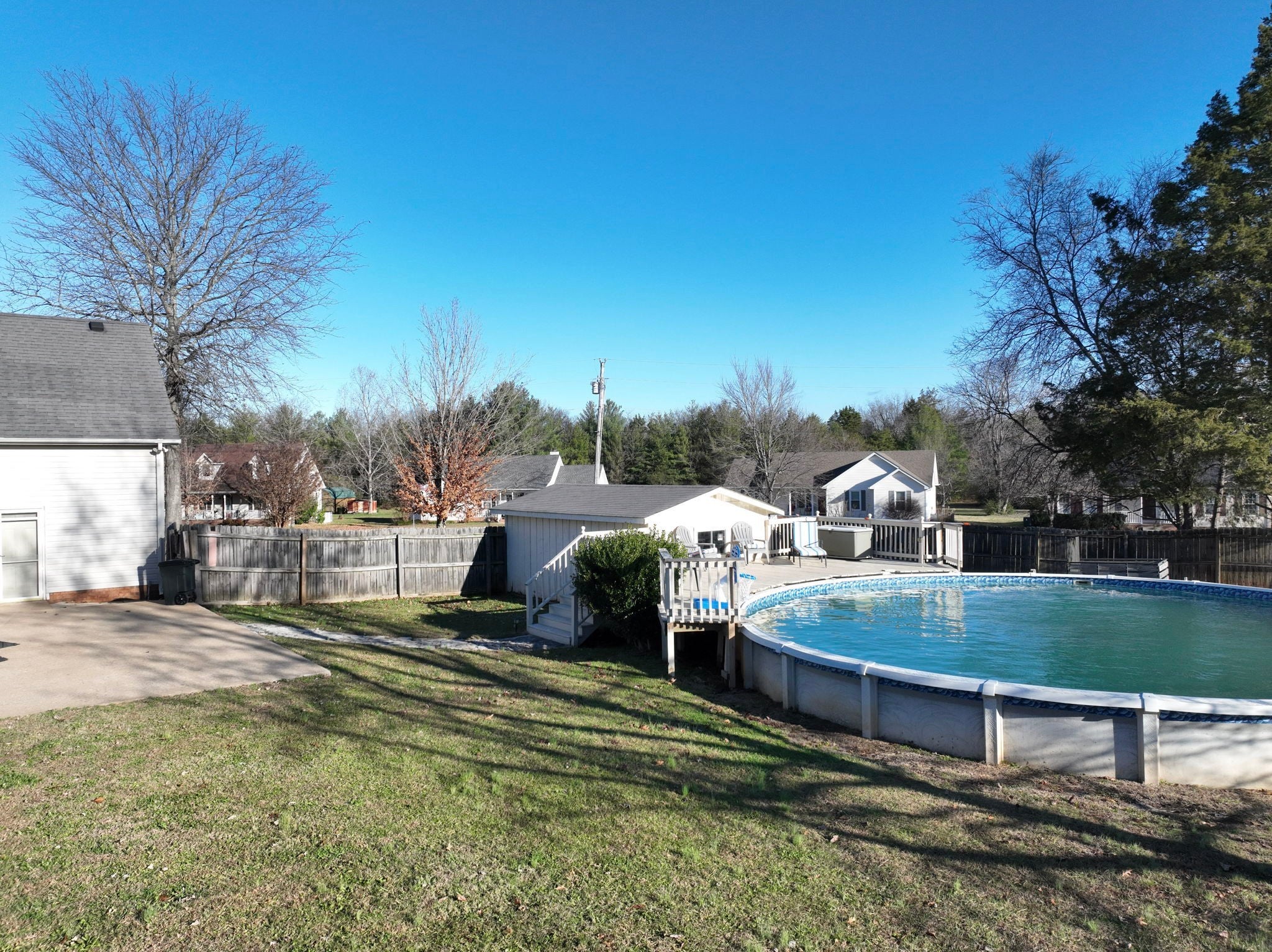 Located in a tranquil North Murfreesboro setting with no city taxes, this home sits on a 1.2 acre lot that's perfect for outdoor activities. The primary bedroom boasts dual vanities and double closets for added convenience, while fresh paint and hardwood floors flow throughout. The fenced backyard is an entertainer's dream featuring a large above ground pool with new liner and updated pump, plus a spacious deck ideal for gatherings. A huge bonus room provides versatile space for whatever you need. The roof and HVAC were updated in 2018 and the water heater was updated in 2023, ensuring peace of mind. Enjoy modern touches like sleek 2-inch faux wood blinds and enhanced safety with advanced smoke, carbon monoxide, and gas detectors. Two sheds with lean-to provide ample storage for all your outdoor gear. Don't miss the opportunity to make this lovely property yours. Schedule your private showing today!