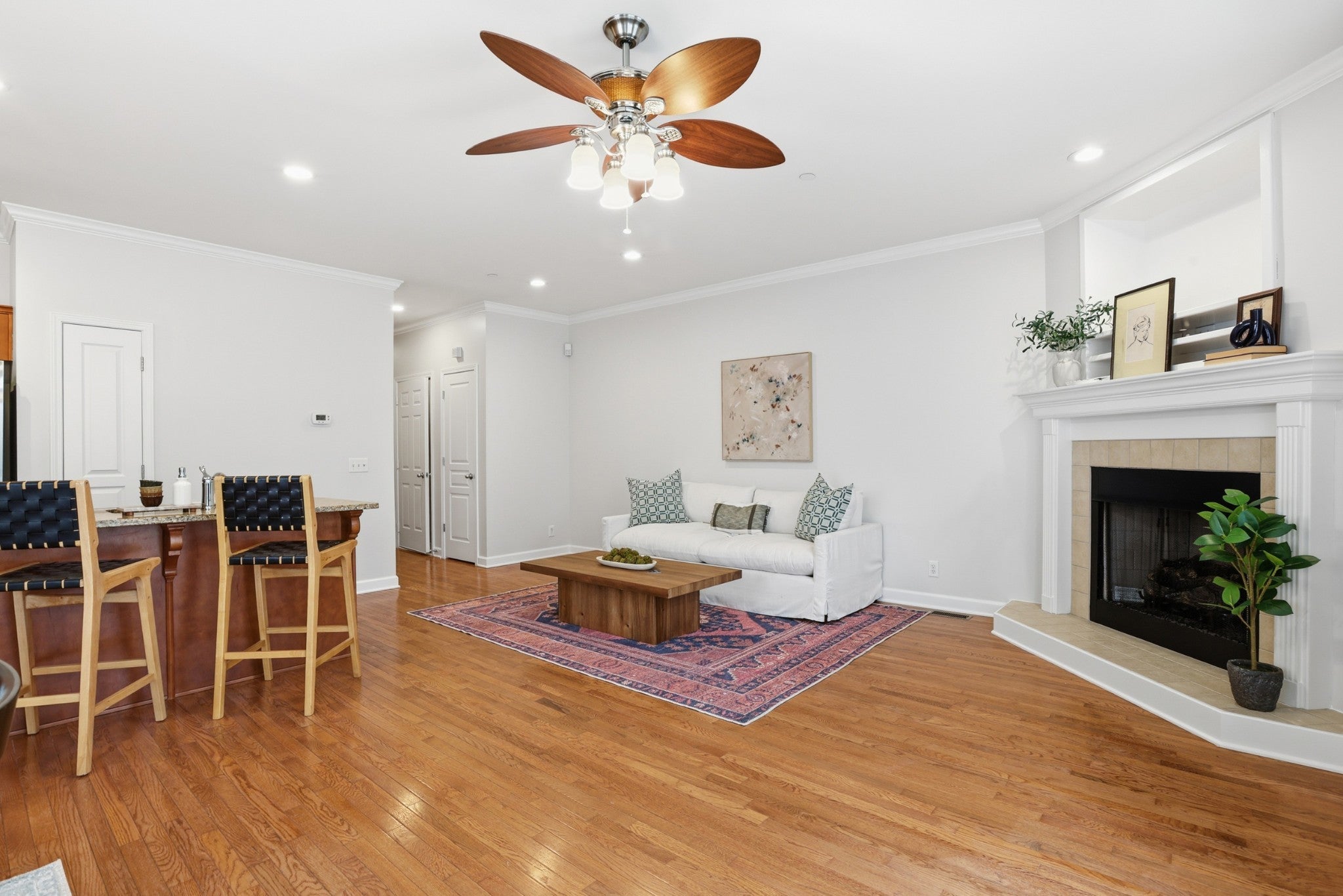 Beautiful end-unit townhome in the highly desired Park Place community. This rare end unit features a bright, open main level with 9’ ceilings, hardwood floors, granite countertops, tile backsplash, custom cabinets, and new appliances. The primary suite is conveniently located on the main floor for effortless living. A recently finished lower level adds a spacious bonus room with an electric fireplace — perfect for a lounge, movie room, playroom, gym, or office. The HOA covers all exterior maintenance except the deck, giving you true low-maintenance living. Roof and gutters are less than 2 years old, offering peace of mind for years to come. Enjoy the quiet, small-town charm of Kingston Springs just minutes away. A move-in-ready home that blends comfort, style, and convenience. Schedule your showing today.