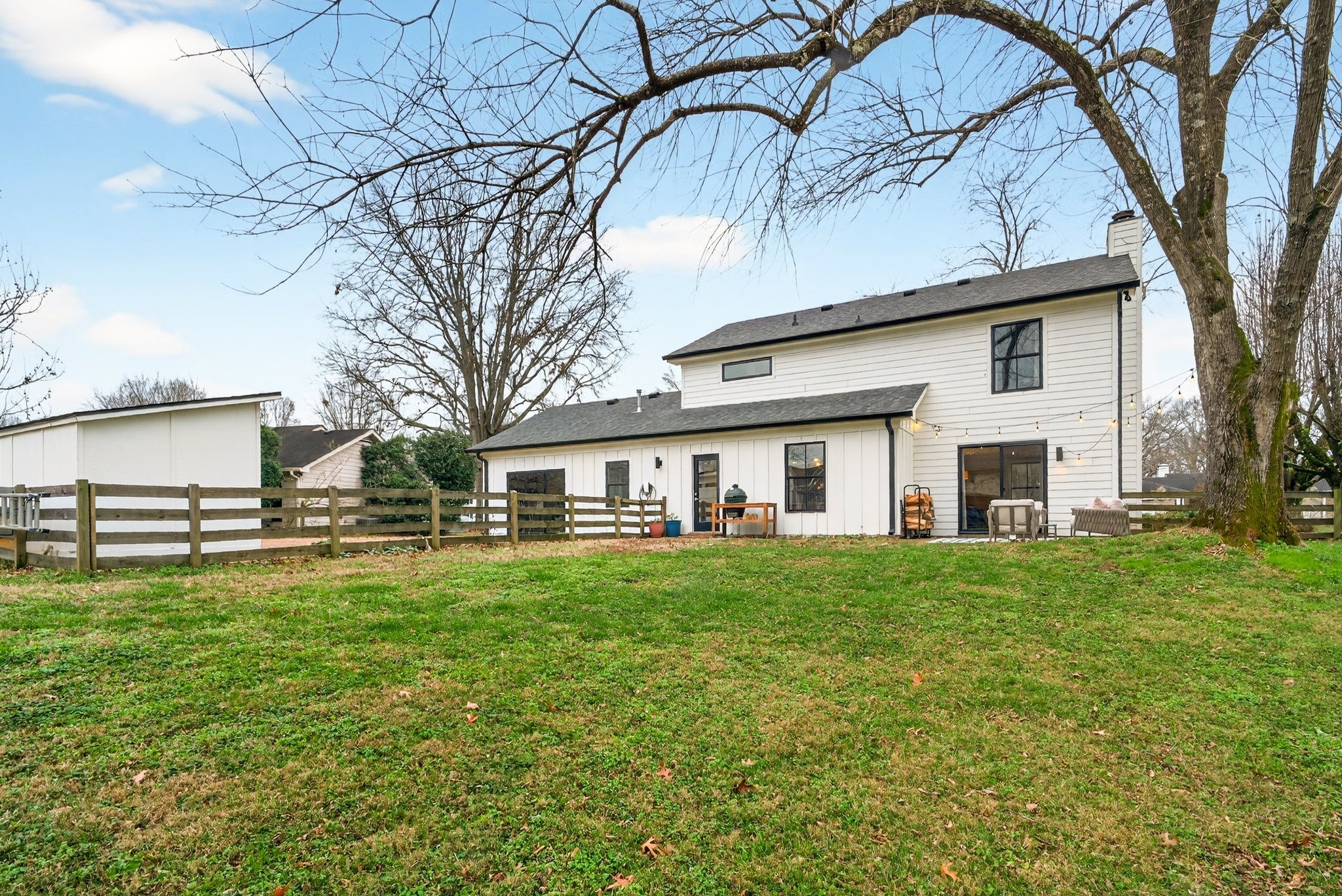 An updated colonial meets modern farmhouse with undeniable curb appeal — no room left untouched. Thoughtfully expanded by an architect-owner, this home gains meaningful square footage enhancing everyday living. Multiple spaces on the main level make room for everyone, creating multiple options for living, dining, office, family and flex space. A thoughtfully renovated kitchen offers updated appliances, a breakfast nook and a butler’s pantry. The large, newly updated light-filled family room is open to flex space and kitchen and features accordion sliding doors, a practical mudroom with built in cabinets, and a seamless extension off the kitchen that transforms the heart of the home into a true gathering space. Every detail was considered with purpose: intelligent sight lines, generous storage, and mid-century modern-inspired finishes that bring a fresh, elevated design feel throughout. 3 bedrooms and 2 fully updated baths are located on the second level for a quiet retreat. Outdoors features aluminum clad wood windows, a fenced backyard featuring a patio and a charming shed that remains for outdoor storage. This move-in ready gem is a rare find in the highly desired Grassland area.