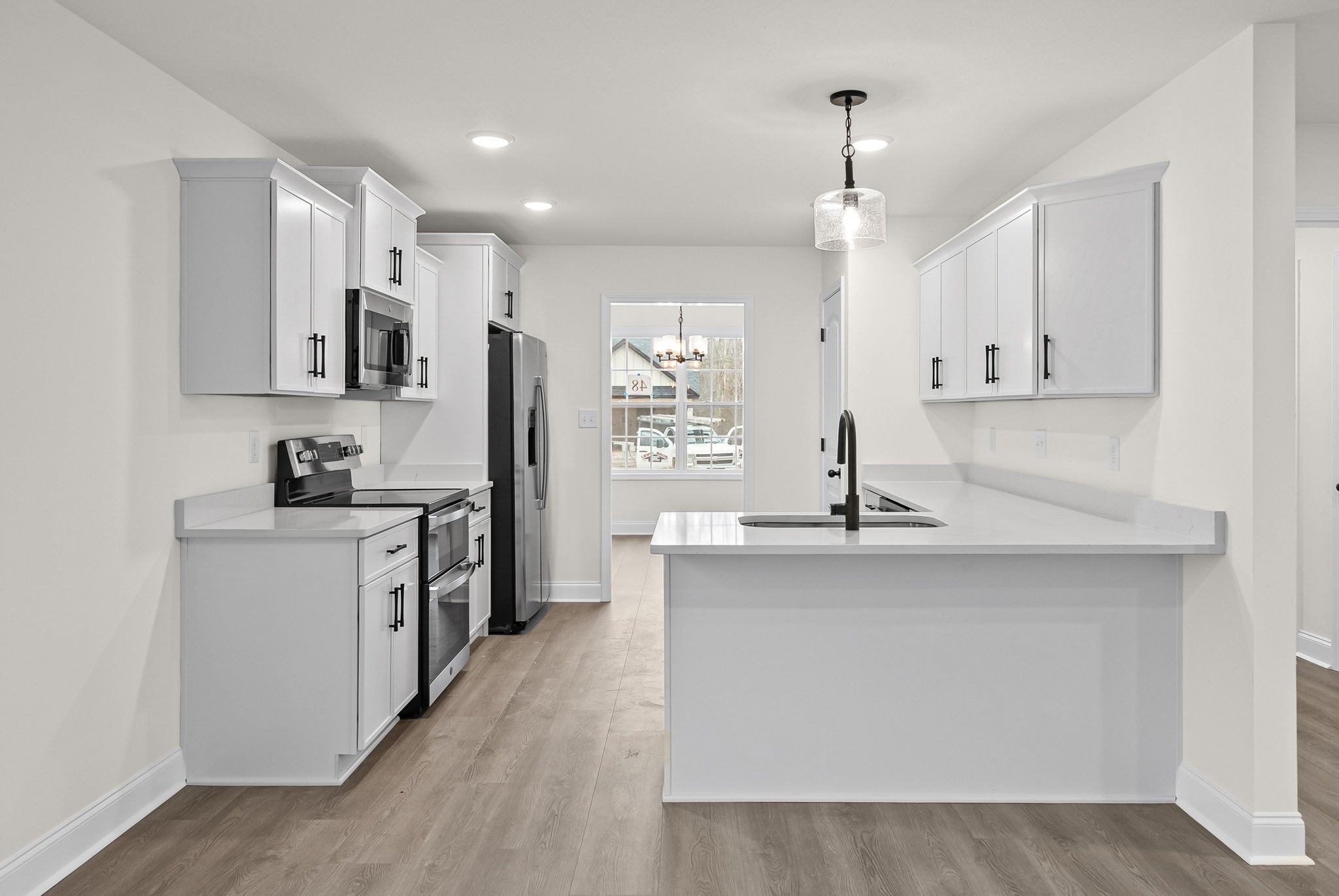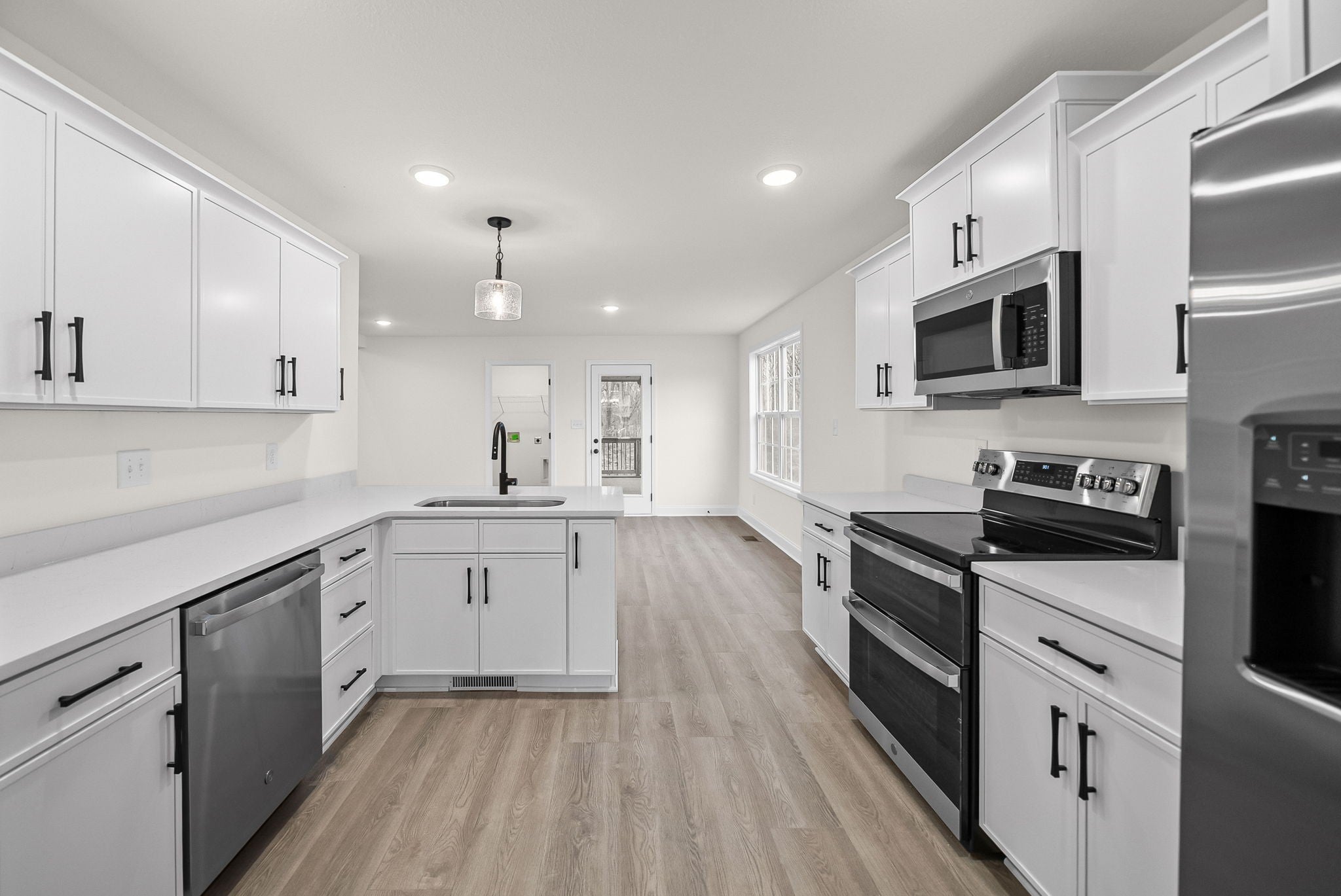 - Electric Range, Dishwasher, Disposal, Microwave