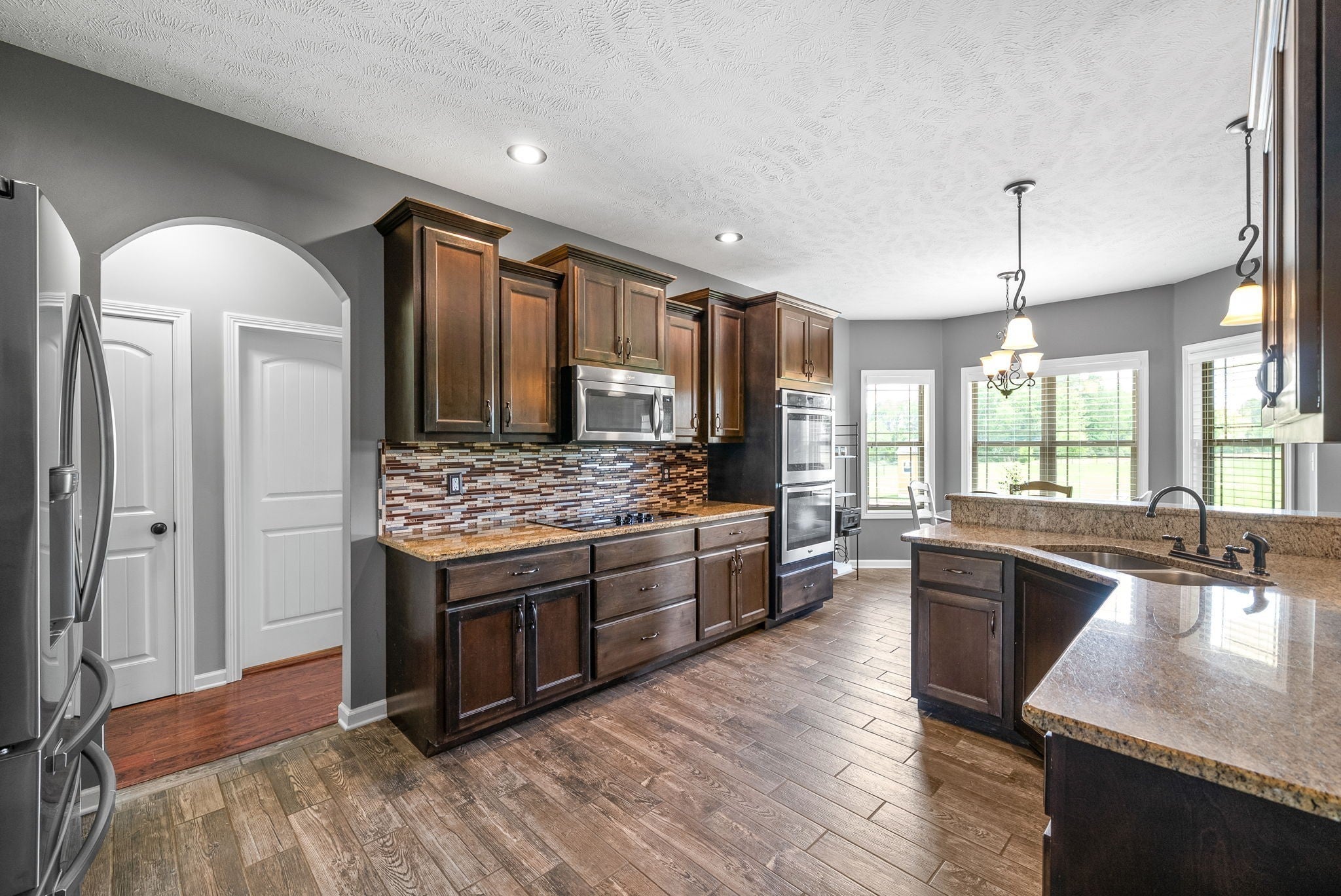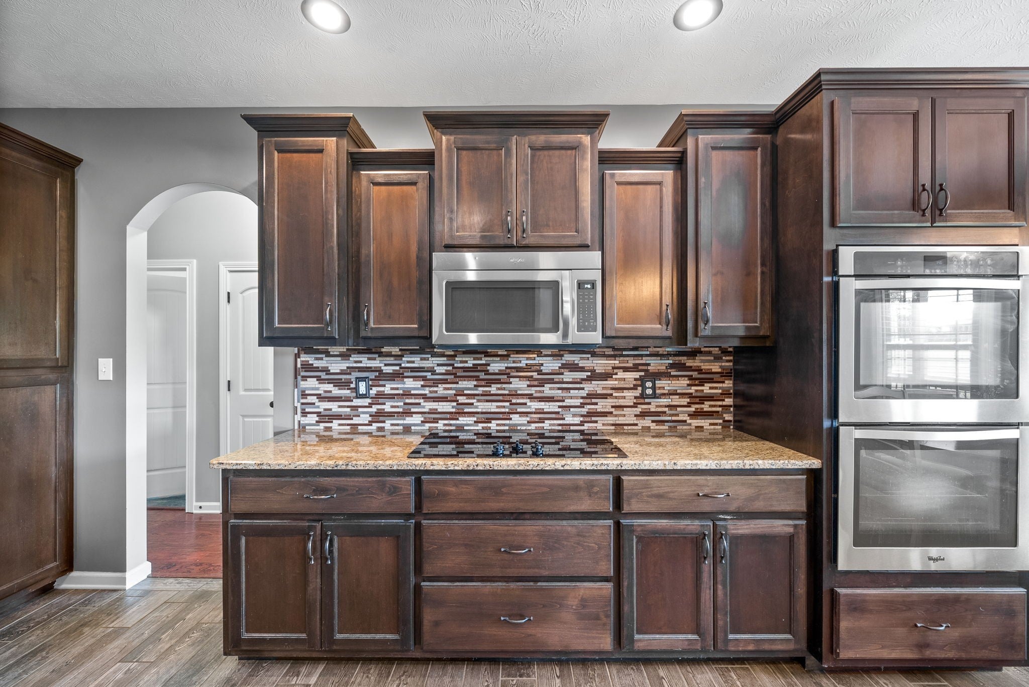 - Built-In Electric Oven, Double Oven, Cooktop, Dishwasher, Disposal, Microwave, Refrigerator