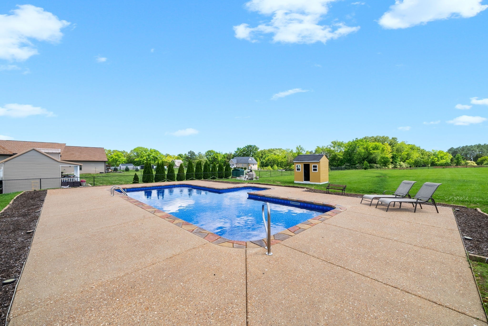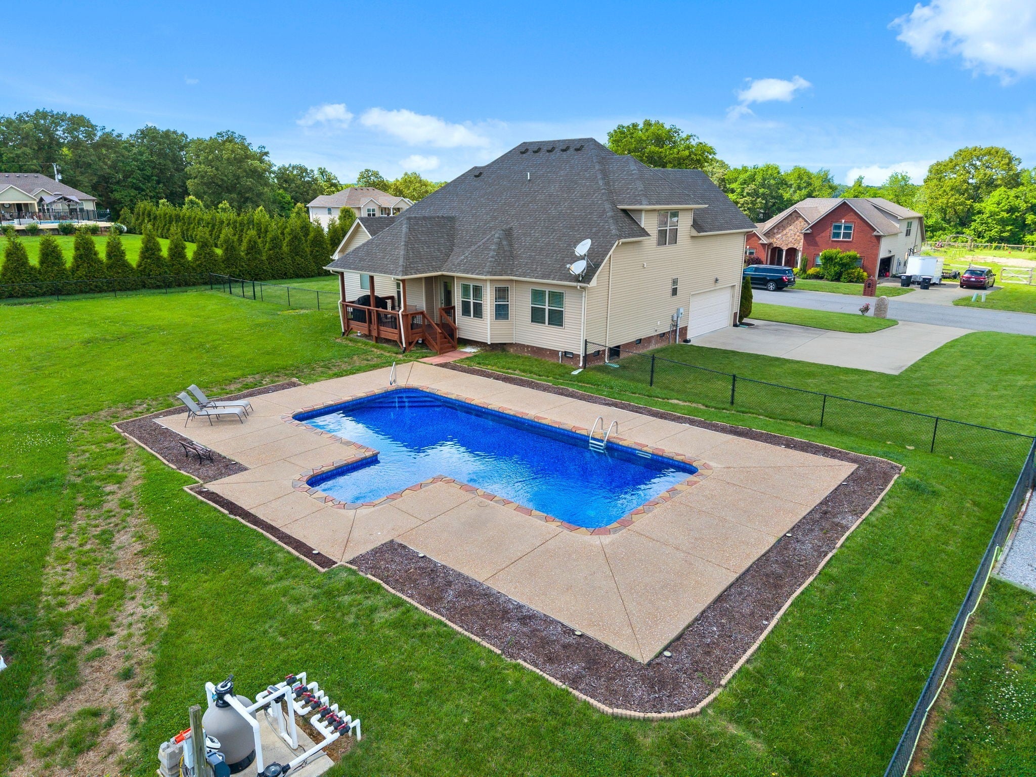 House is currently under contract with a sell of home contingency and a 48 hour right of first refusal Nestled on over an acre of gorgeous land, this show-stopping home is packed with features that will WOW you at every turn. The gourmet kitchen is a chef’s paradise with double ovens, sparkling granite countertops, and sleek stainless steel appliances—perfect for whipping up feasts or gathering with friends. Imagine enjoying sunny breakfasts in the cozy eat-in kitchen or celebrating life’s milestones in the elegant formal dining room. The primary suite is a true oasis, boasting a spa-inspired bath, an incredible cave shower, and dual vanities for ultimate luxury. Step outside to your very own backyard paradise—swim in the sparkling in-ground saltwater pool, host unforgettable summer parties, or simply unwind in the private, fenced setting. With four spacious bedrooms, a bonus room that easily transforms into a fifth bedroom, and generous closet space, there’s more than enough room for everyone to spread out and enjoy. Guests will love the convenience of a main-level guest room and full bath. And with no HOA, you have the freedom to make this incredible property truly yours. Don’t miss your chance to live the life you’ve always imagined—this home is the one you’ve been waiting for!