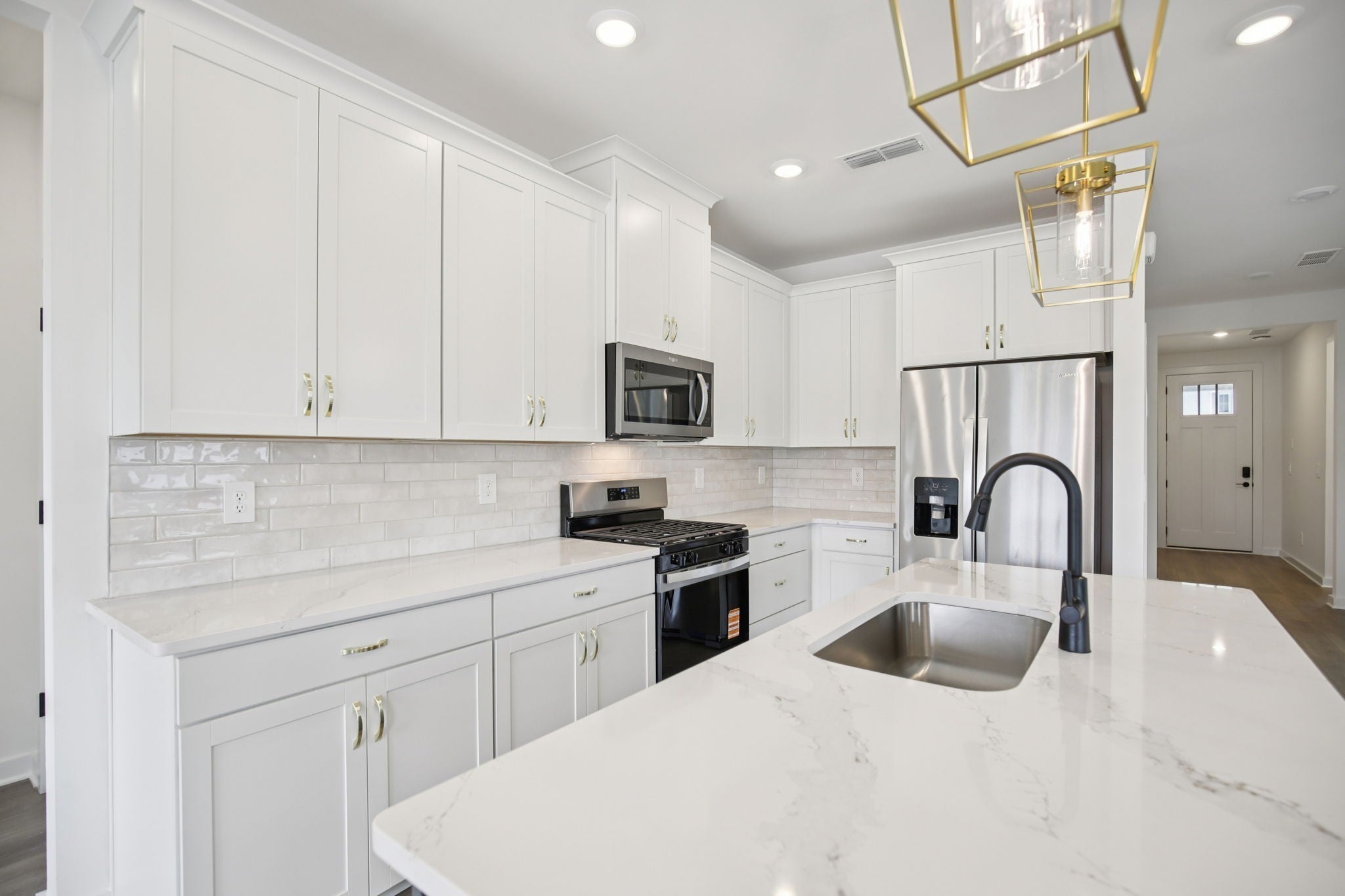 - Gas Range, Dishwasher, Disposal, Dryer, ENERGY STAR Qualified Appliances, Ice Maker, Microwave, Refrigerator, Stainless Steel Appliance(s), Washer