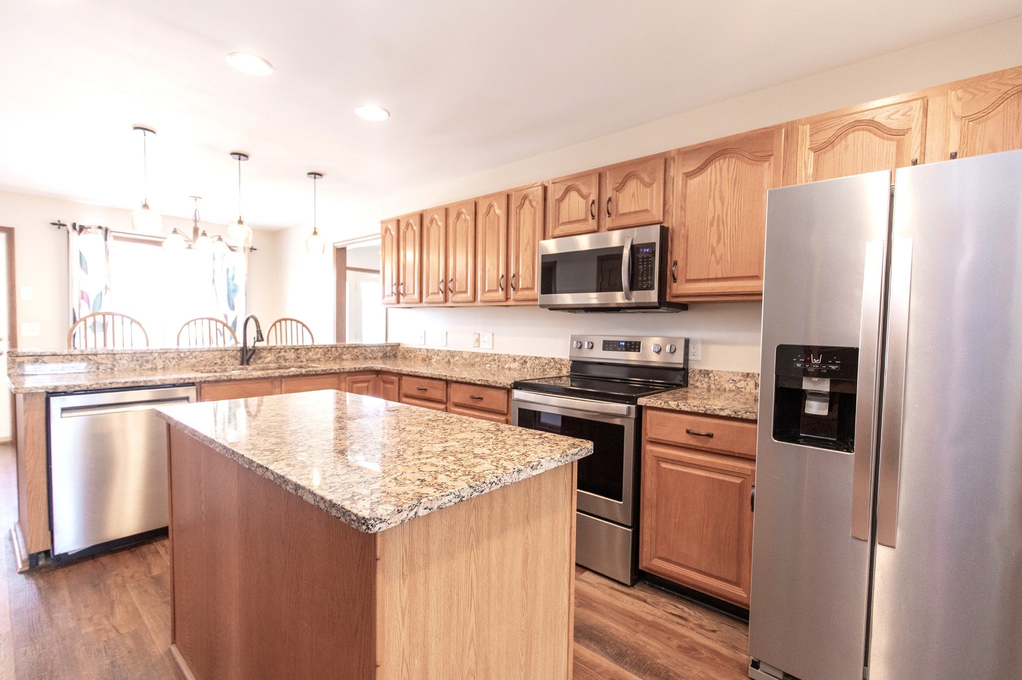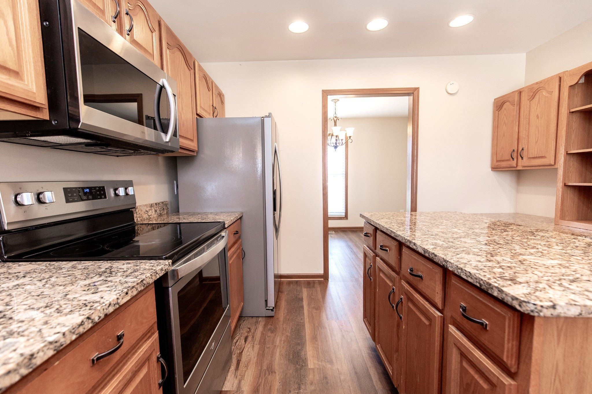 - Electric Oven, Cooktop, Dishwasher, Microwave, Stainless Steel Appliance(s)