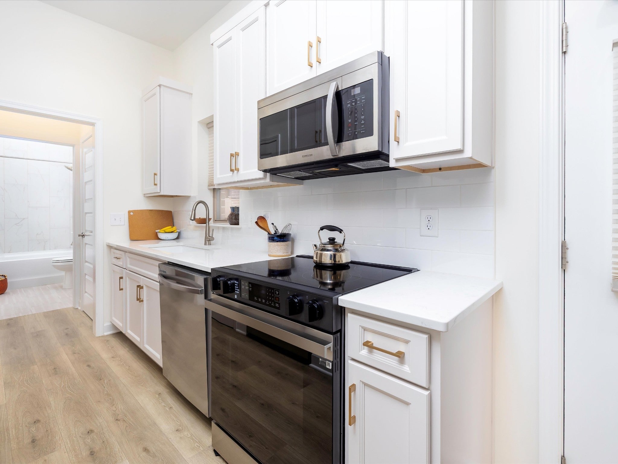 - Electric Oven, Electric Range, Dishwasher, Disposal, Dryer, Microwave, Refrigerator, Stainless Steel Appliance(s), Washer, Smart Appliance(s)