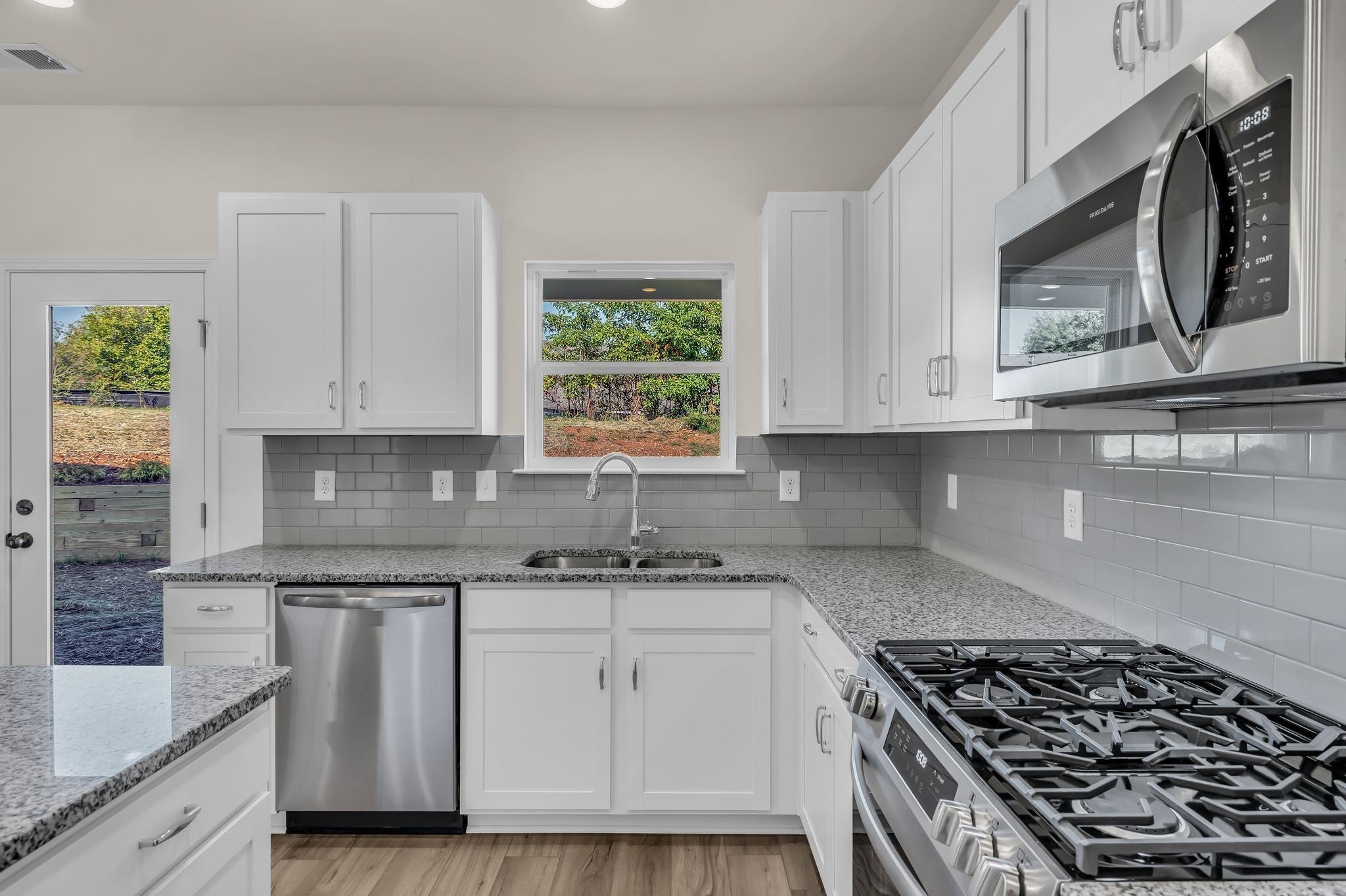- Gas Oven, Gas Range, Dishwasher, Disposal, Microwave, Refrigerator, Stainless Steel Appliance(s)