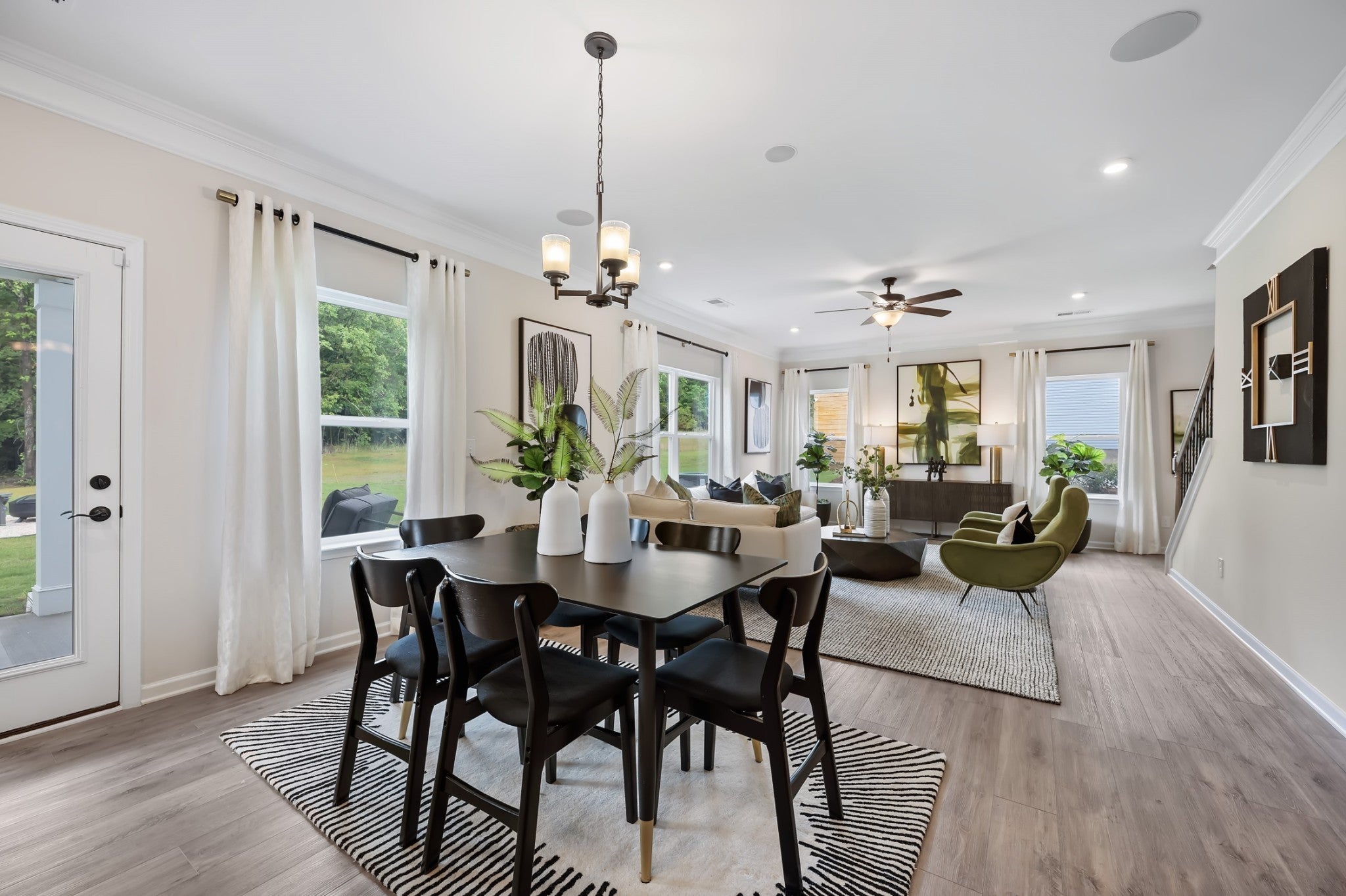 The McGinnis at Hampshire Hills by Smith Douglas Homes. The McGinnis offers a two-story floorplan with a welcoming wide entry leading to a traditional dining room that is perfect for entertaining. Both the kitchen and family room live to the rear of the home, with convenient access to the yard from the kitchen area. Upstairs the owner’s suite with very large walk-in closets and a large secondary bathroom are all located off the open loft perfect for a workspace, playroom or hobby space and there you’ll find an ample laundry room. For flexible living, a study or fifth bedroom and full bath is optional on the first floor in lieu of a dining room. QUICK MOVE IN HOME!!!
