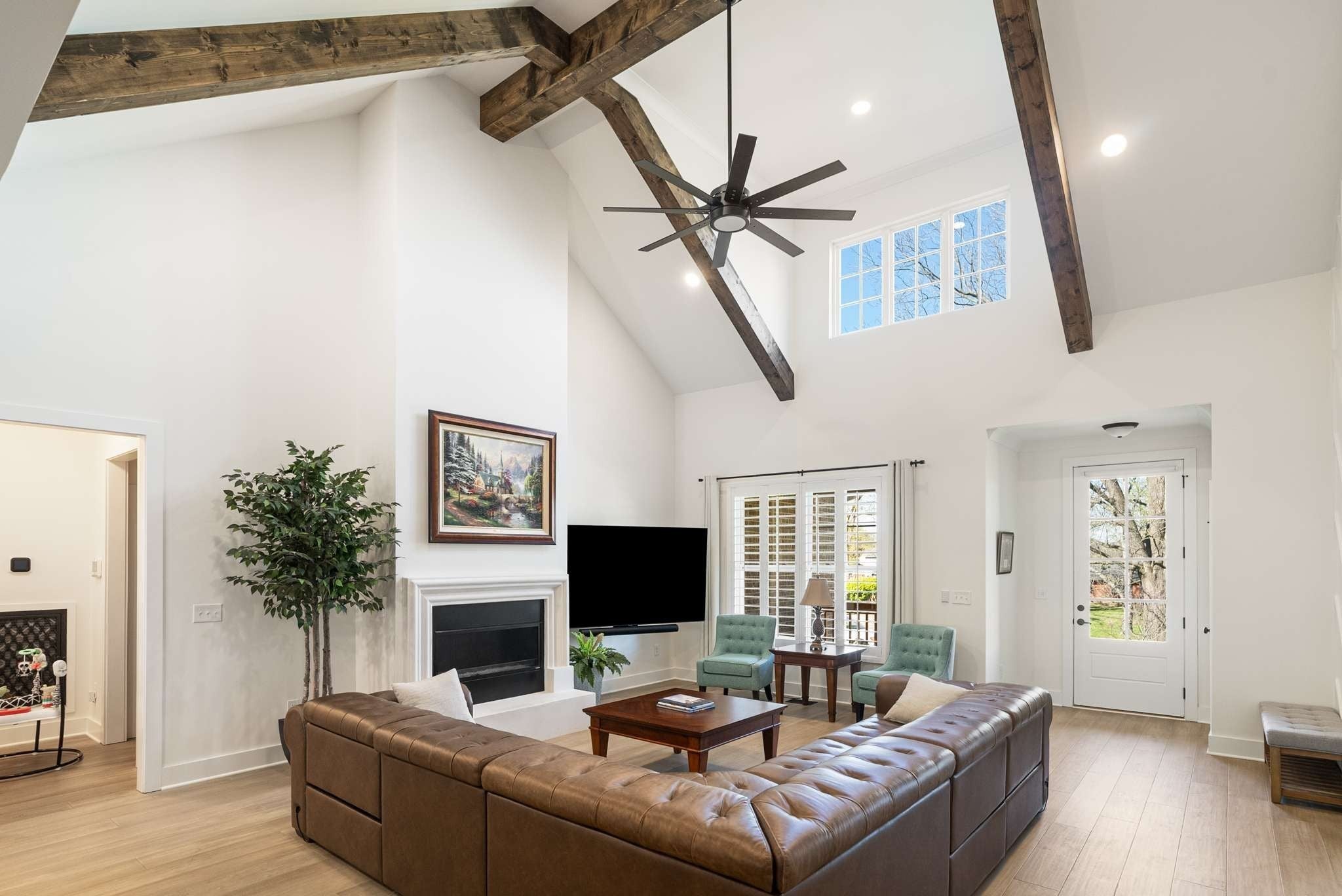Welcome to 3954 Keeley Drive, a one year new custom home situated on an elevated lot close to so many great Nashville locations! This 4 bedroom, 3.5 bath Modern Craftsman home was designed to emulate the country living this lot embodied years ago, featuring magnificent trees shading the front and back of this east/west facing home. As you enter, the open floor plan unveils a 20 foot vaulted ceiling in the family room with massive wood beams and an exquisite remote controlled Venetian plaster Monessen gas fireplace. Proximity Mills white oak engineered wood floors complement the interior paint color - Greek Villa. The gourmet kitchen features quartz counters, soft-close gray painted cabinets, and upgraded Z-Line appliances. French sliding doors lead from the kitchen to the covered, enclosed patio room. This nearly 1/2 acre lot offers views and seclusion through the 4.5 inch plantation shutters of this mostly main floor living home. The extra large primary bedroom features 10 foot tray ceilings with five windows bringing in morning sun, along with southern exposure sunlight throughout the day. The spa-like primary bath features tile flooring, generous walk-in shower, and soaking tub with dual vanities. On the other side of the home are two bedrooms sharing a hall bath with quartz counters, along with a half bath and a separate full office. Upstairs you will find a loft bonus room and a full bedroom and bath. Extra touches a new Hide-a-Hose Central Vacuum system, Symspire security system, Fancy Vents Iron Air Registers, and Epoxy flooring in the oversized garage (24x25). There's even room for a 50-foot RV Pad with electrical service! Many popular Nashville attractions are within 10 minutes, including the Nashville Airport, Nashville Zoo, Sprouts, Vanderbilt Medical at Hundred Oaks Mall, Brentwood, and the new Century Farms Mall. In addition, the newly opened and popular Valor Charter school and Kings Academy are within 5 minutes. Schedule your in-person tour today!