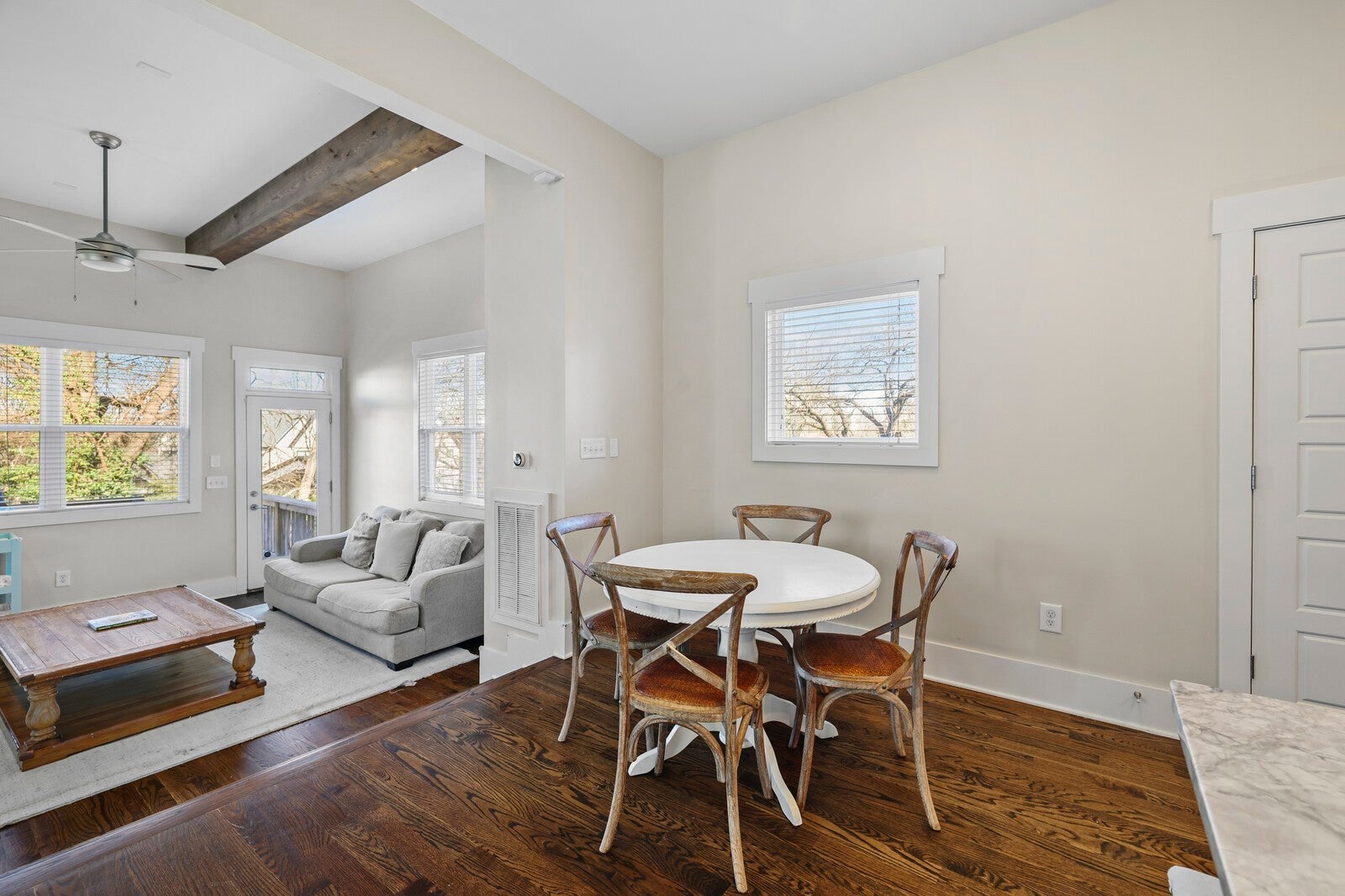 Welcome to this stunning home located in the highly desirable Melrose Heights neighborhood. Fantastic location close to 8th Ave, Berry Hill and a short drive to the Gulch/Downtown. Just a short walk to GEODIS Park and convenient to everything Nashville has to offer, this home blends style, comfort, and unbeatable location. Step inside to find tall ceilings with exposed beams, abundant natural light, and gleaming hardwood floors throughout the main living spaces. The bright, open kitchen features granite countertops, ample cabinetry, and easy flow to the living and dining areas—perfect for everyday living or entertaining. The spacious owner’s suite offers an oversized walk-in closet and plenty of room to unwind. You’ll love the thoughtful storage space found throughout the home. Enjoy outdoor living on the back deck overlooking the fully fenced backyard, ideal for pets, gardening, or relaxing with friends. This home truly has it all—style, storage, location, and comfort. Don’t miss your chance to make it yours!