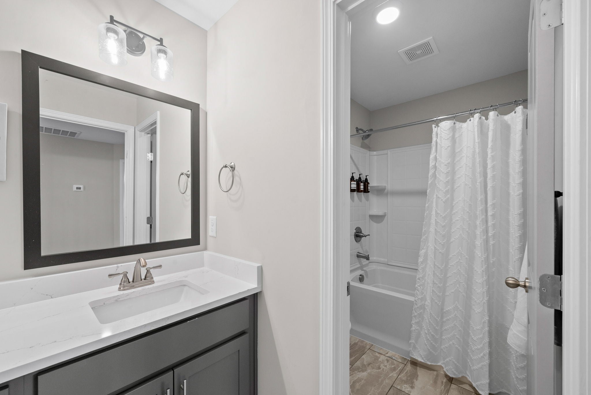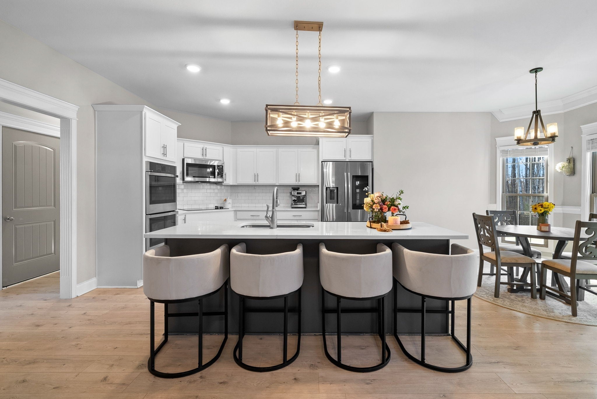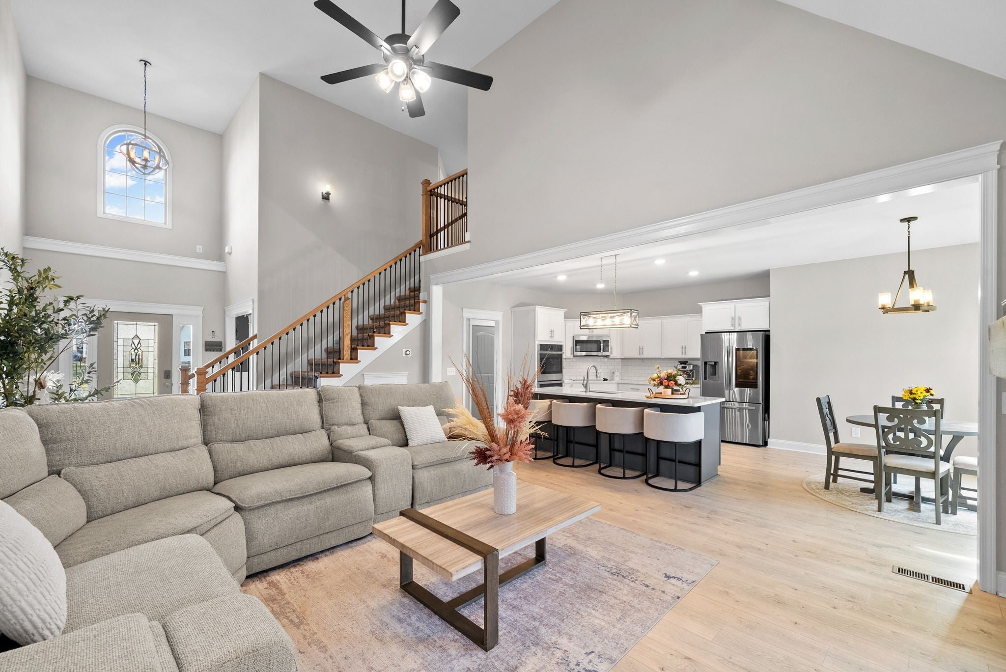Located in the sought after Easthaven community, this beautifully designed home blends comfort, style, and convenience. Residents enjoy resort style amenities including a pool, modern clubhouse, fitness center, playground, walking trail, and access to some of Clarksville’s Top Rated Schools. Perfectly positioned on a private, fully fenced, flat backyard, the home offers both privacy and outdoor usability. Tall ceilings and abundant natural light highlight the wide luxury vinyl plank flooring throughout the main level, no carpet on the first floor. The spacious living room feels bright and welcoming, flowing seamlessly into the gourmet kitchen featuring double ovens, an electric cooktop, stainless steel appliances, a Samsung touchscreen refrigerator, and elegant white granite countertops. The eat in dining area overlooks the backyard, while the formal dining room is perfect for gatherings and holiday entertaining. The oversized main level primary suite offers a peaceful retreat with dual built in closets and a spa inspired bath featuring separate vanities, an oversized tiled shower, and a soaking tub. A secondary bedroom on the main floor provides flexibility for guests or an office, supported by a full bath. A walk in laundry room with storage adds everyday convenience. Upstairs includes two spacious bedrooms with walk in closets, a double sink bathroom, and a large bonus room ideal for a media space, playroom, fitness area, and/or home office. There are endless possibilities! Enjoy year round outdoor living on the screened in patio, perfect for morning coffee, lemonade in the summer, or hot cocoa on winter mornings. The home also features a sodded yard and an oversized two car garage with new epoxy flooring. Located near Thirsty Goat Coffee & Beer Garden, shopping, grocery stores, and just minutes from Exit 11 for an easy commute to Nashville, this home offers exceptional Clarksville living. OPEN HOUSE: Saturday December 27th - 10:00A - 2:00P.