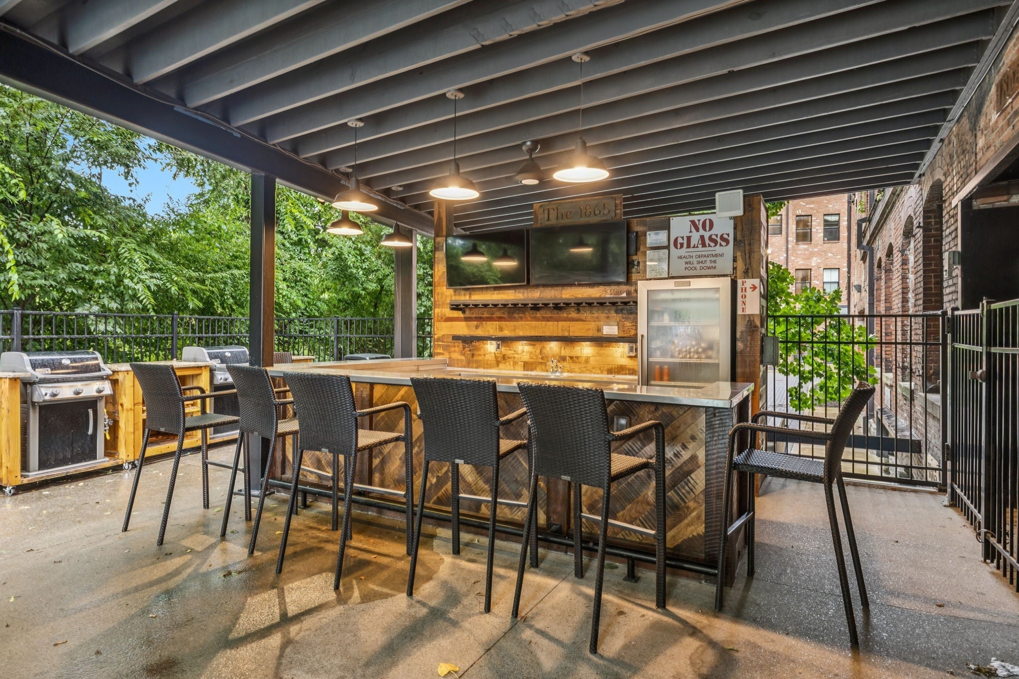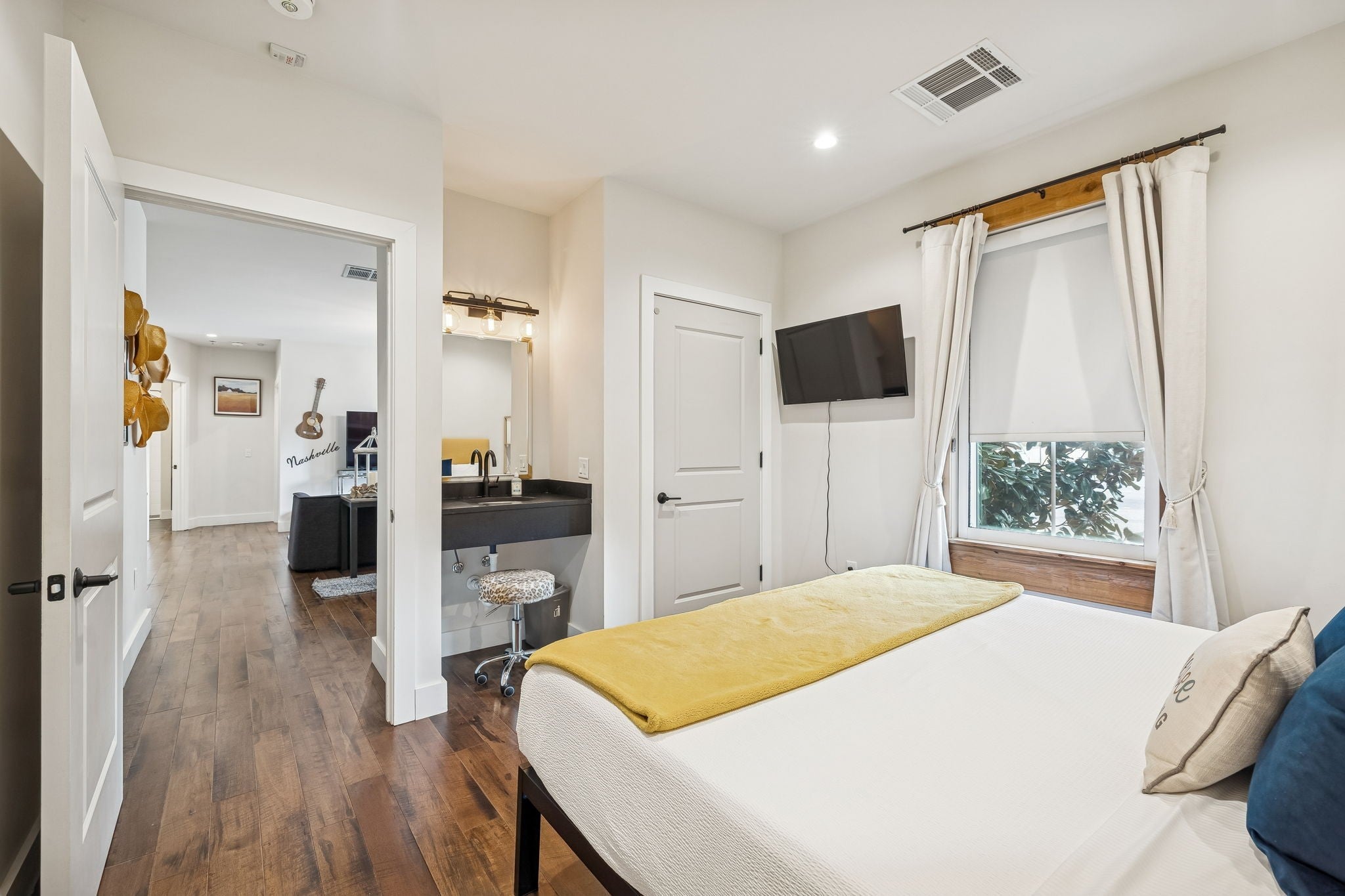 Experience upscale comfort and unmatched convenience in this fully furnished, single-story condo in The 1865, a gated Midtown Nashville community just moments from Broadway, Music Row, and Vanderbilt. This street-level flat offers true ease of access with no stairs and two separate entrances—one from the interior hallway and one from the exterior—and is located just steps from parking for effortless coming and going. This home is being sold fully furnished, with all appliances included, making it completely turnkey from day one. Inside, you'll find an open floor plan, beautiful wood flooring, and a modern kitchen featuring a single-basin stainless steel sink. The bathroom is spacious and beautifully tiled, complete with a walk-in shower. One of the bedrooms includes an additional vanity with a sink, offering extra convenience for guests or shared living. This home can be used for short-term rental, making it an exceptional opportunity for investors or anyone seeking a ready-to-go second home in one of Nashville’s most vibrant neighborhoods. Residents of The 1865 enjoy resort-style amenities, including a saltwater dipping pool, sky deck with views, outdoor bar and barbecue area, fitness center, and ample free parking. The community’s newest highlight—The 1865 Club, an on-site speakeasy offering craft cocktails and live music—adds a unique social experience right at your doorstep. Don’t miss your chance to own a stylish Nashville retreat with luxury living, income potential, and complete turnkey convenience.