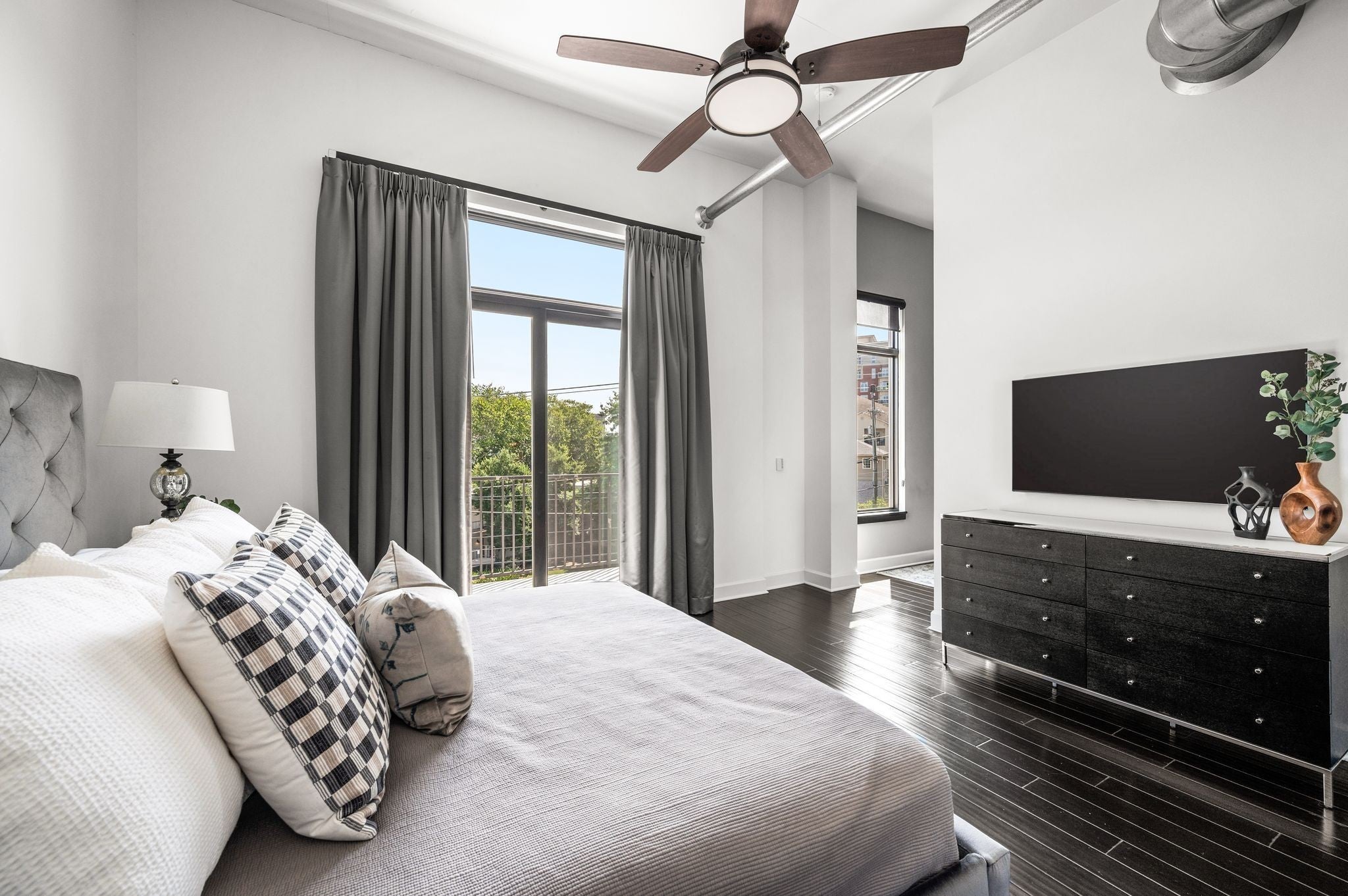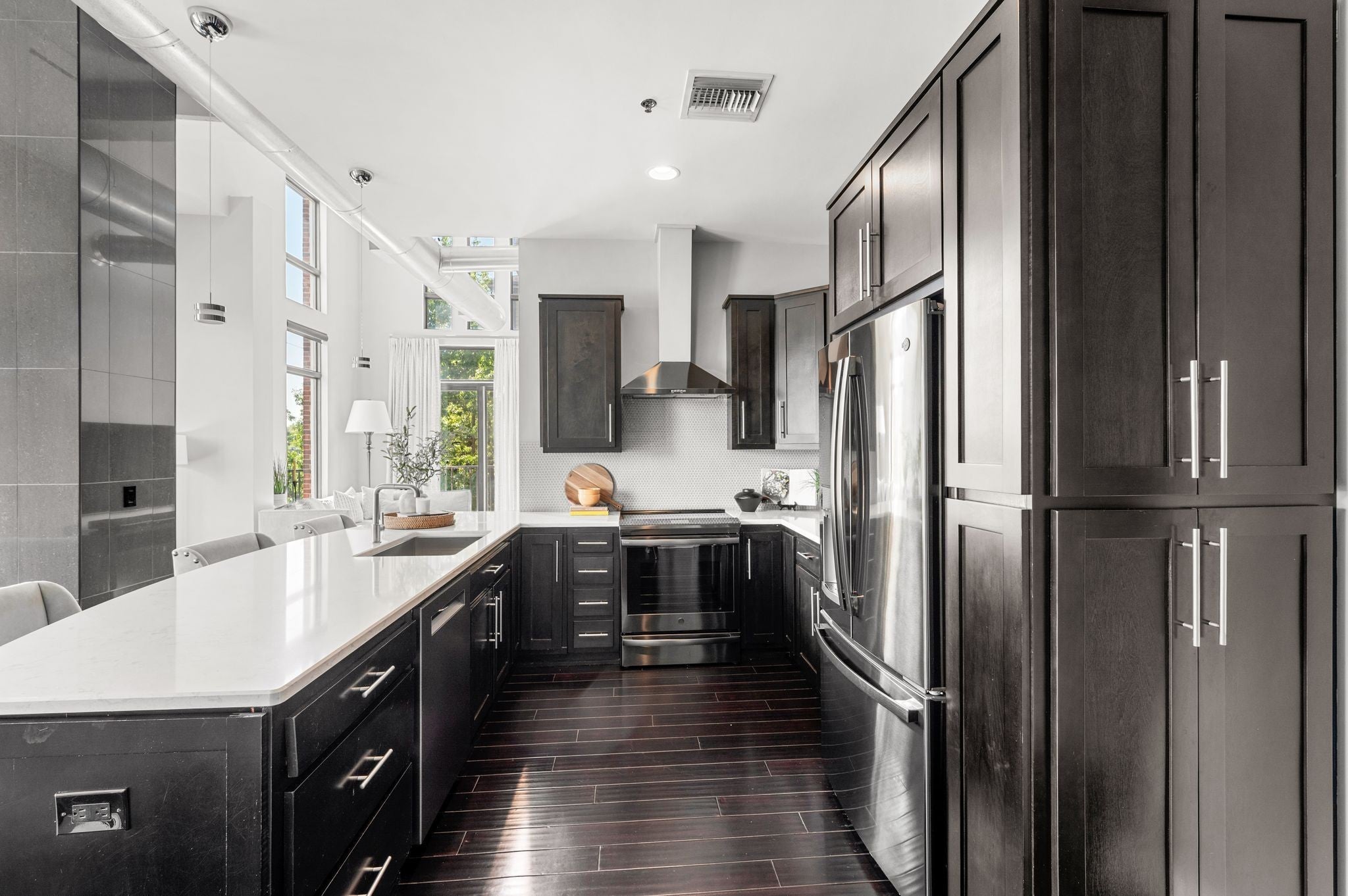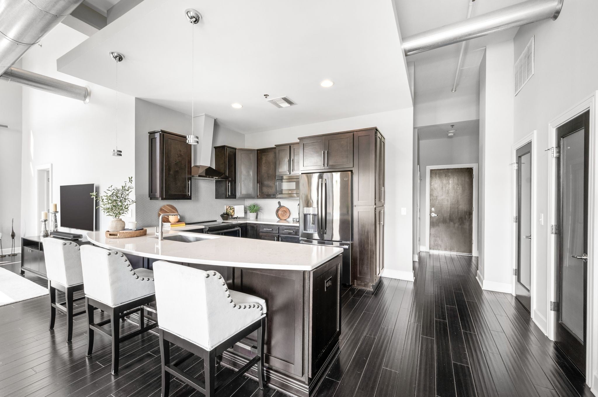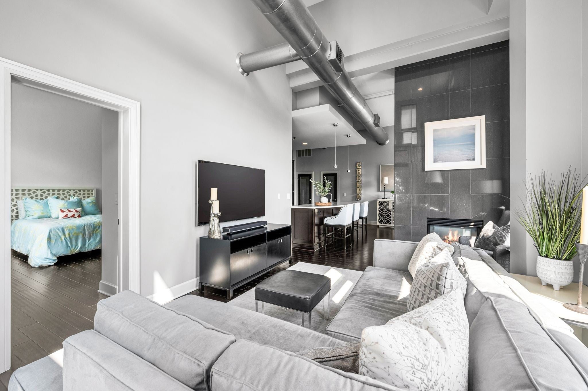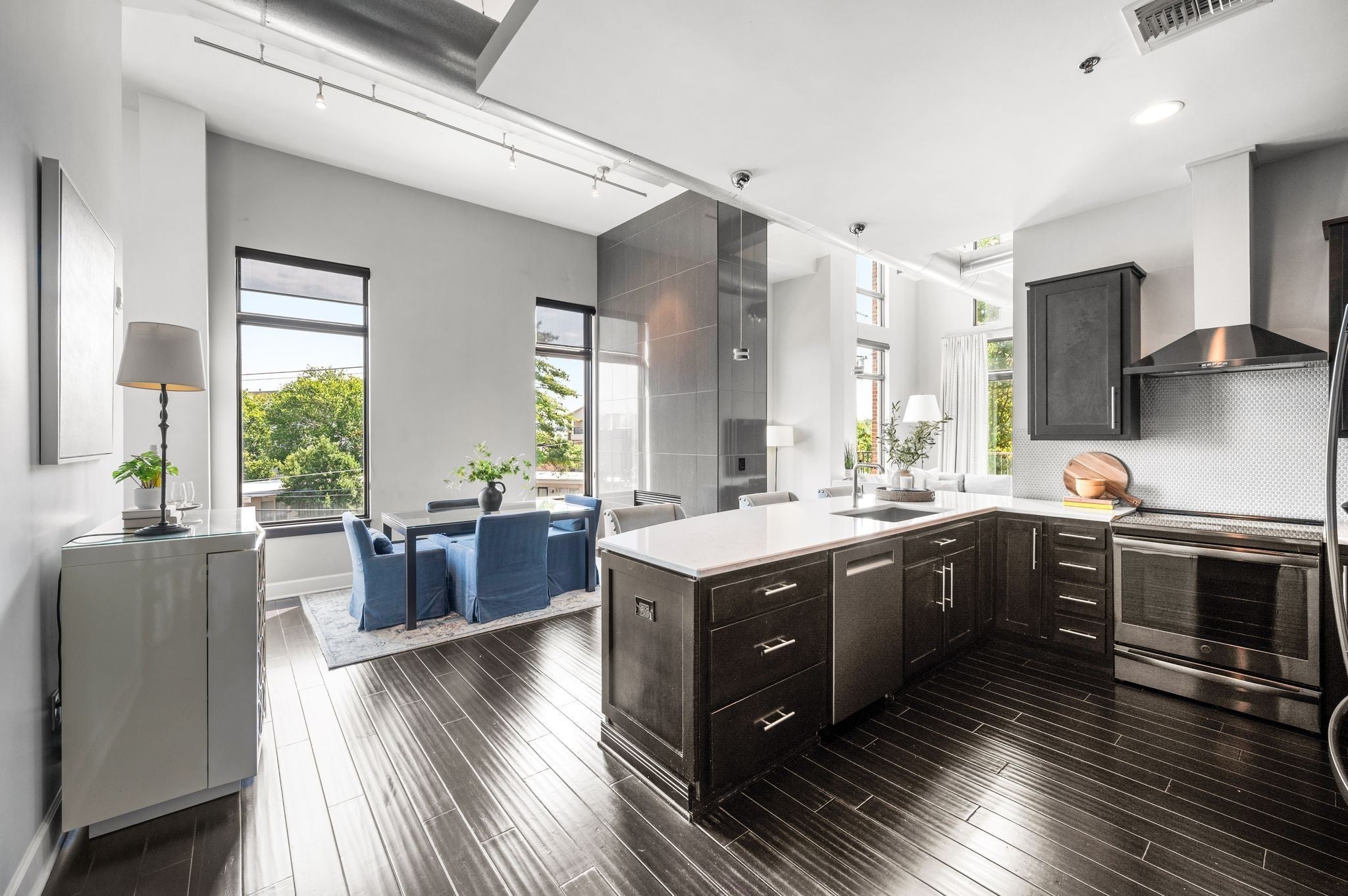 Fully Renovated Top Floor Corner Unit Loft. Wonderful location walkable to Vanderbilt, Centennial Park and many restaurants in the West End area Perfect blend of industrial loft and modern chic design. Cambria quartz counter tops, penny tile backsplash, hardwood flooring. All new appliances, Induction Range, microwave, refrigerator, dishwasher and washer and dryer. Open floor plan with loft style high ceilings. Double sided gas tiled to the ceiling fireplace. Two large spacious bedrooms. Two separate balconies. 1 off the primary bedroom. 1 off the living area. Perfect spot for that morning coffee or evening cocktail. Renovated bathrooms. Tile showers and soaking tub. Built in storage cabinets in primary closet. Includes safe. Secure building and secure gated parking area. Two assigned parking spaces with this unit. Storage cabinets in front of each parking space. Gorgeous resort-style beautifully landscaped private pool. Includes a covered grill area perfect for entertaining. HOA includes water and gas. Plenty of street parking along 31st Ave for guests. Furnishing are also available for sale.