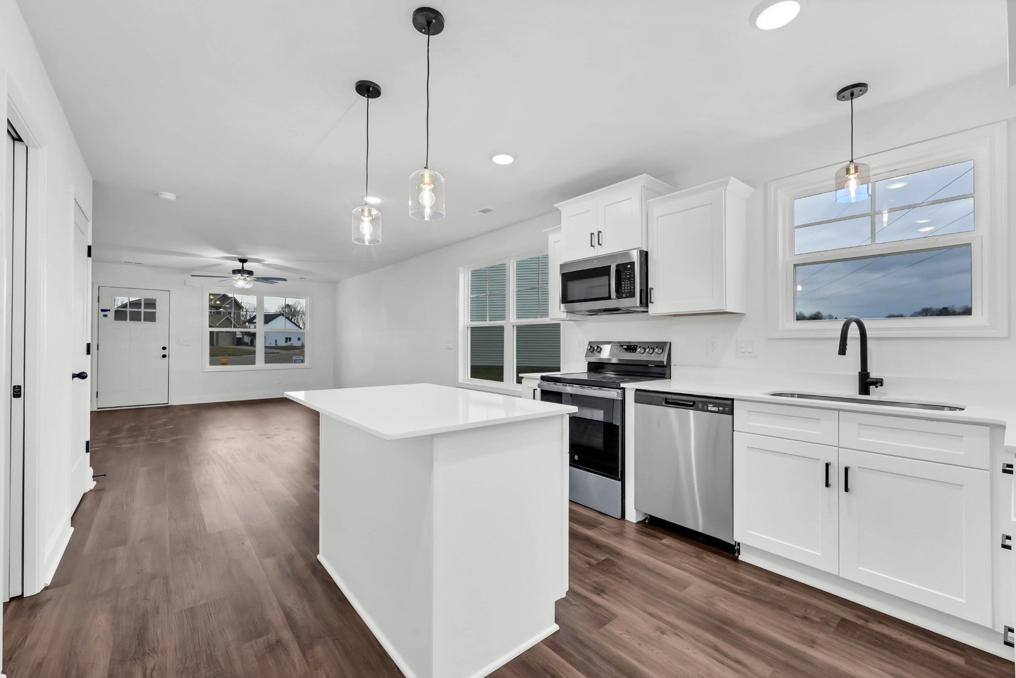 Welcome home to The Quarry—a NEW community conveniently located just off Dunbar Cave Road near Wilma Rudolph and the Rossview area of Clarksville. This gorgeous floor plan offers a modern design, excellent use of space, and beautiful finishes throughout. Step inside to an inviting open-concept living area featuring LVT flooring, and a seamless flow into the dining area and kitchen. The kitchen includes white cabinetry, granite countertops, and stainless steel appliances. The primary suite on the main level features a walk-in closet, full bathroom, and luxurious walk-in tile shower, and dual vanities. Upstairs, enjoy two oversized bedrooms, a full bath with tile flooring, and a walk-in attic for easy access. Relax on your covered back patio, perfect for grilling or enjoying the beautiful sunsets over this unique community with lovely views, underground utilities, and street lamps. Located in the highly desired Rossview School District and just minutes from Dunbar Cave State Park, APSU, Downtown Clarksville, the mall, restaurants, winery, shopping, two golf courses, and the City Forum entertainment complex. Only 20 minutes to Fort Campbell and 55 minutes to Nashville. A must-see home!