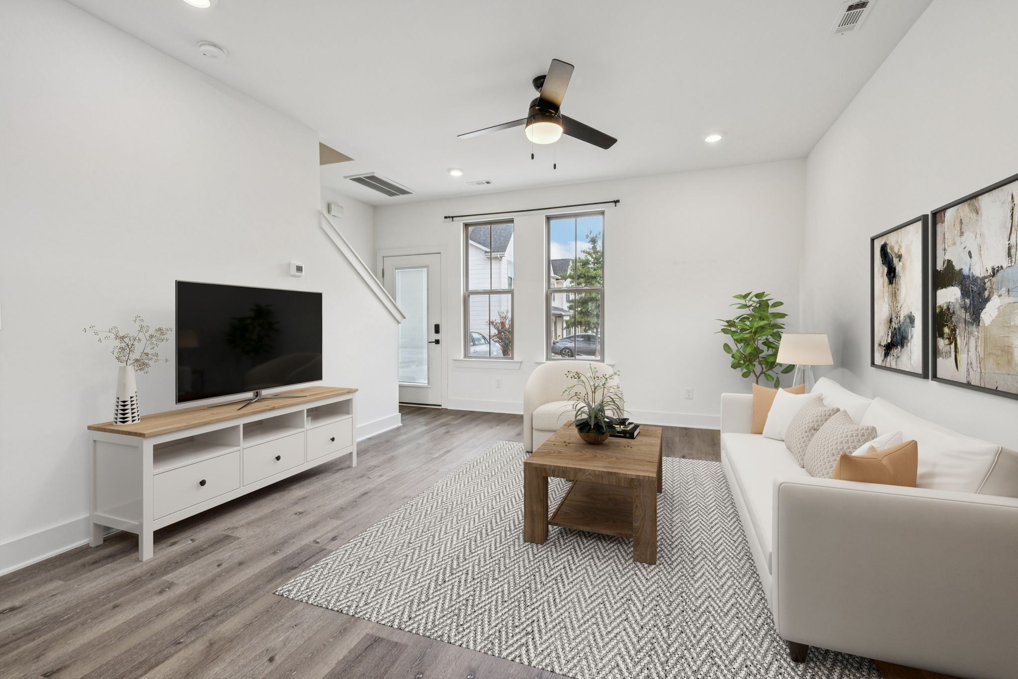 This 2021-built 2-level townhome is the perfect mix of style, comfort, and convenience—just minutes from Downtown Nashville, The Gulch, Geodis Park, and 12 South. Step inside to find a bright and airy open-concept living space with modern finishes, hardwood floors, and natural light pouring into every room. The kitchen is sleek and functional, and there's a private green space out back—perfect for your morning coffee or letting your pup play. Upstairs, you’ll love the spacious bedroom suite featuring not one, but two closets and a stylish en-suite bath. With no neighbors above you, you’ll enjoy peaceful mornings and quiet nights. Whether you're buying your first home or looking for an investment, this one checks all the boxes. 6+ month leases allowed (no waitlist)!! Some photos have virtual renderings to show the best use of space.
