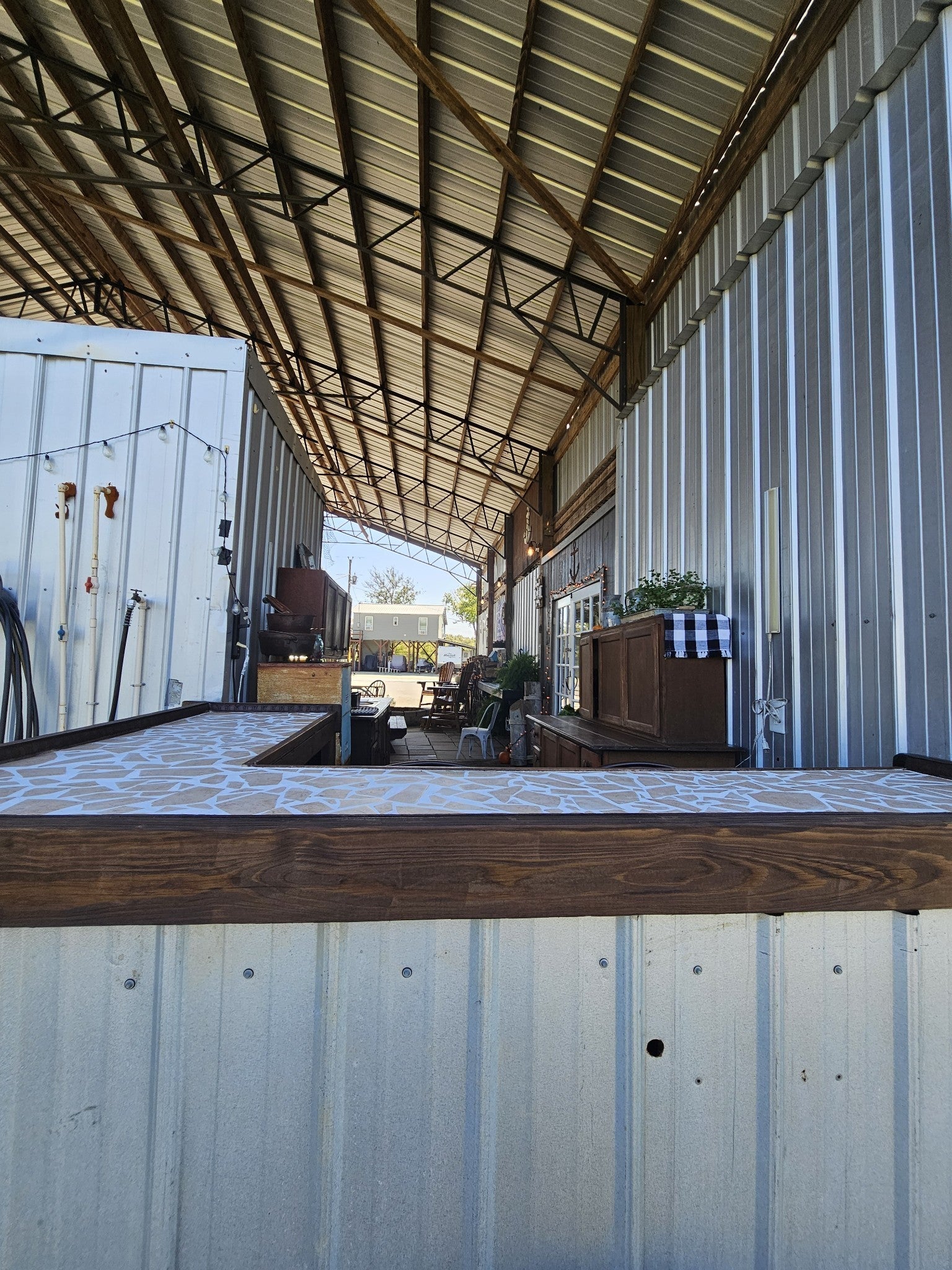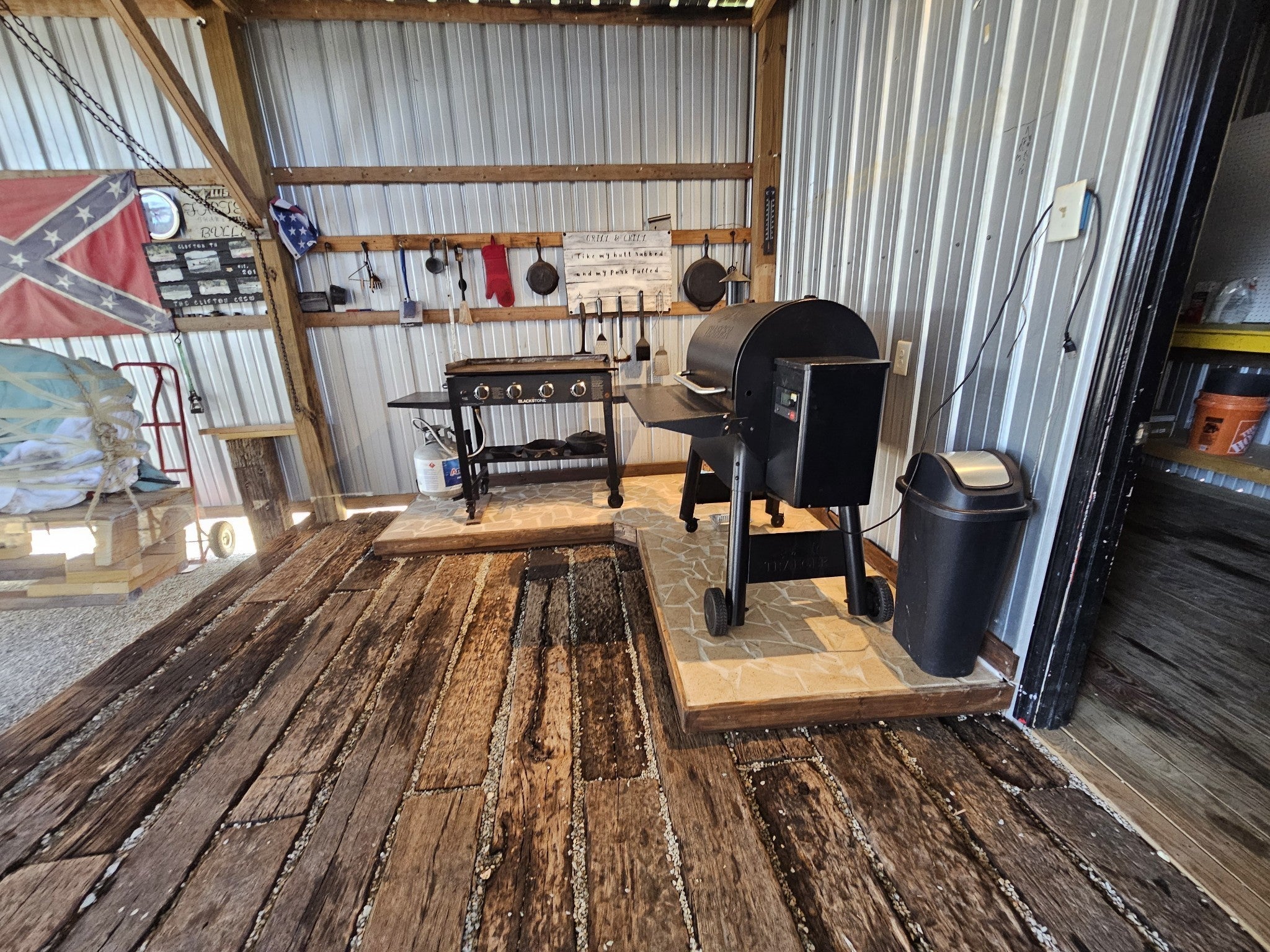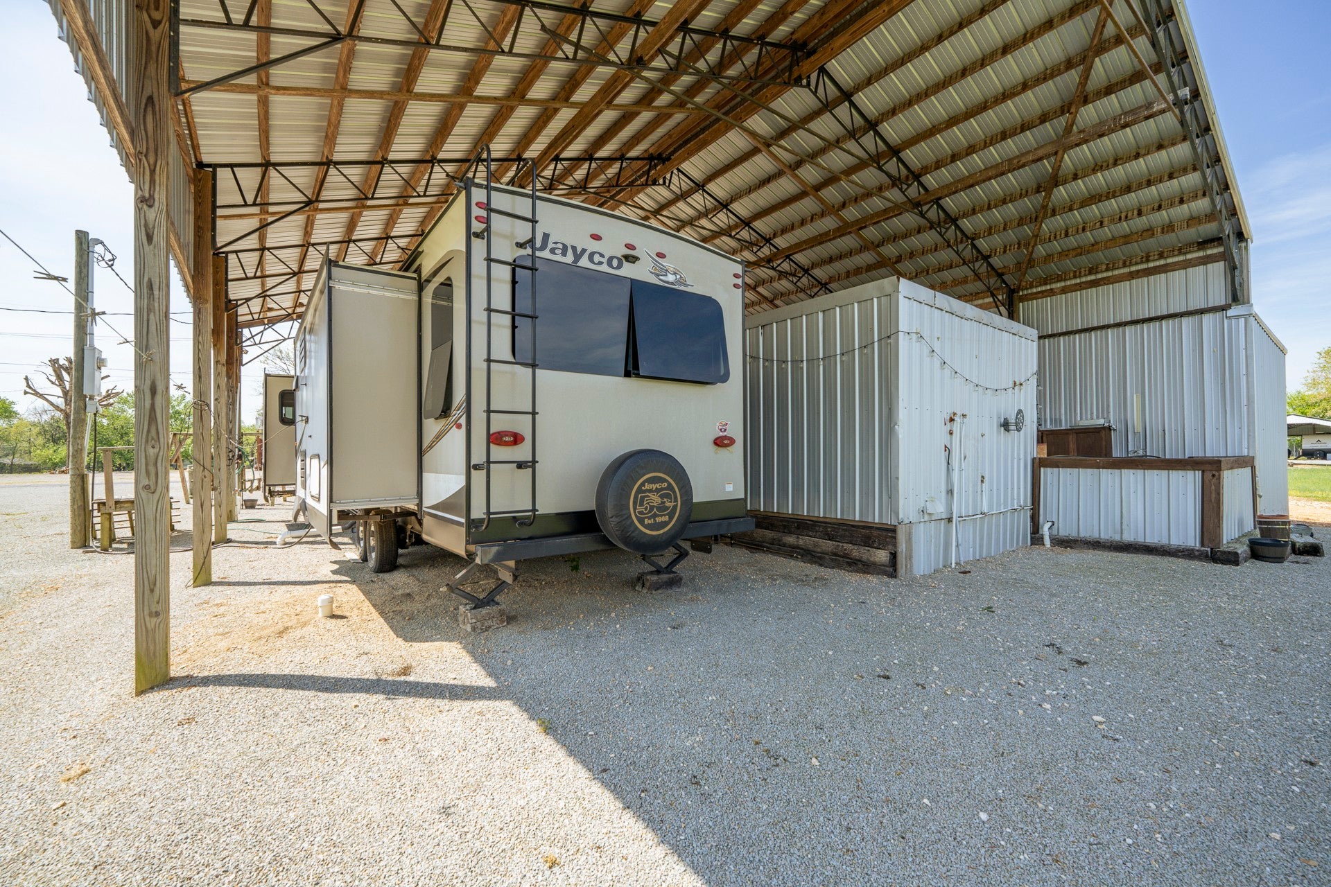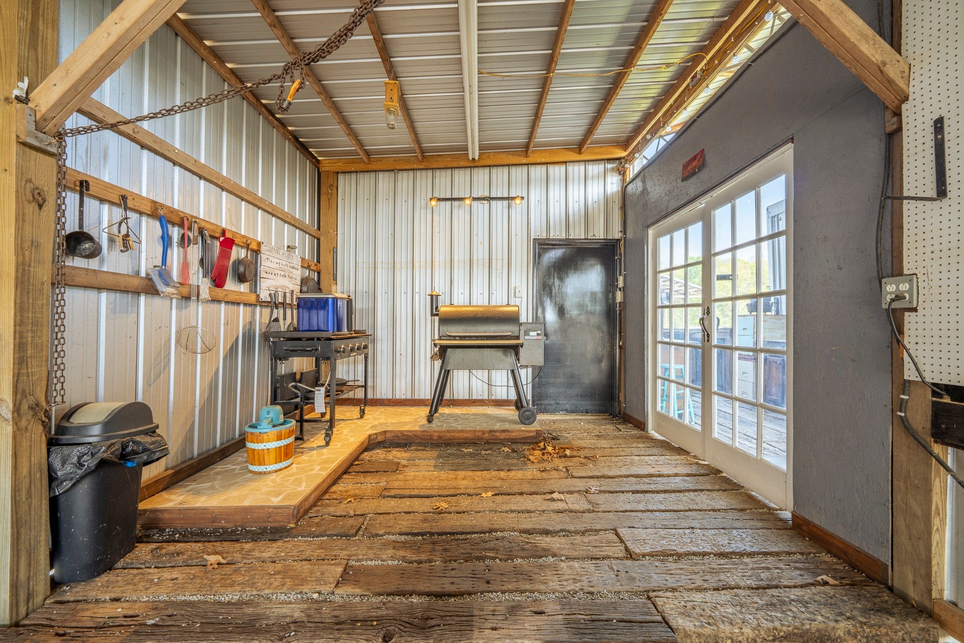 One of a kind property built on 2 lots ! Outdoor living at it's best with 2600 sq ft under roof! House your RV with a full size outdoor kitchen plus a bar area, enclosed laundry and full bath, and a workshop/garage area with an air compressor! Additional carport cover for another vehicle. Privacy galore and tastefully decorated with a river view! The seller incorporated 100 yr old barn wood and metal plus railroad ties and French doors for a rustic style. Cook, grill, watch TV, tinker with your car, ATV or boat, hang out at the bar or host a party all under one roof! Beechview is a highly popular gated community on the TN River halfway between Nashville and Memphis. Close to golf and marinas. City water and paved roads. Furniture is included with the price. This one is move in ready! Camper is not included in the listing price but can be purchased outside of real estate.