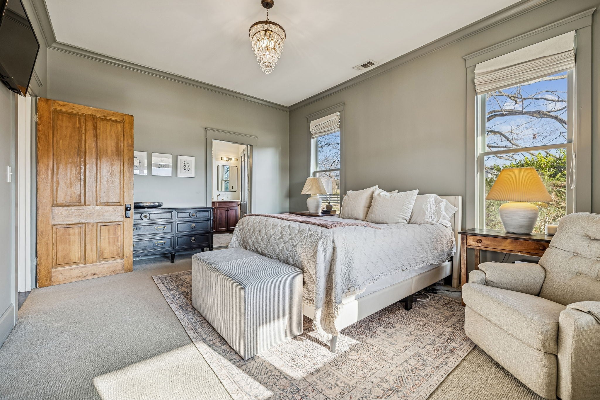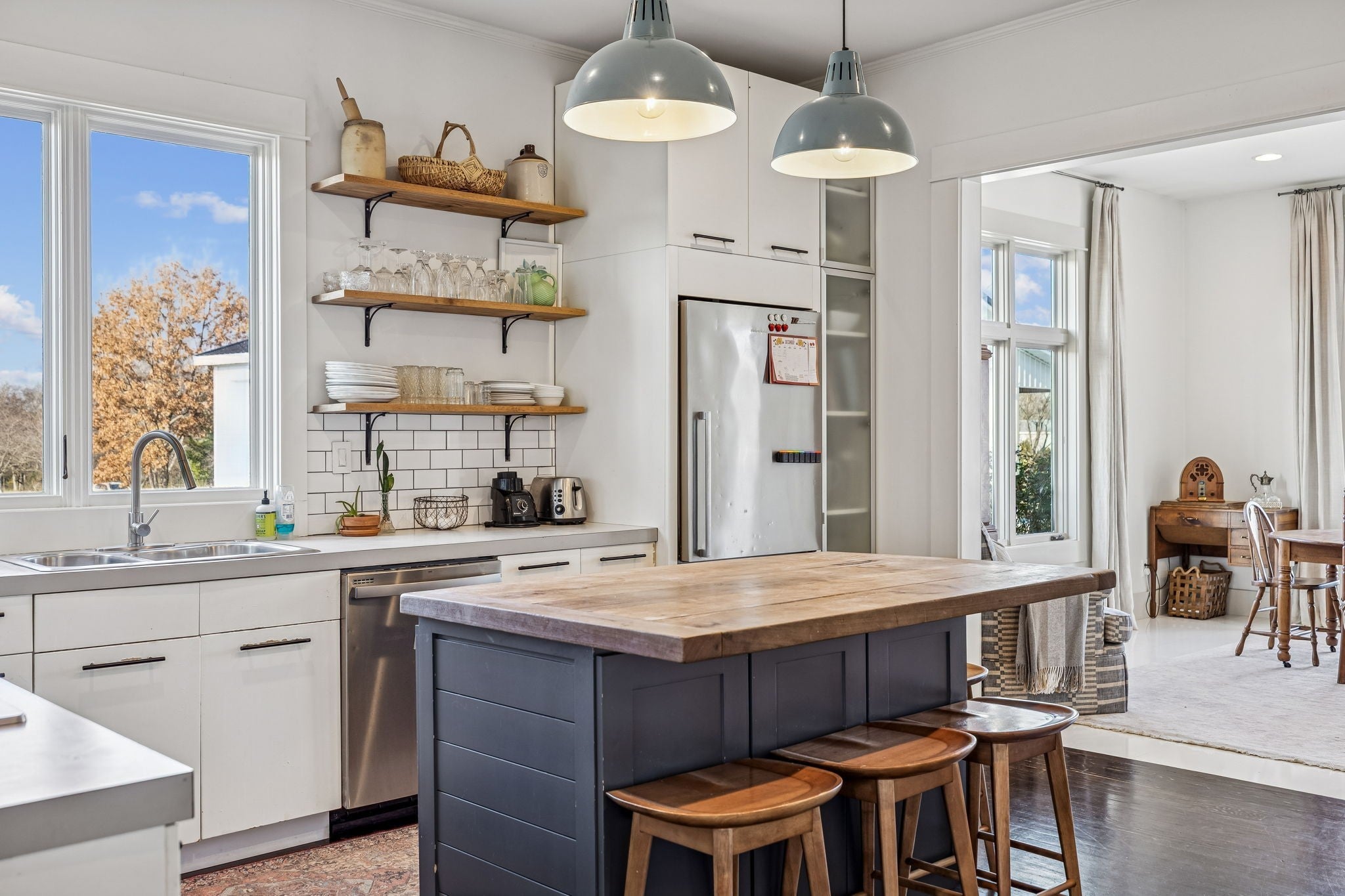 Experience the charm of country living in this beautifully renovated Franklin farmhouse, set on two flat, picture-perfect acres with no HOA and just minutes from downtown Franklin, College Grove, Interstate 840, and Page High and Middle. Inside, refinished hardwoods, original doors, and handcrafted built-ins add warmth and character, while the open, light-filled kitchen and dining area feature stainless appliances, a butcher-block island, and an easy, timeless flow. A gas fireplace anchors the living room, and outdoor living includes a screened-in space and a wide front sitting area that catches the afternoon light. Major updates include a recently replaced septic system, new HVAC, and a newly poured concrete driveway. A spacious detached building and an additional shed with its own window AC unit offer flexible storage or workspace, all while the home’s thoughtful renovations preserve its historic charm.