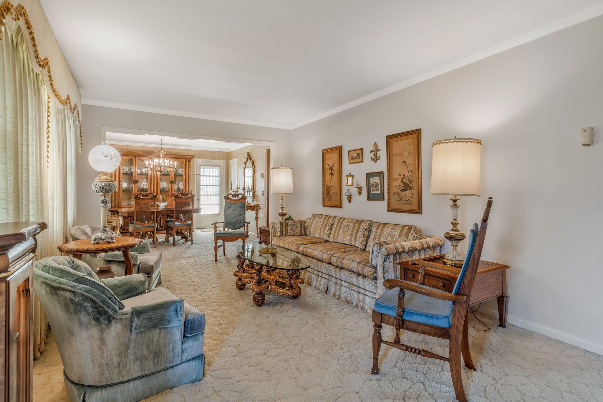 This is a meticulously maintained, move-in-ready gem nestled in the highly sought-after Madison area neighborhood. Offered for sale for the first time in seven decades, this cherished property has been lovingly held and maintained by the same family. The home proudly showcases its rich history with exceptional vintage built-ins and period details preserved in outstanding, original condition, offering timeless character. Further enhancing the home's value is the spacious, unfinished basement. The layout is designed for versatile entertaining, featuring multiple gathering areas: a spacious formal living room and a cozy informal space. The informal area is perfect for casual evenings, anchored by a gas lite fireplace and serviced by a convenient, nearby kitchenette. Currently configured as a functional workshop and sewing area, this area includes a full bathroom and is primed for future internal expansion, whether you dream of a home gym, recreation room, or additional personalized living space. Sited on a beautifully manicured, expansive over one acre lot, the exterior is equally impressive.