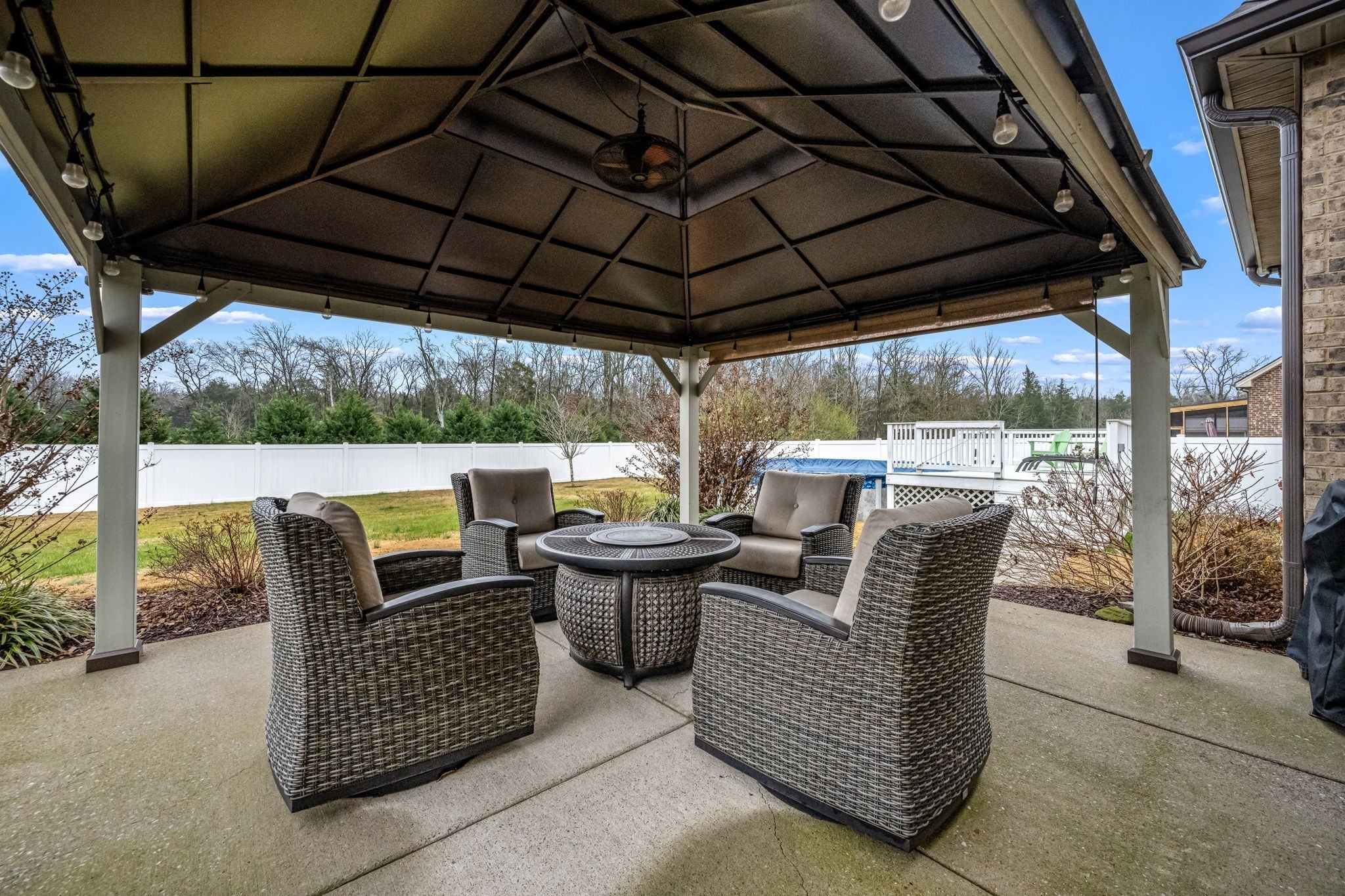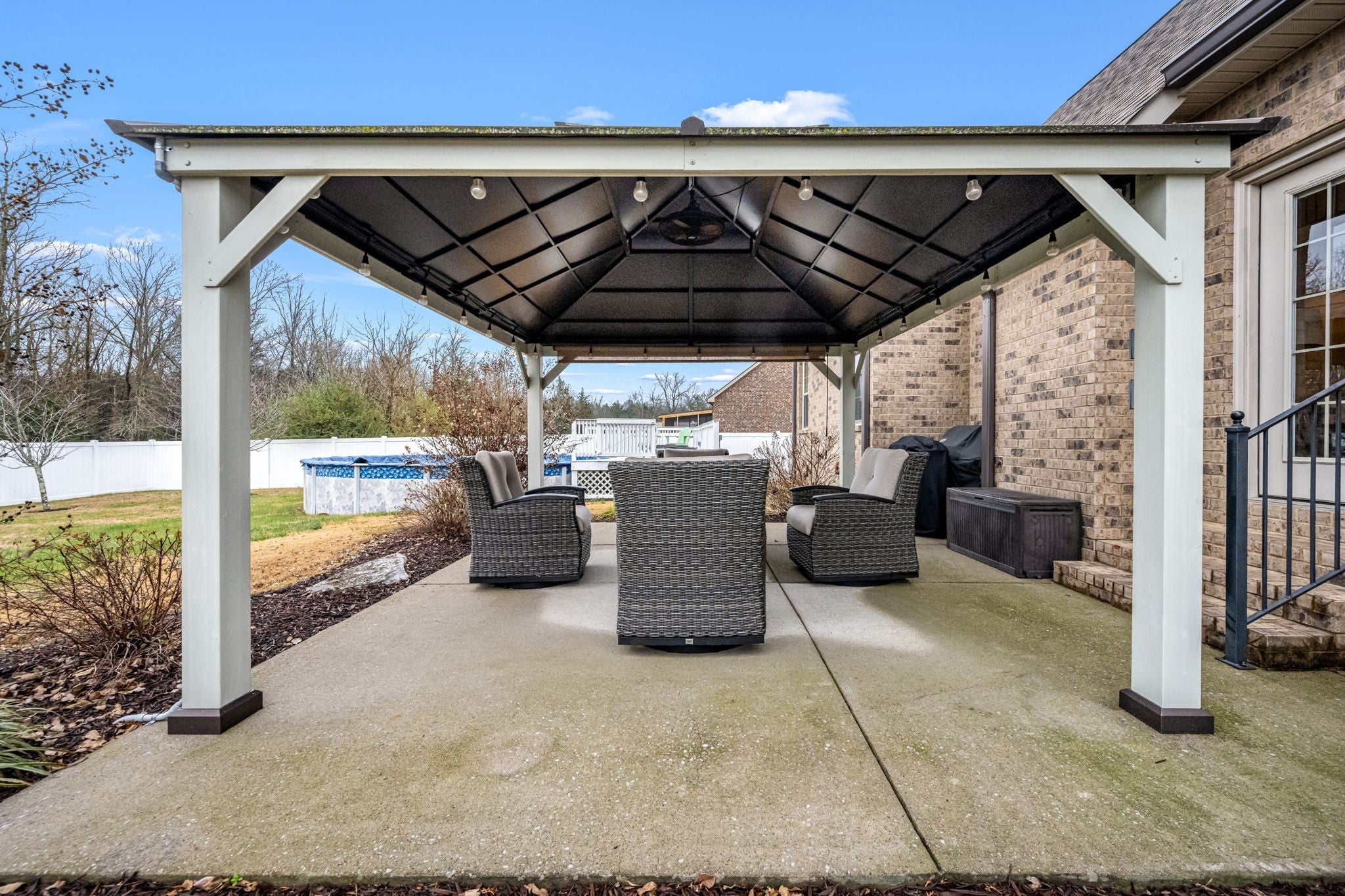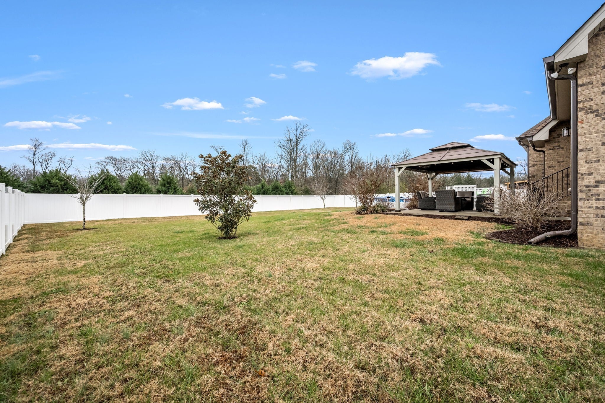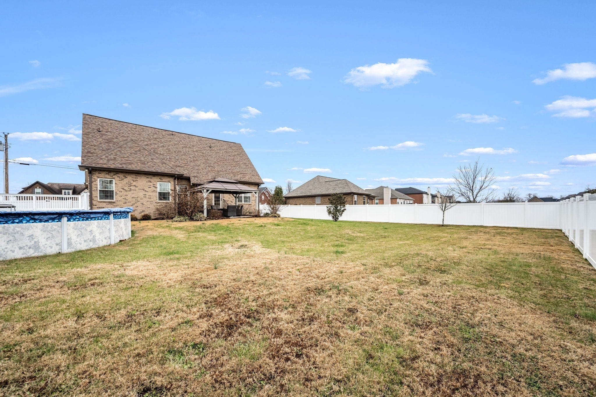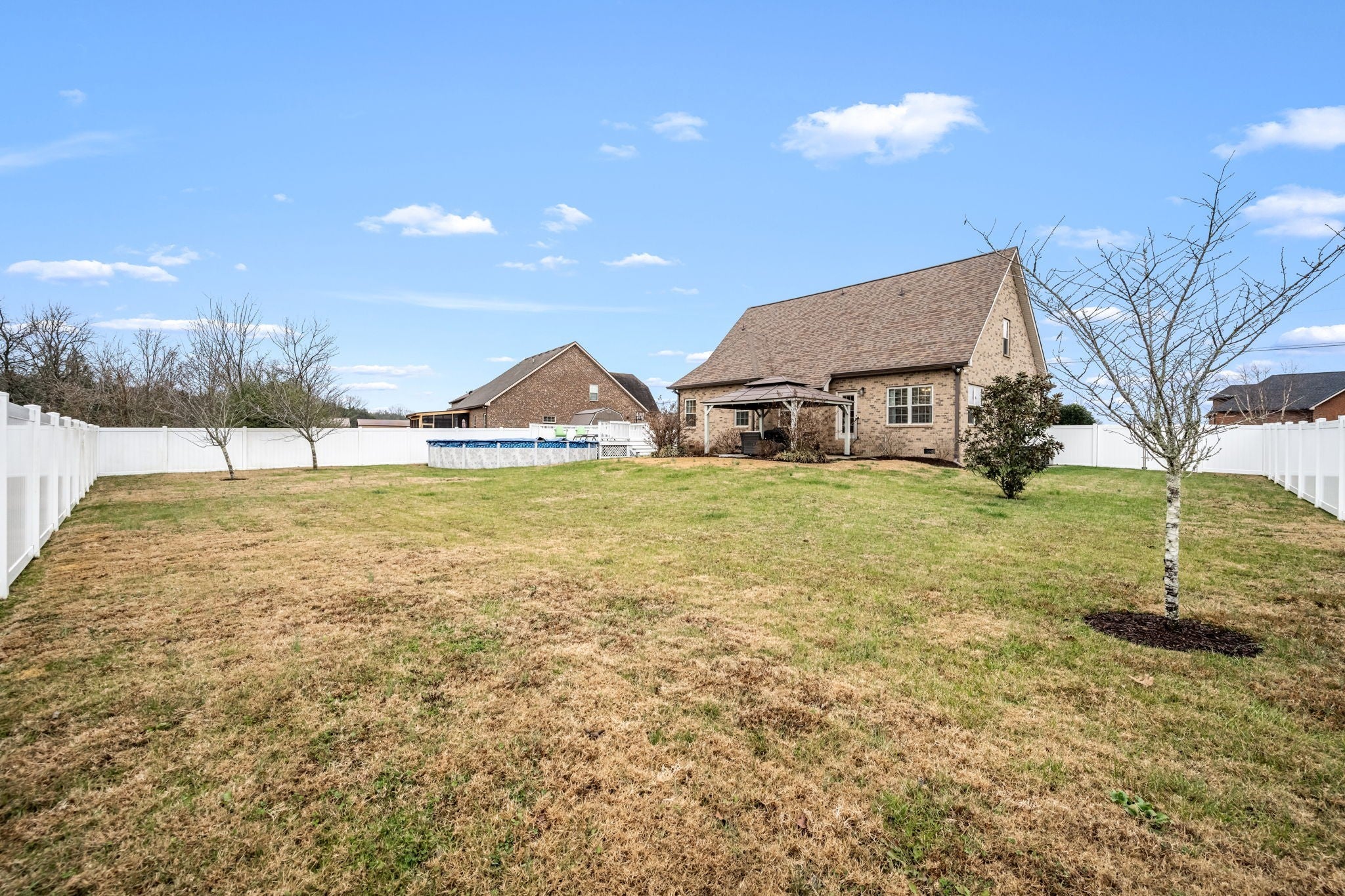 Step inside to a spacious layout featuring a primary suite on the main level, a cozy living room with a fireplace, and an inviting kitchen with a brand-new refrigerator and dishwasher. The home has been meticulously maintained with major updates already complete, including a new roof and gutters, plus an HVAC system replaced in 2023. Outside is where this home truly shines. Enjoy your own backyard retreat with an above-ground pool featuring a new liner installed this year, a pergola-covered entertainment area, and a fully fenced yard offering great privacy—ideal for gatherings, relaxing evenings, or letting pets and kids play freely. With its solid construction, valuable upgrades, and a peaceful setting on a spacious lot, this home is the perfect blend of comfort and convenience. Move-in ready and easy to love!