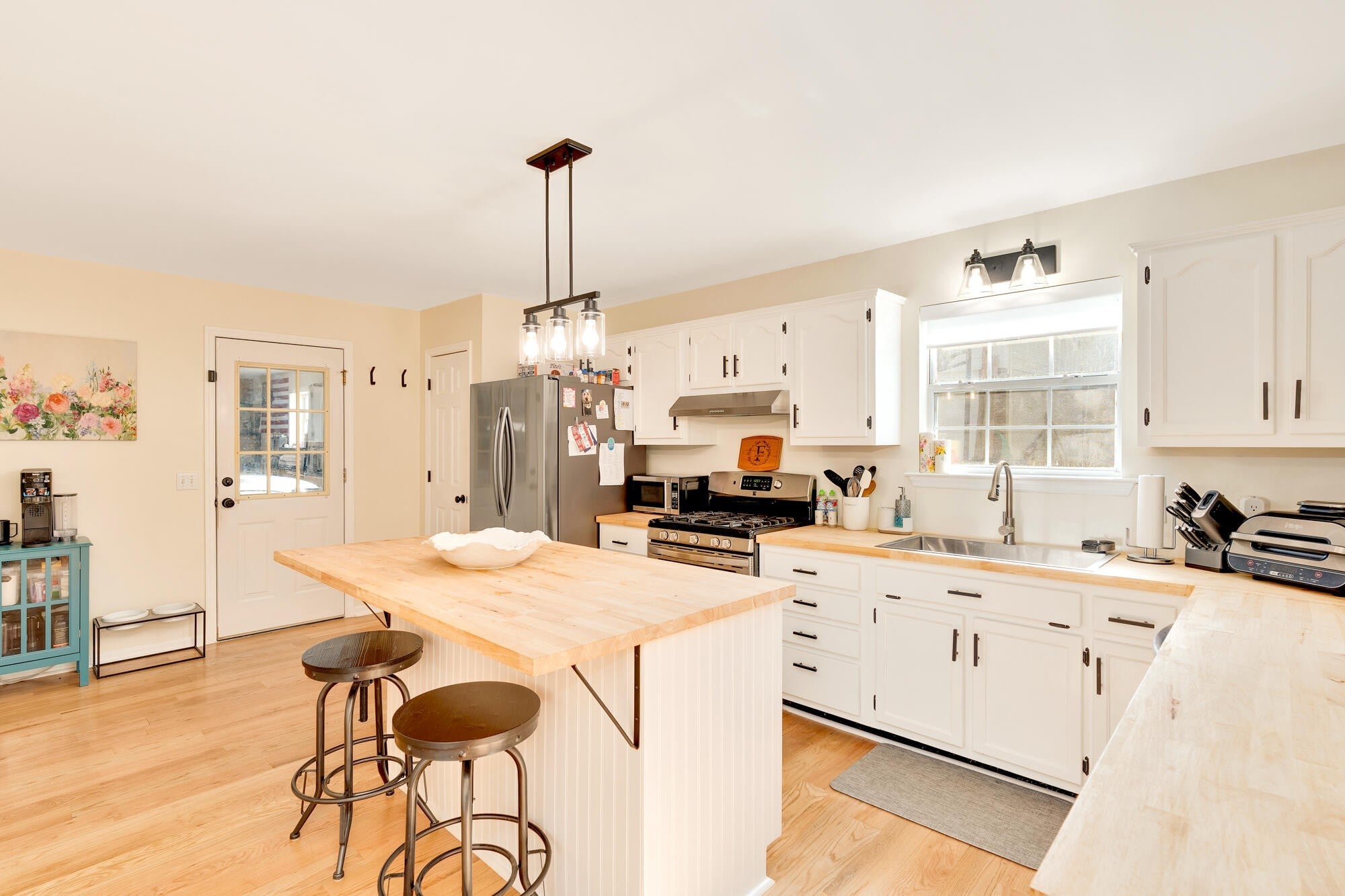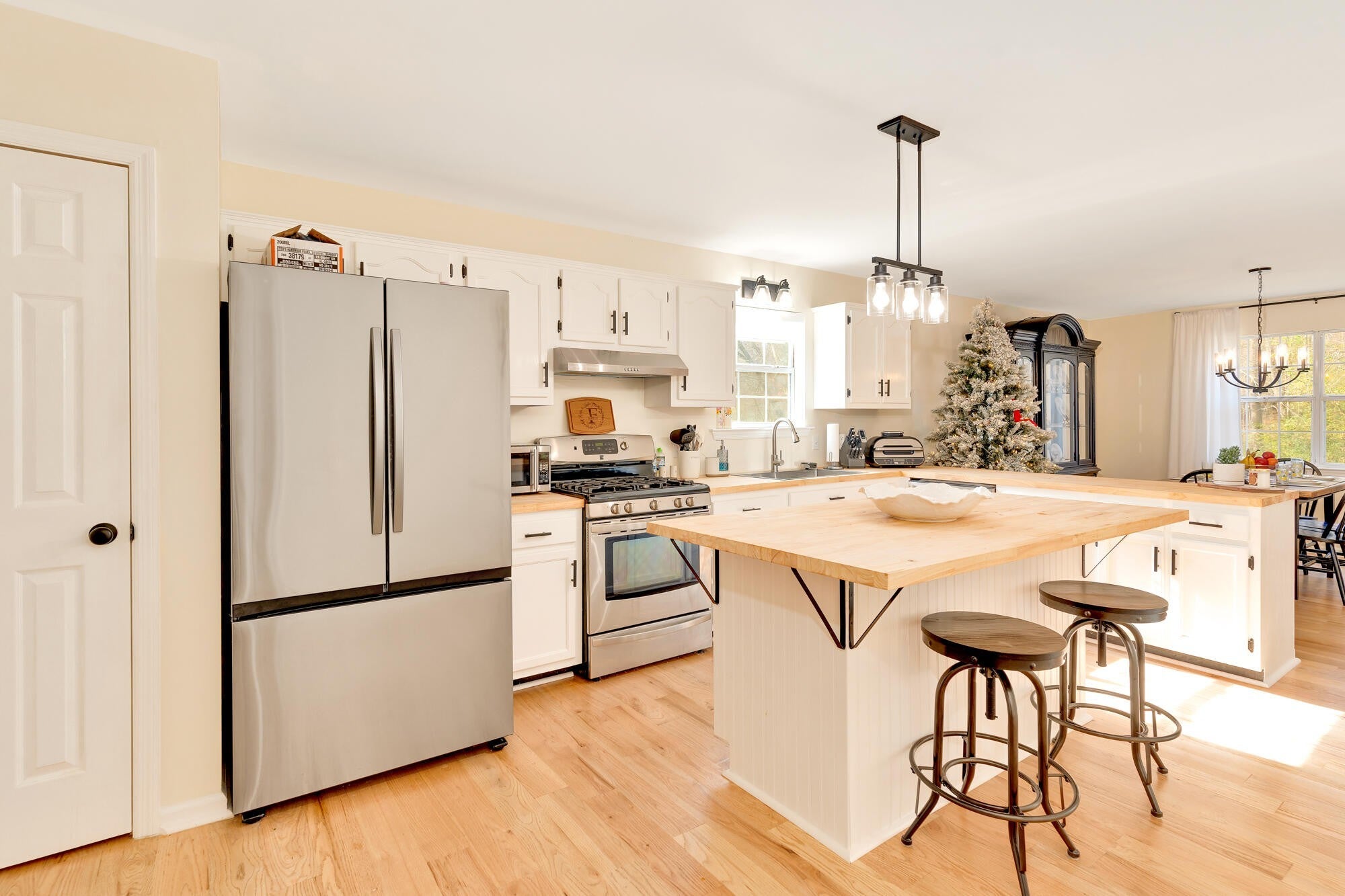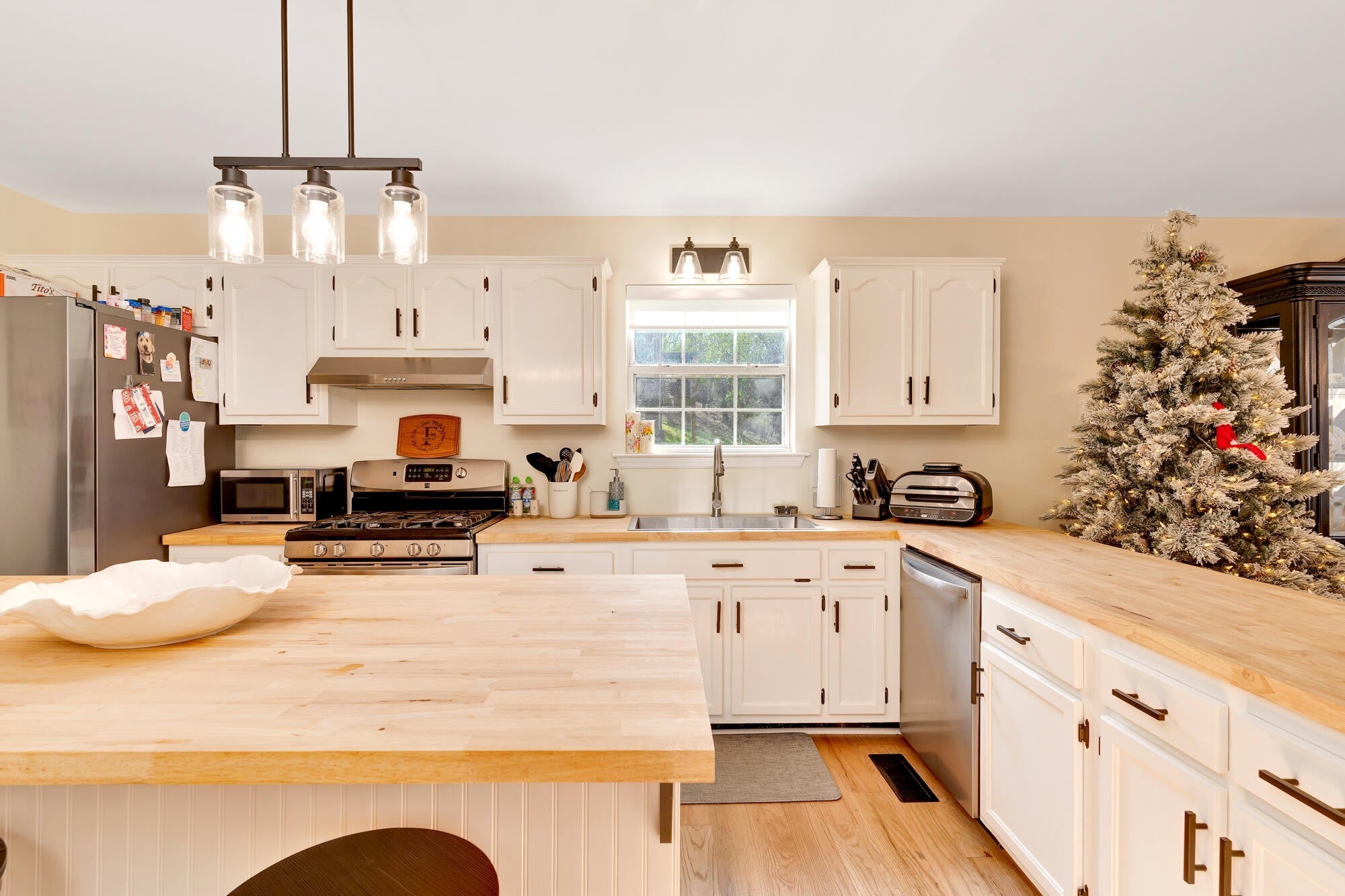 Discover this beautifully updated one-level 3-bedroom, 2-bath home offering modern upgrades, comfortable living spaces, and a large private lot—perfect for anyone seeking convenience and move-in-ready style. Step inside to find brand-new real hardwood flooring, fresh finishes, and thoughtfully planned updates throughout. The newly renovated kitchen features modern countertops, and stylish fixtures—making meal prep effortless. Both bathrooms have been refreshed, including a redesigned guest bath with a new vanity, toilet, and flooring. The primary suite provides a quiet retreat, while the additional bedrooms offer versatility for guests, office space, or hobbies. Additional upgrades include new light fixtures throughout, a new water heater, updated laundry room with new cabinets and flooring, and the removal of popcorn ceilings for a clean, modern look. Outside, the spacious and private lot offers room to play, garden, entertain, or simply relax. With valuable updates already completed, this home is truly move-in ready and designed for low-maintenance living. Schedule your showing today and experience comfort, convenience, and style in one perfect package.