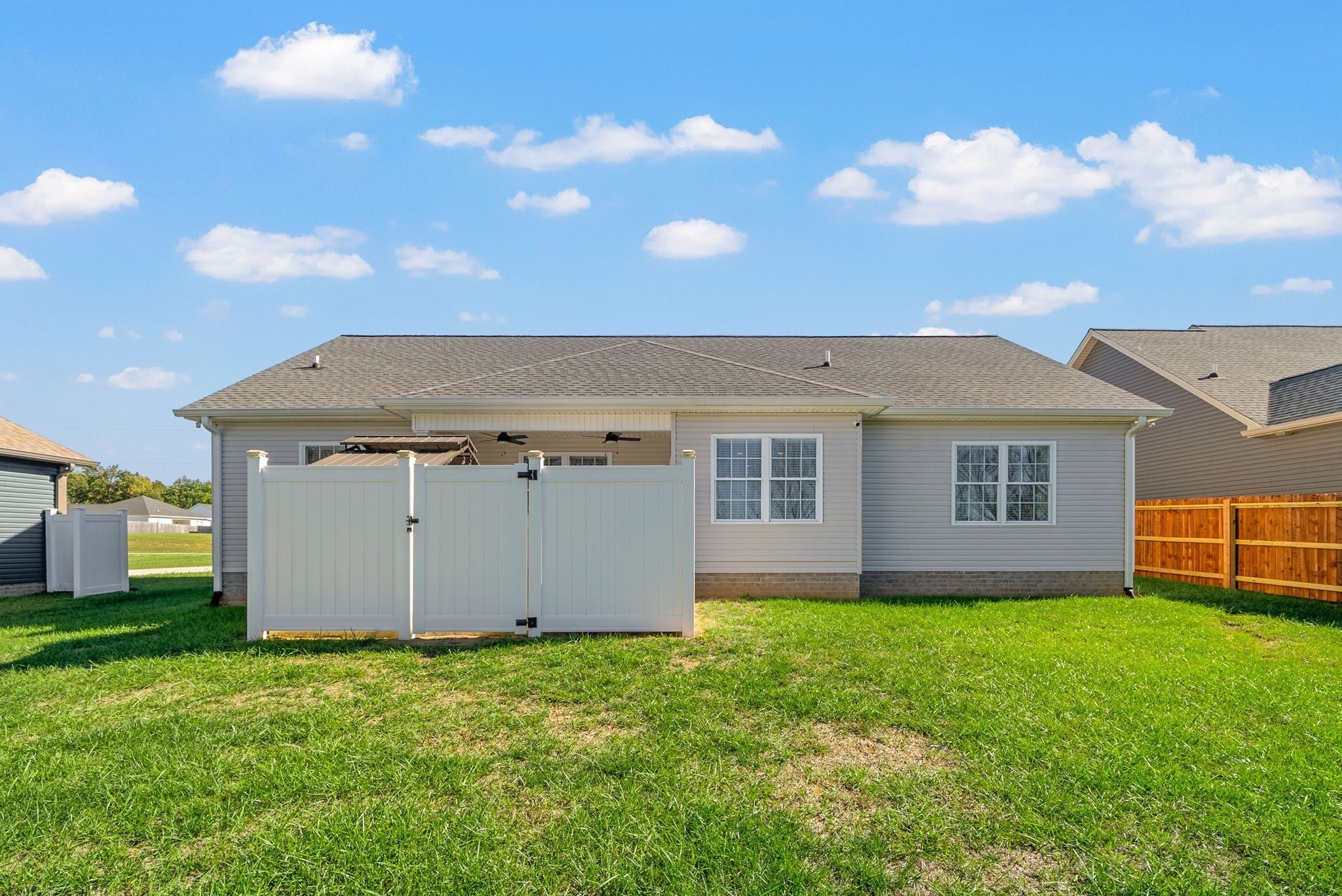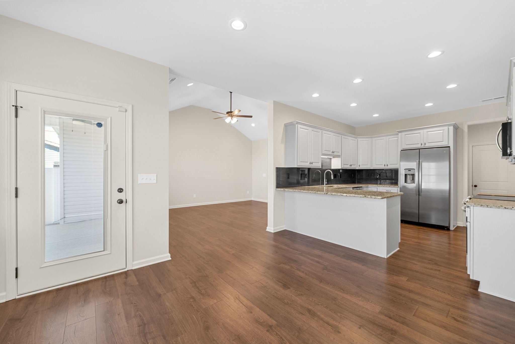 This stunning semi custom home was built in 2022.offers spacious living areas accented by vaulted ceilings and abundant natural lighting. It features an open concept with a split floor plan. Storage is not a concern here with plenty of closets & cabinetry. Kitchen and laundry pantries provide added space. Granite countertops and backsplash in kitchen with new stainless steel appliances(2025). Most living area has LVP flooring. Bathrooms and laundry room have tiled floors. Long driveway offers plenty of parking. Both front and back porches are covered and offer peaceful sitting any time of the season. Security cameras and sensors offer added peace of mind. This home is as practical as it is beautiful. This is it, make it your home!