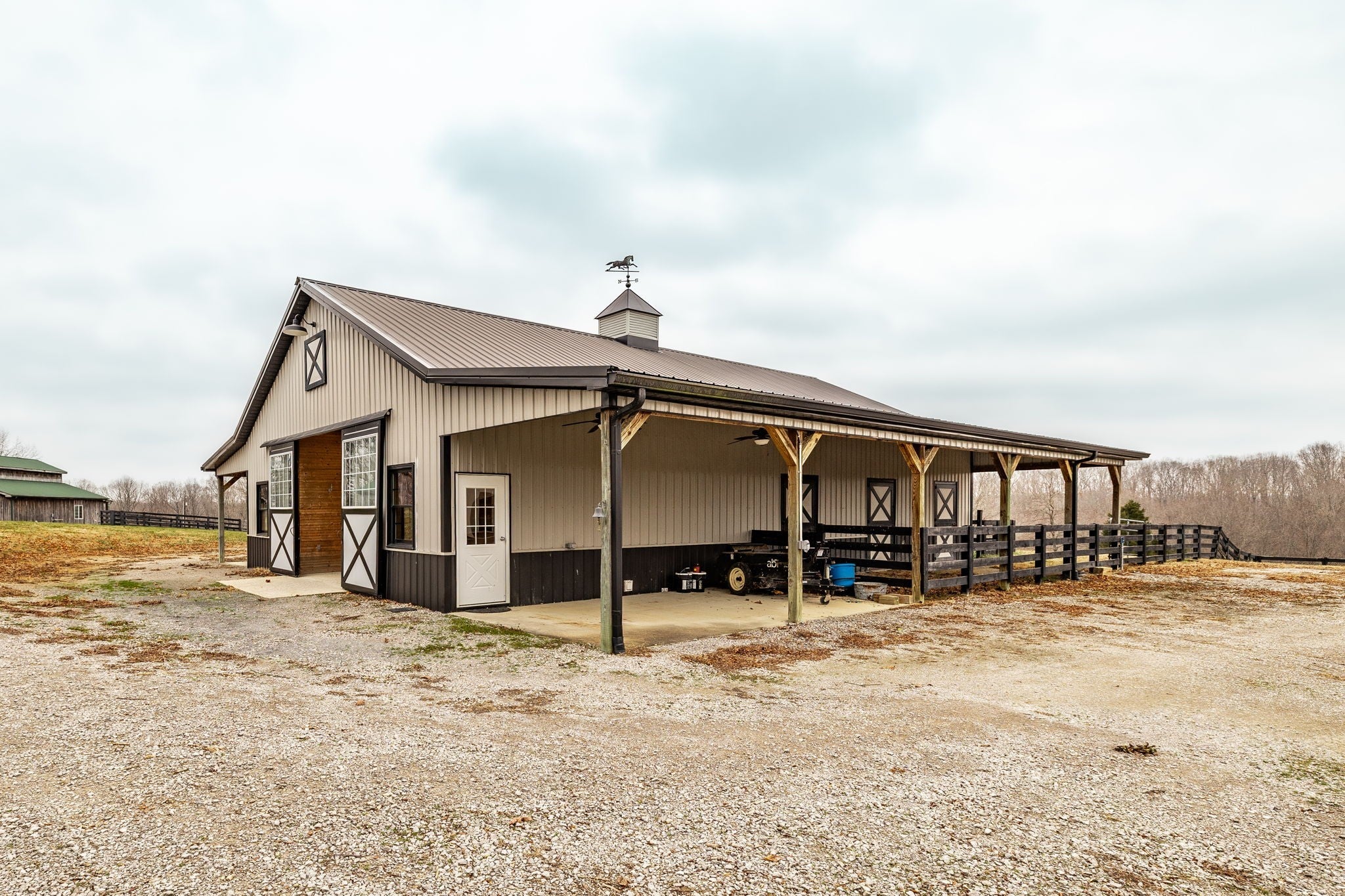 Welcome Home! This stunning 48 acre equestrian estate in the heart of Williamson County has everything you've dreamed of. This property boasts a 6 stall custom equestrian barn, 2 homes, a large heated/cooled shop and multiple storage barns.Whether you're running a full-time equestrian business or enjoying horses as a hobby, this property is ready to go Day 1. The main house offers over 3500 square feet of elegance and relaxation. Enjoy top tier Thermador appliances throughout the kitchen along with newly installed countertops and backsplash. The master suite is truly a retreat with its wood-burning fireplace and spa-like master ensuite. Downstairs offers 2 en-suites while upstairs has an additional bedroom plus the newly added bunk room for guests or the kids! The 2100 square foot guest barn is equipped with full kitchen, bath, laundry, gym, office and a complete top floor bedroom. Horse barn is a center aisle, 6 stall barn complete with wash, stall, tack and feed room. Also has laundry set up in the horse barn. Property has a 30x50 workshop as well as 30x50 hay barn. Property also contains 12x24 run in shed for horses as well as a separate equipment barn to house farming equipment.