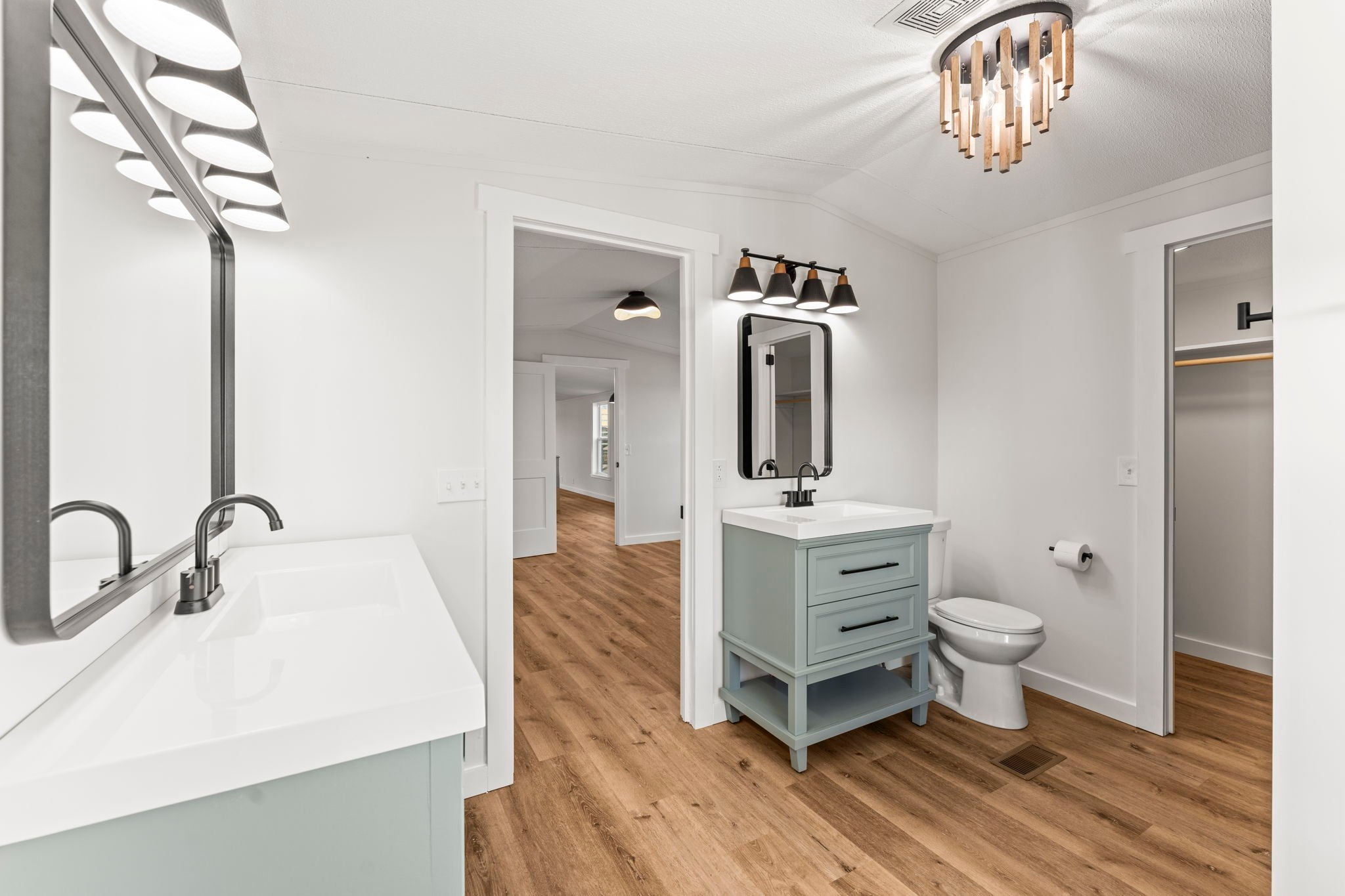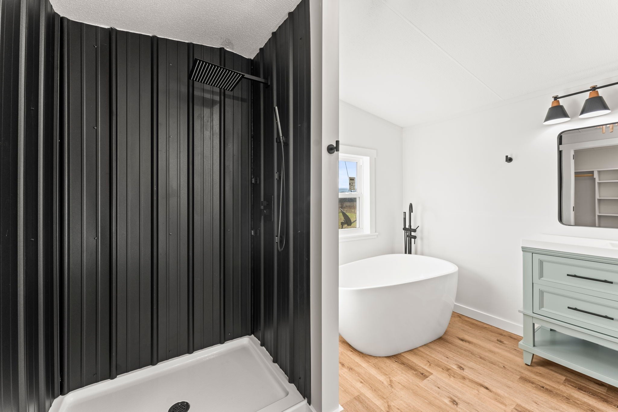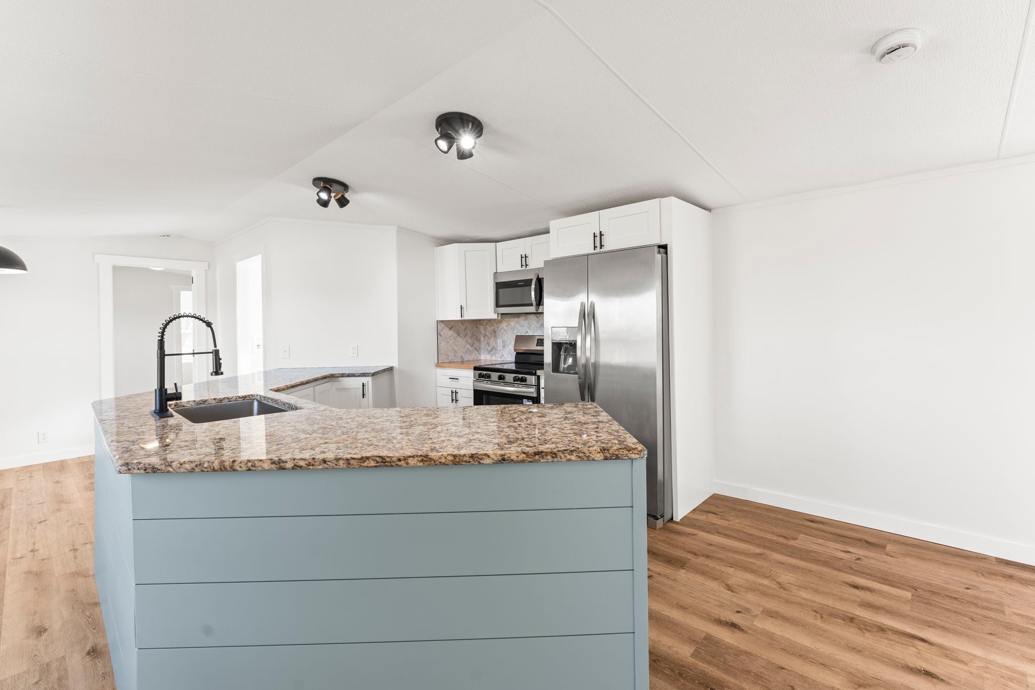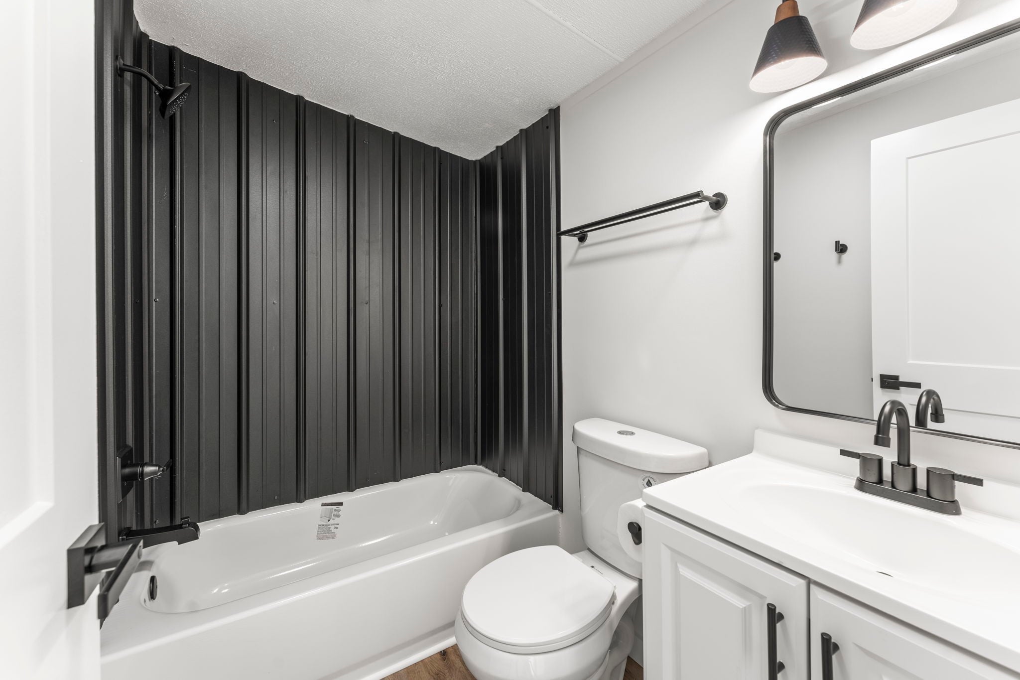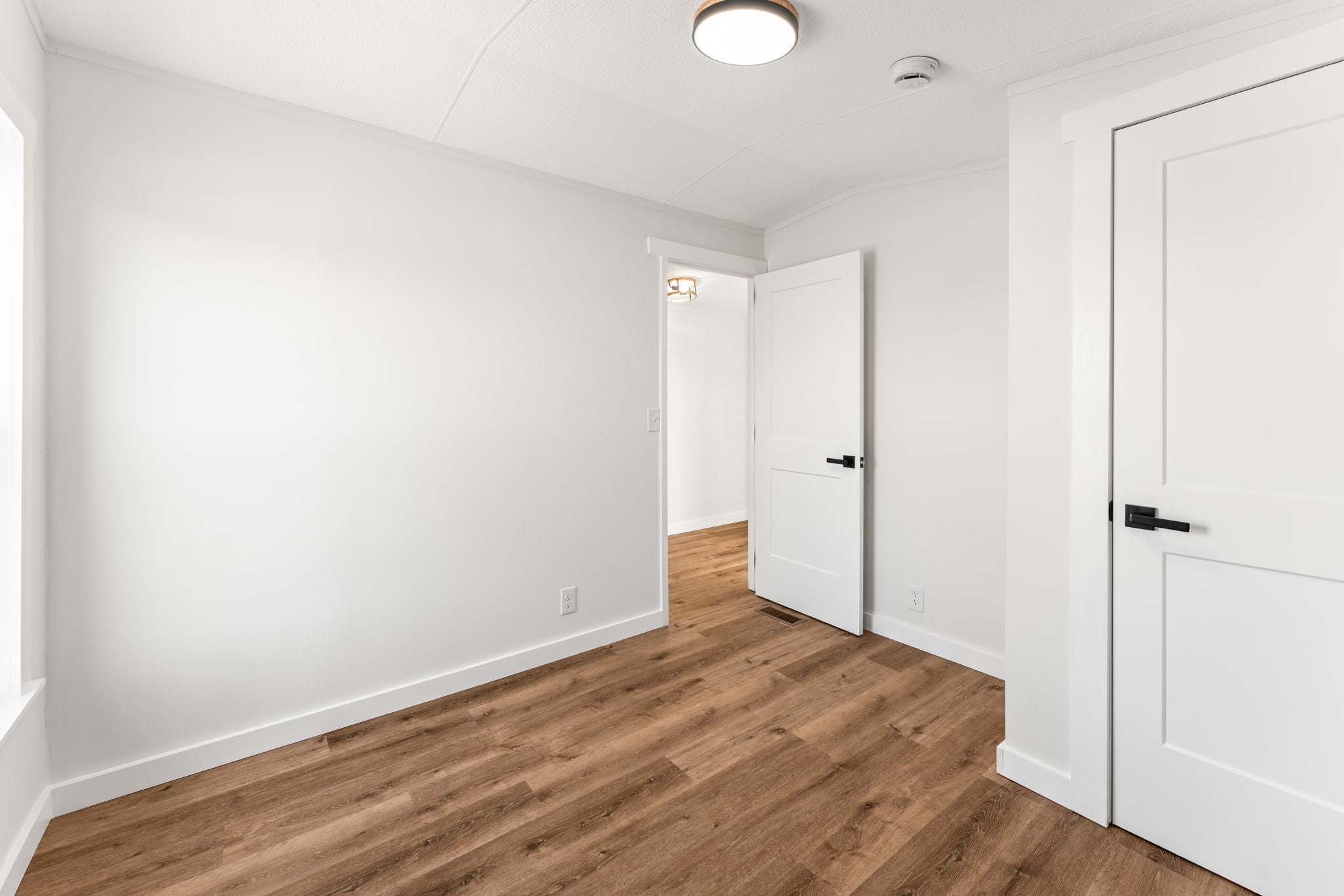 Completely re-done (EVERYTHING IS NEW!) [roof, siding, HVAC (efficient heat pump!!) windows, doors, floors, drywall, paint, flooring, trim, plumbing/elect fixtures, water heater, appliances etc!] Modern-farmhouse style, manufactured home on foundation (skirting over foundation) - wonderful location with beautiful views and desirable open and split floorplan (primary suite on one end, 2 bedrooms and bathroom at other end) Feels larger than the sq footage. Barn does not convey and is being remodeled to match style of house (black with nice wood accents) Buyer to verify anything important (schools, measurements, etc) Owner-agent. Priced to sell! You can't find anything nicer at this price. Must see to appreciate! Tax card does not reflect minor division. Property is .501 +/- acres (see survey in photos). Room to add shop in area between driveways!