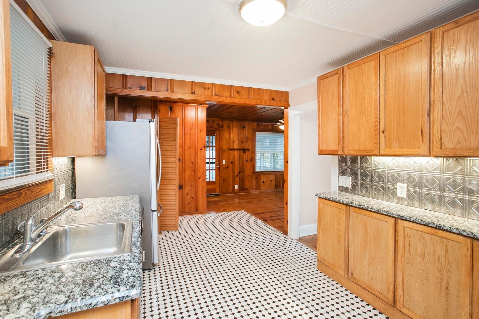 This beautifully remodeled historic Haskell Design house boasts modern amenities and stainless-steel appliances. It features three bedrooms, two bathrooms, a spacious living room, and a dining room. Located just one block from the lake, this property offers stunning views and is a must-see. The interior has been updated with tile finishes. Closed in sunroom on back of house.