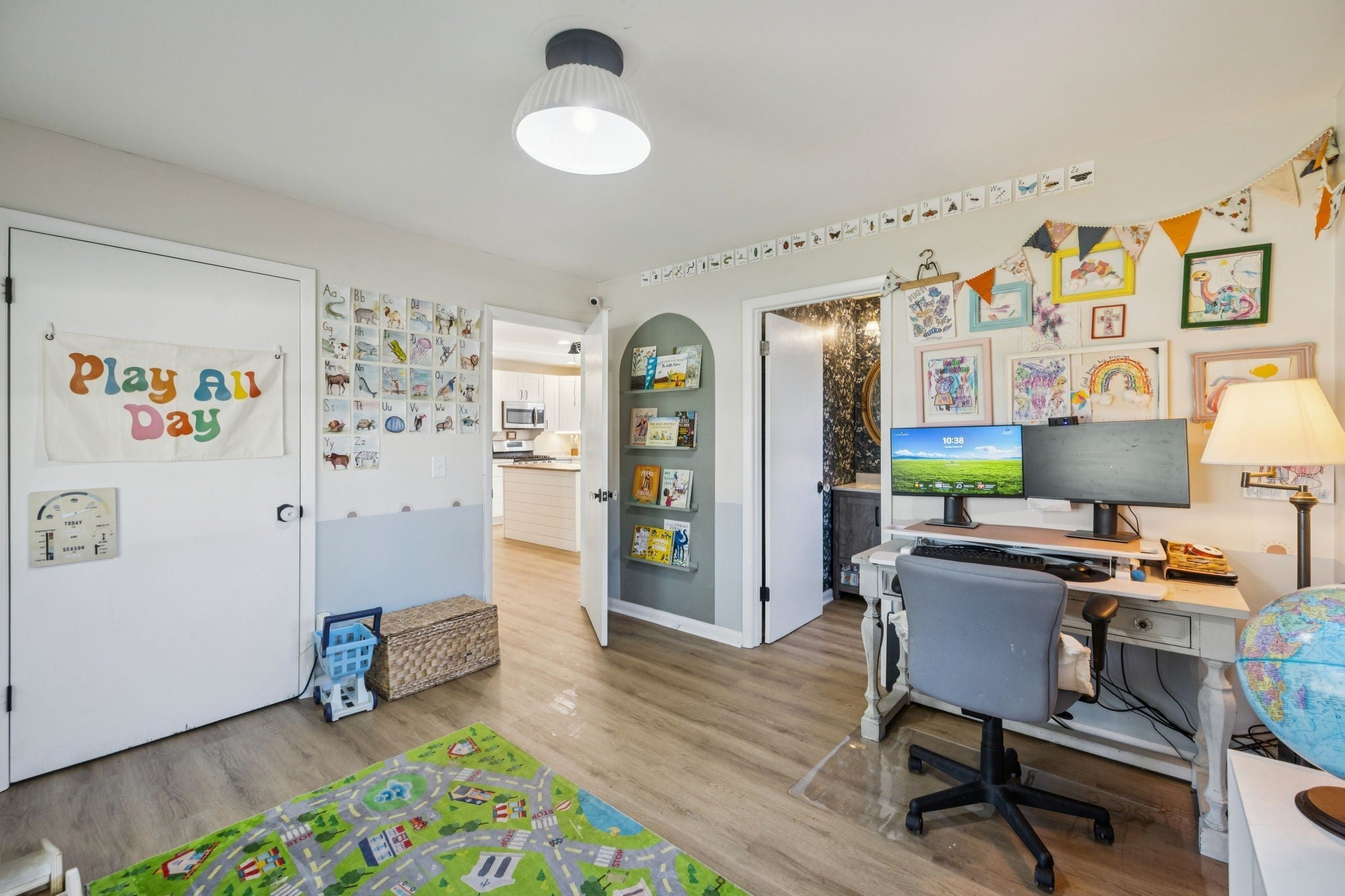 Welcome home! This 3-bedroom, 2-bath home has an inviting feel from the moment you walk in. Beautiful wood floors run throughout the entire home, paired with recessed lighting that adds the perfect modern touch. The eat-in kitchen features stainless steel appliances, a center island, and plenty of room for cooking and gathering. Each bedroom offers great space and comfort, and the primary suite includes double vanities and lots of storage! Step outside to a huge backyard with a deck that’s made for grilling, relaxing, or enjoying quiet evenings. Conveniently located near Detention @ the Elementary Amusement Center and Morrison Ruritan Ball Park is just across the street! You’ll have fun, food, and recreation just minutes from your door. This home blends style, comfort, and location in all the right ways, come see it for yourself!