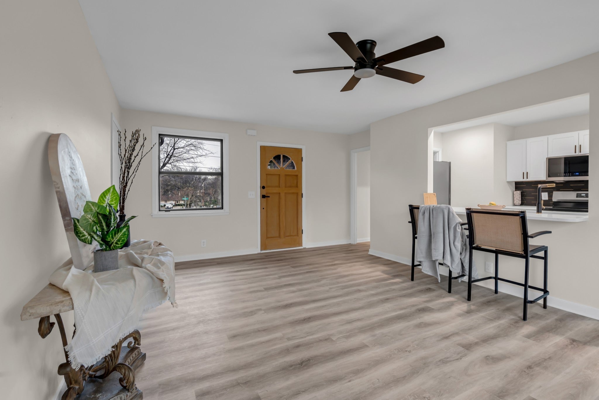 Donelson Delight: Fully Renovated & Ready to Impress! Step into this stunning, renovated residence that perfectly blends modern updates with timeless charm. Featuring 3 spacious bedrooms, a beautifully modernized full bathroom, and a convenient one-car garage to utilize for convenient parking or storage. This home is thoughtfully designed for comfortable living. The partially finished basement offers endless possibilities—whether you envision a home gym, office, playroom, tornado shelter, or extra storage space, it’s ready to adapt to your needs. As you arrive, you’ll be greeted by a bright, open living room filled with natural light streaming through brand-new double-pane windows. The luxury vinyl plank flooring throughout adds both elegance and durability, while fresh paint and stylish light fixtures create a welcoming atmosphere. The kitchen is a delight! Boasting new soft-close cabinets, a deep sink, and contemporary finishes that make meal prep a pleasure. The renovated bathroom features modern fixtures and a clean, sophisticated design. Every detail has been carefully considered, including new plumbing, electrical, HVAC system, and a water heater—ensuring peace of mind for years to come. Outside, relax on your private patio or enjoy the spacious backyard shaded by mature trees—perfect for entertaining, family gatherings, or quiet evenings. The exterior has been upgraded with a new 30-year roof, siding, soffits, fascia, and gutters, so you can move in worry-free. Just minutes away from Nashville International Airport (BNA) and Downtown Nashville with the option of commuter train from the Donelson Station. Enjoy local dining, retail and community parks just minutes away. This home is truly move-in ready, offering comfort, style, and reliability. Don’t miss your chance to make it yours and celebrate the holidays in a space you’ll love!