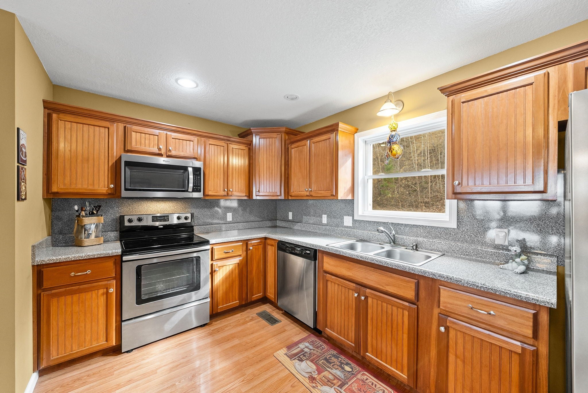 - Range, Dishwasher, Microwave, Refrigerator, Stainless Steel Appliance(s)