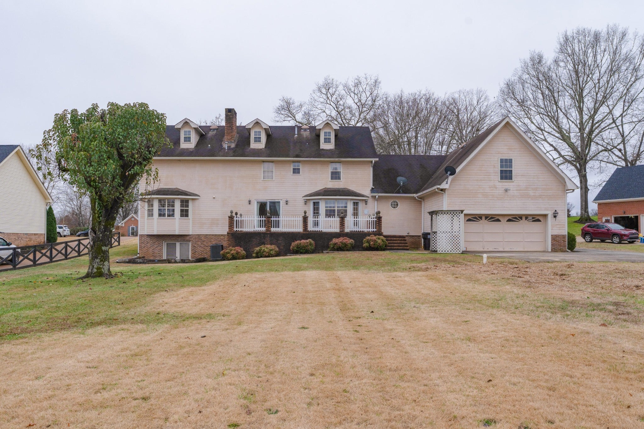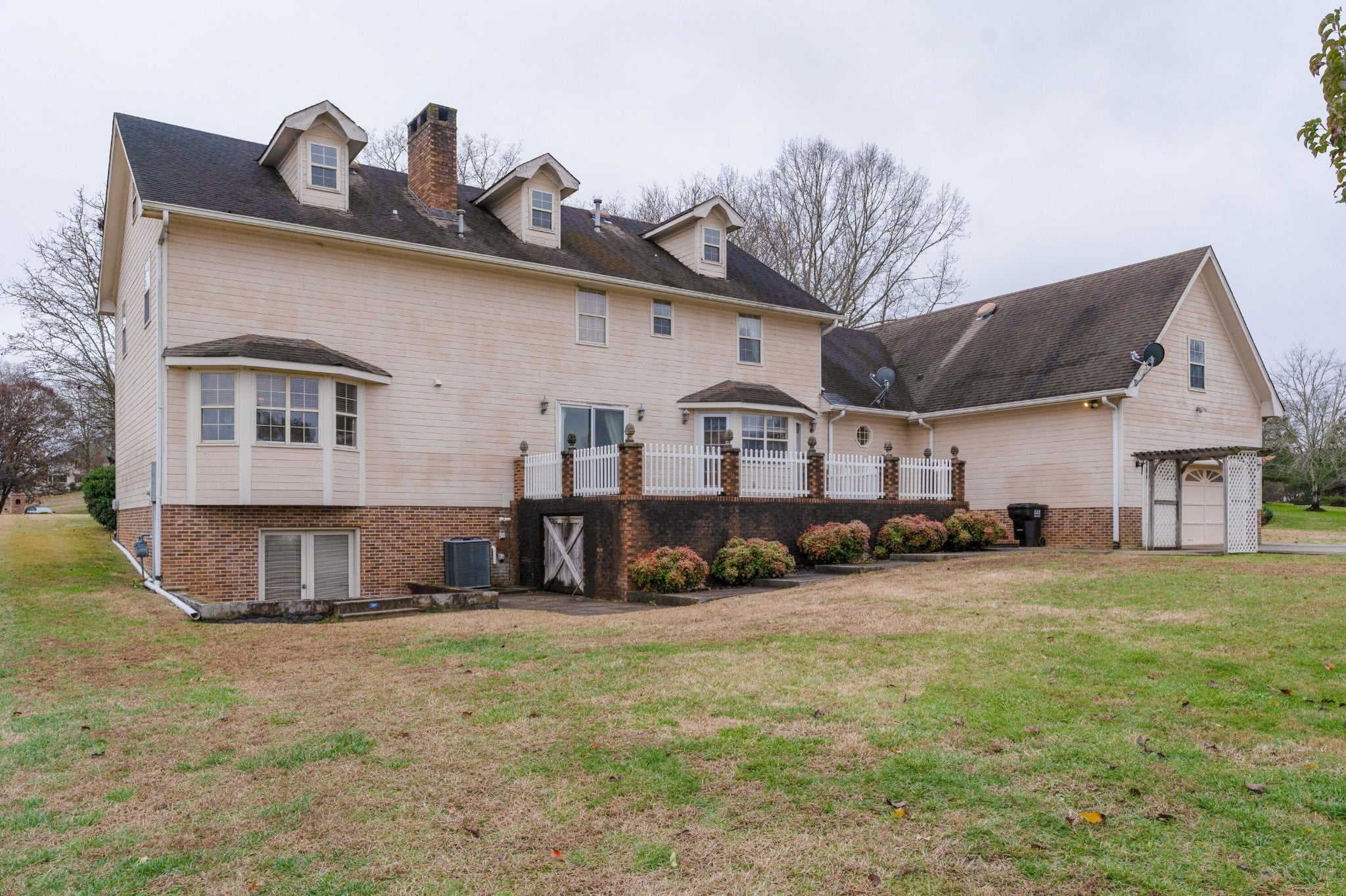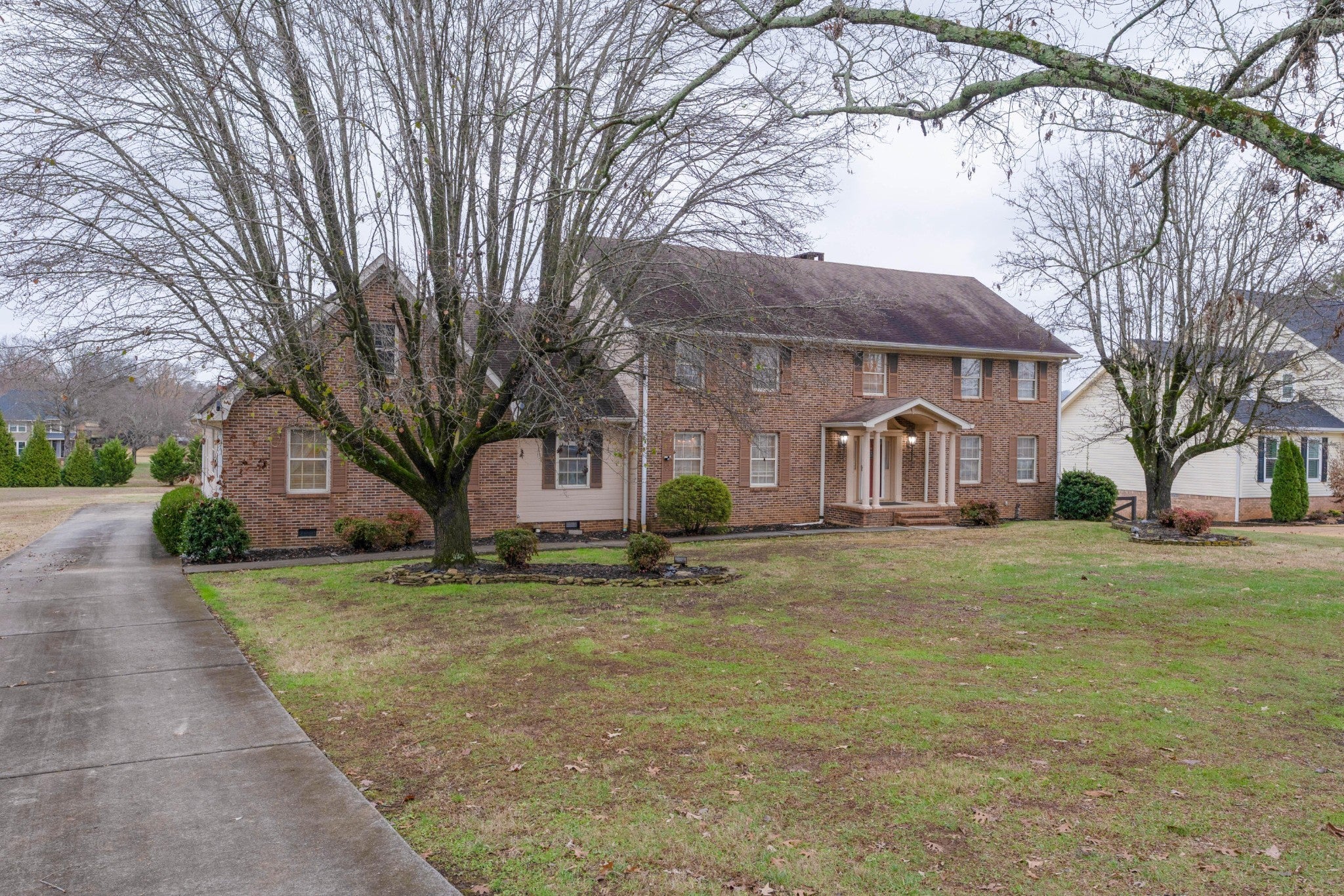 5 bedroom, 4.5 bath home on a 4.6 +/- acre lot in the established Heron Bay neighborhood in the heart of Ooltewah close to schools, shopping, restaurants, the lake and Hwy 58. This one-owner home boasts a versatile floor plan with 2 bedrooms on the main level, including an in-law suite, both formal and informal living spaces, spacious rooms, closets galore, great natural lighting, recessed and decorative lighting, walk-out and walk-up attics, plus an unfinished basement for even more storage or expansion possibilities. Your tour of the main level begins with entry to the dedicated foyer with hardwood flooring, central staircase with dramatic chandelier and enlarged doorways to the living room on the right and the dining room on the left. A central den with a gas fireplace has sliding glass doors to the rear patio and access to an en-suite bedroom and the sunny kitchen. The eat-in kitchen has great counter and cabinet space, black and stainless appliances, and access to the rear 2nd staircase, patio and the side hall leading to the butler's pantry, laundry room, powder room, garage and the in-law suite. The in-law suite has a living room, a bedroom with a walk-in closet and a private bath. Head upstairs where you will find the primary bedroom which has a trey ceiling, crystal chandelier, a walk-in closet, and the primary bath with a dual vanity, jetted tub with crystal chandelier and a separate shower. A study or office is just steps away, and there are also 2 additional bedrooms, another full bath and great storage on this level. The basement was partially finished at one point and there is a large room with a fireplace and sliding glass doors to a patio area that would make a great family or rec room, plus another area that would make a great workshop. Most of the acreage is cleared in back, so there is plenty of room for outdoor fun or your furry friends.