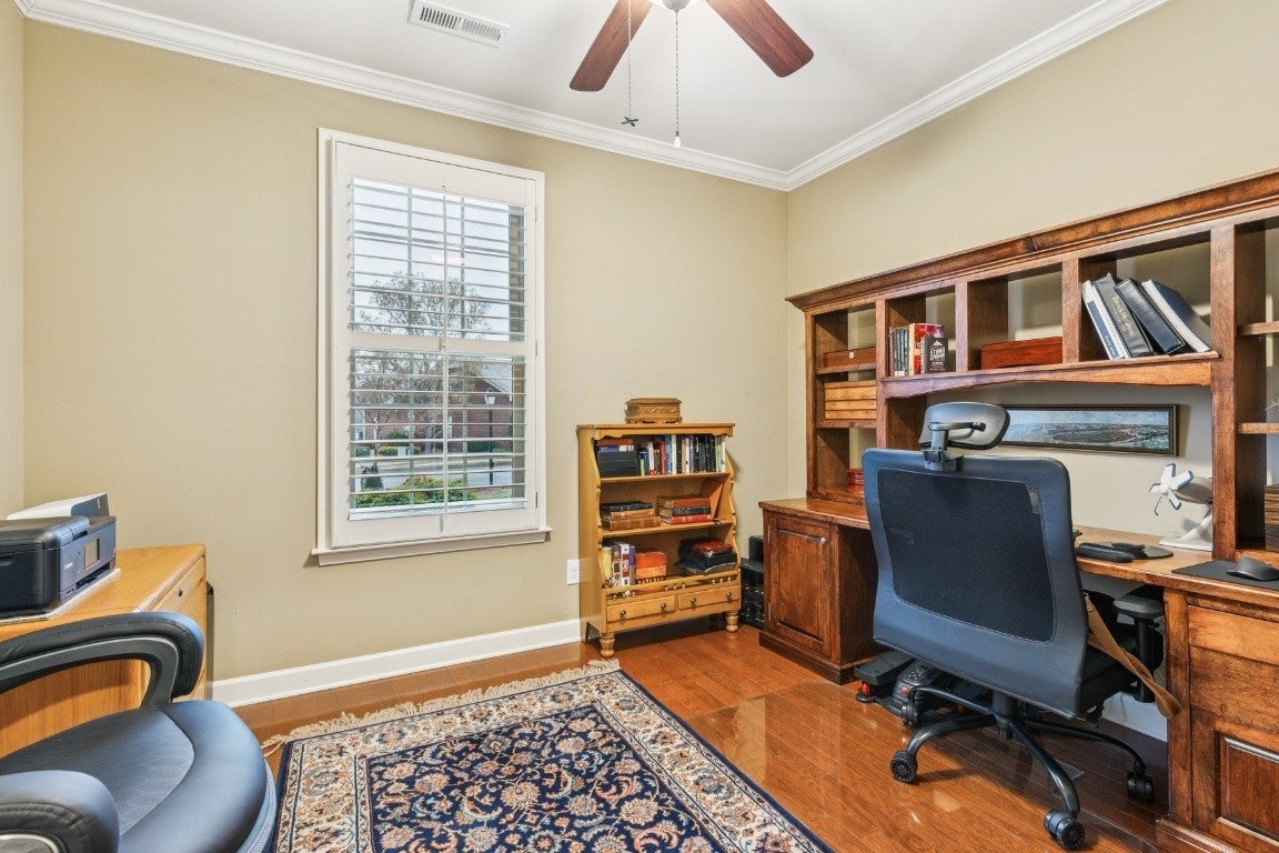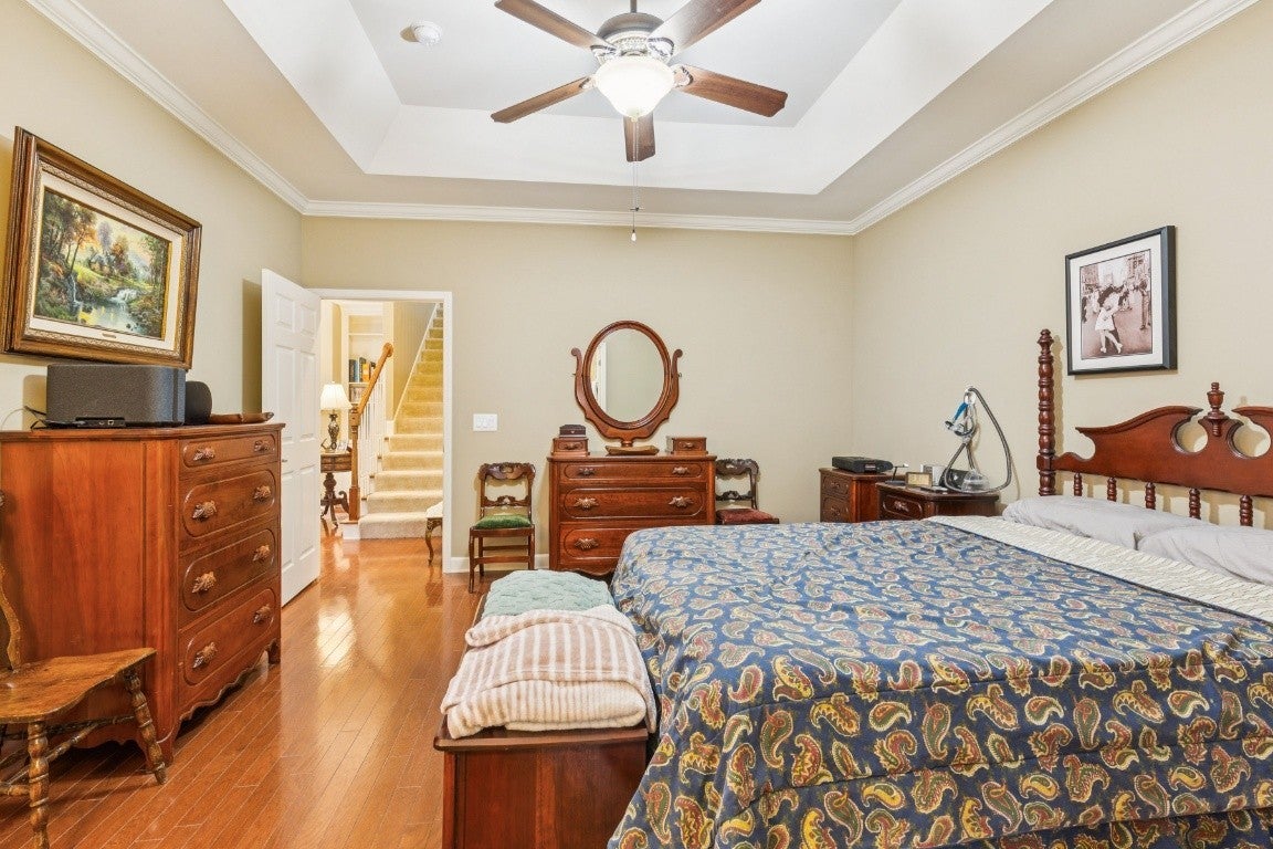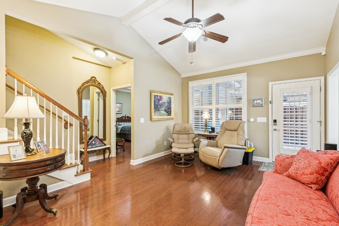 Beautifully maintained home in one of Franklin's premier 55+ communities. The extensive upgrade list includes, hard wood floors on main level, deep crown molding, solid surface counter tops, custom cabinetry, plantation shutters, gas fireplace with newer logs/remote, walk in attic storage and storage unit off large covered rear patio with gas grille hook up. There is also an upstairs bonus/office and covered parking for two vehicles. The Seller has added all new high efficiency multi-stage HVAC, refrigerator, dishwasher, washer and dryer and three sets of new high efficiency/low noise windows, security system with interior and exterior cameras. This unit is one of the largest floor plans and newest units in Morningside. It'll be "turnkey" for a new buyer. For those seeking traditional elegance with minimal upkeep, this is the one.