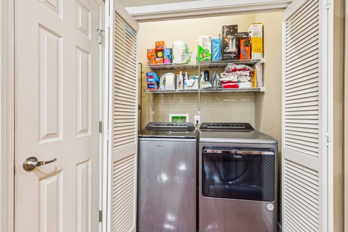- Electric Oven, Electric Range, Dishwasher, Disposal, Dryer, Microwave, Refrigerator, Stainless Steel Appliance(s), Washer