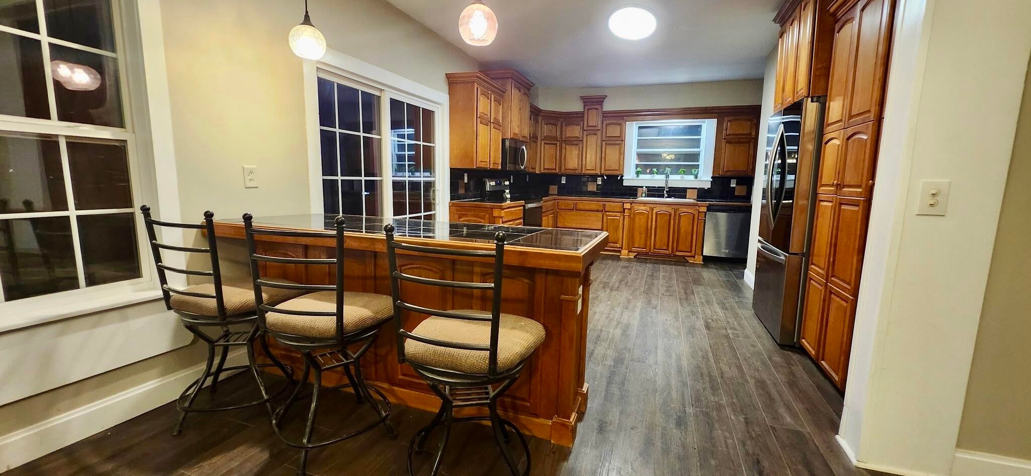 Welcome home to a beautifully updated Craftsman-style ranch where charm, character, and comfort meet. Freshly renovated, this home is inviting the moment you step onto the wide front porch—complete with a built-in storage bench—perfect for morning coffee, rocking chairs, and relaxing country evenings. Inside, features high ceilings and LVP flooring flows seamlessly throughout the living areas. Please note that the fireplace in the living room is non-functional and intended for decoration only. The kitchen truly feels like the heart of the home, offering abundant cabinetry, a breakfast-bar island, stainless steel appliances, stunning tile backsplash, and a functional layout ideal for gatherings. The sliding glass door opens to a large deck lined with solar lighting, creating a cozy ambiance for outdoor dining or unwinding at sunset. Natural light fills the home, and all 3 bedrooms provide peaceful retreats. Both bathrooms have been thoughtfully updated with fresh, modern finishes that complement the home's timeless cottage charm. The spacious yard offers endless possibilities—garden, entertain, or simply enjoy the tranquility. An unfinished basement provides additional storage or the perfect blank canvas for future expansion. Finishing touches are underway. Don't miss your chance—this one will go fast!
