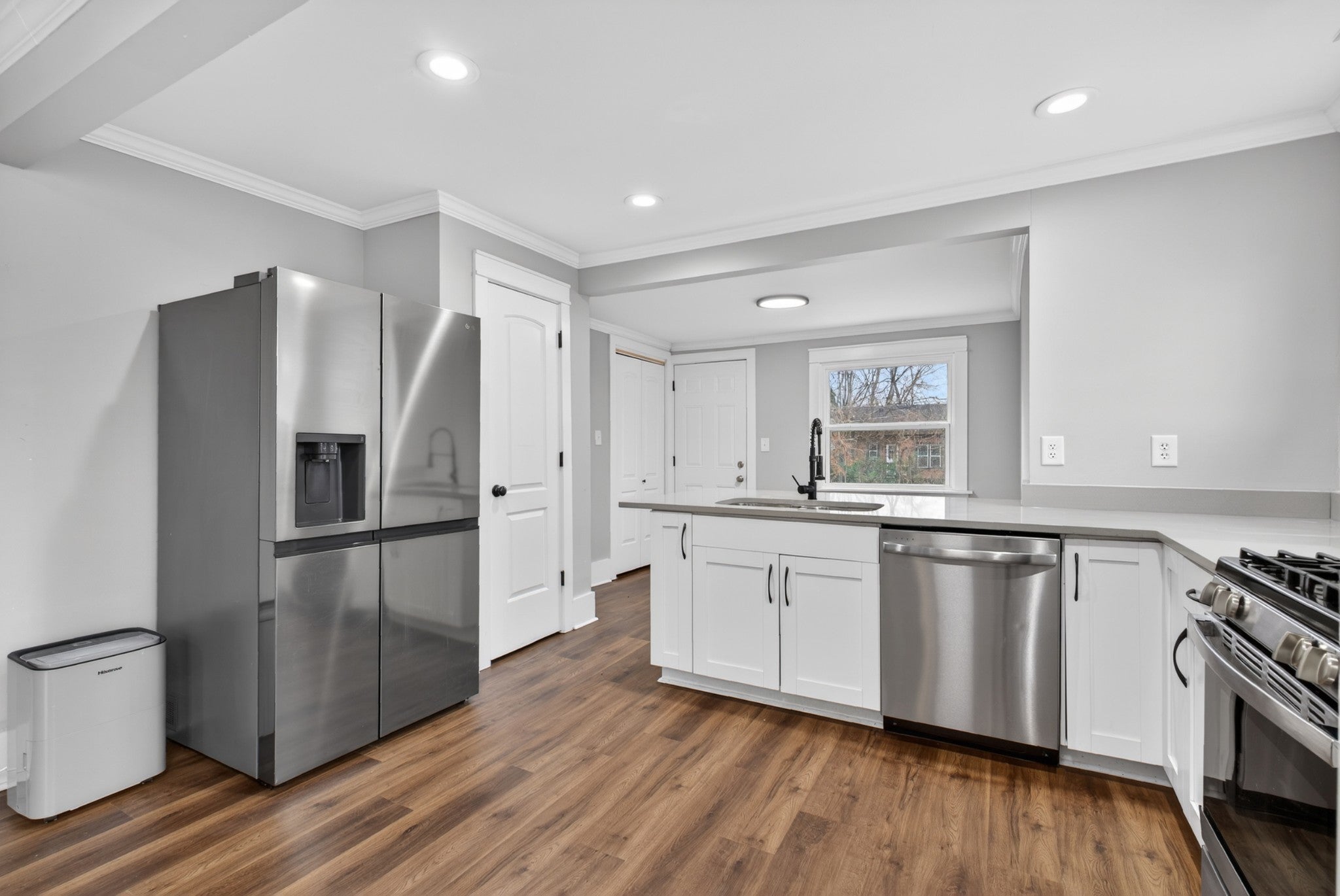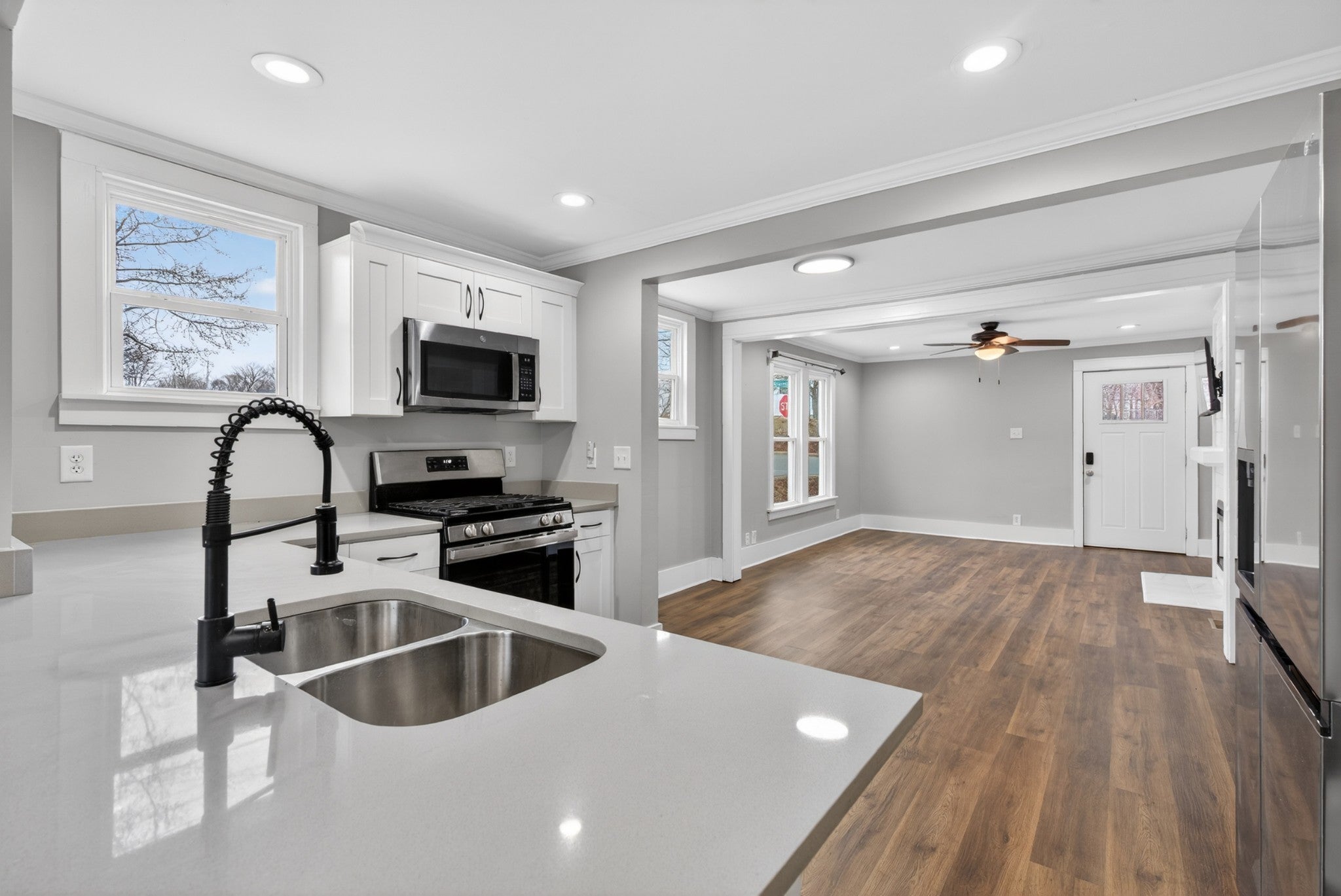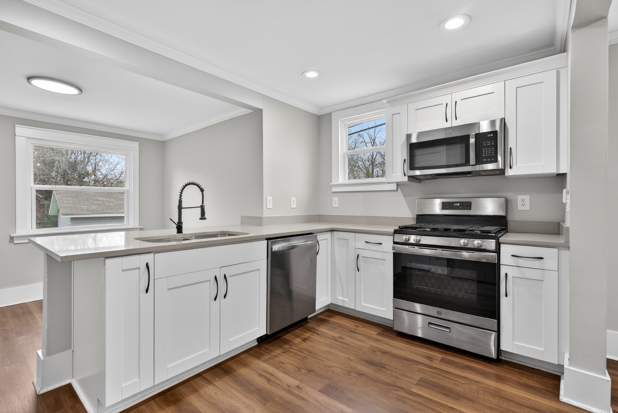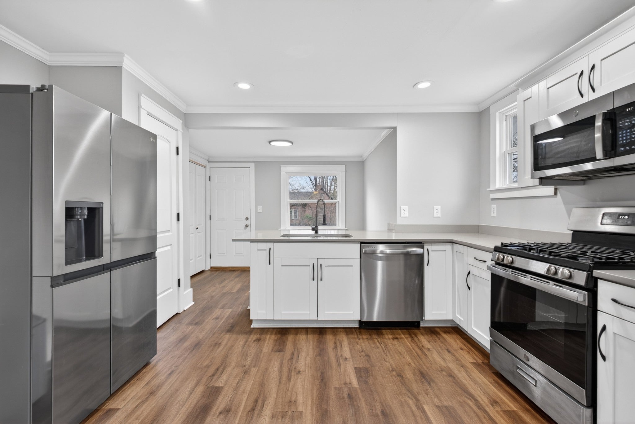 - Gas Oven, Gas Range, Dishwasher, Dryer, Microwave, Refrigerator, Stainless Steel Appliance(s), Washer