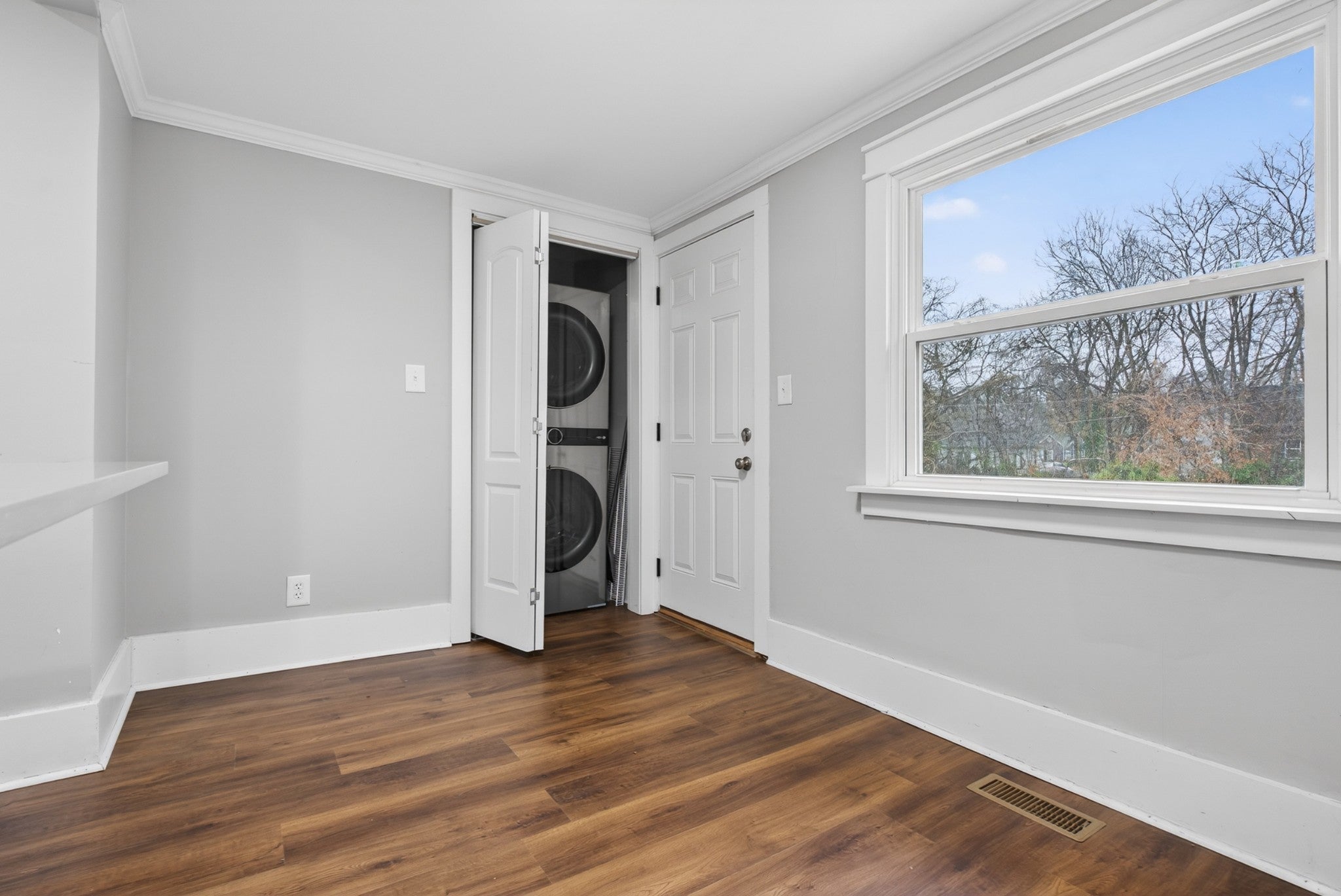 Charming 2-Bed, 2-Bath Home on a Corner Lot! This move-in-ready home features a newer HVAC system (approx 2022), updated kitchen appliances, and a stackable washer and dryer. Enjoy a fenced backyard and a detached garage with electricity. Inside, you’ll find new laminate flooring, updated ductwork, and new sewage plumbing from the house to the street. Cozy up by the electric fireplace in the living room. Additional items to convey with the home, including the refrigerator, stackable washer and dryer, television in the living room, and the bedroom armoire. Don’t miss your chance—schedule your showing today!