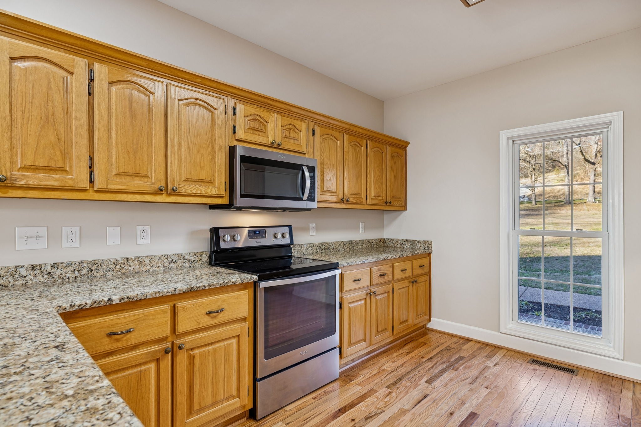 - Electric Range, Dishwasher, Microwave, Refrigerator, Stainless Steel Appliance(s)